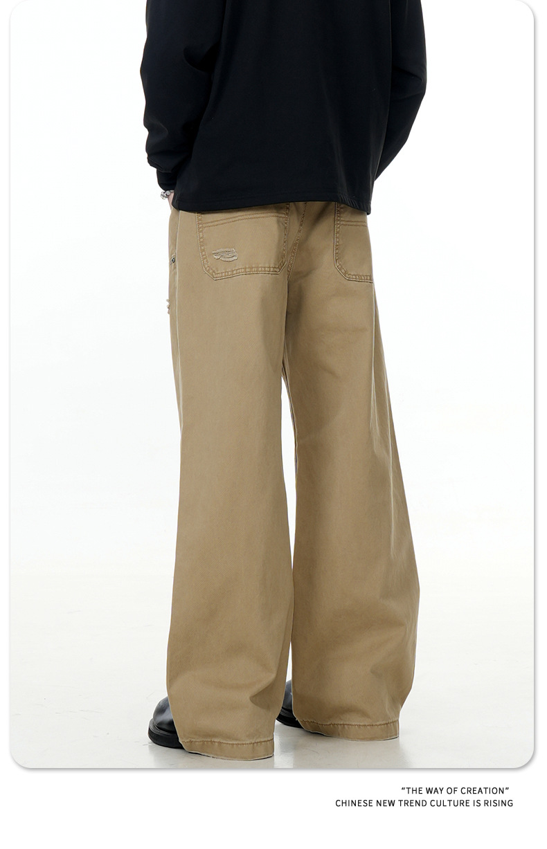 11 KN アメリカンレトロで old and broken トレンドゆったりストレートパンツで border between men and women