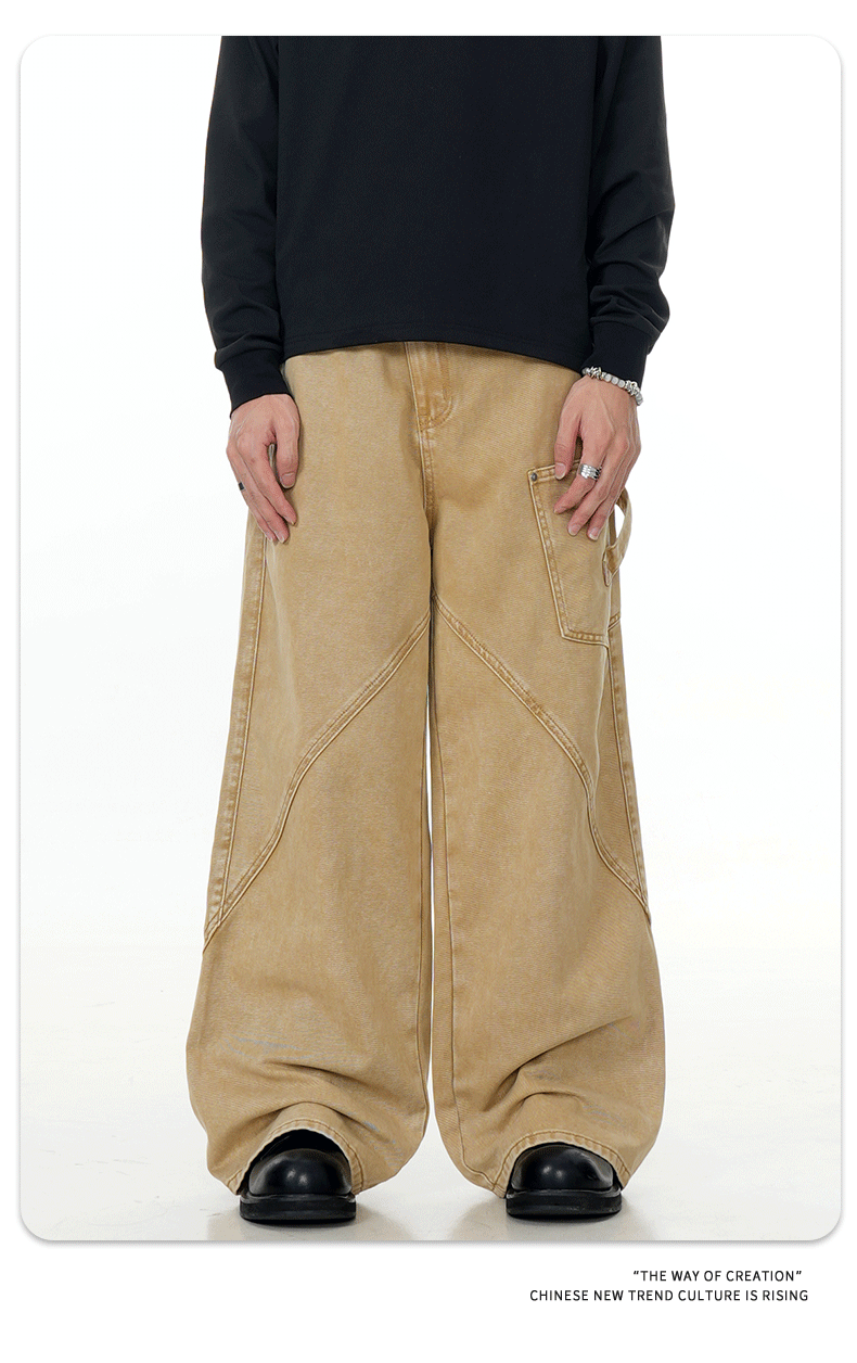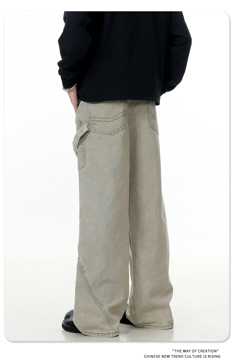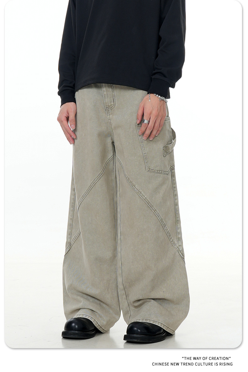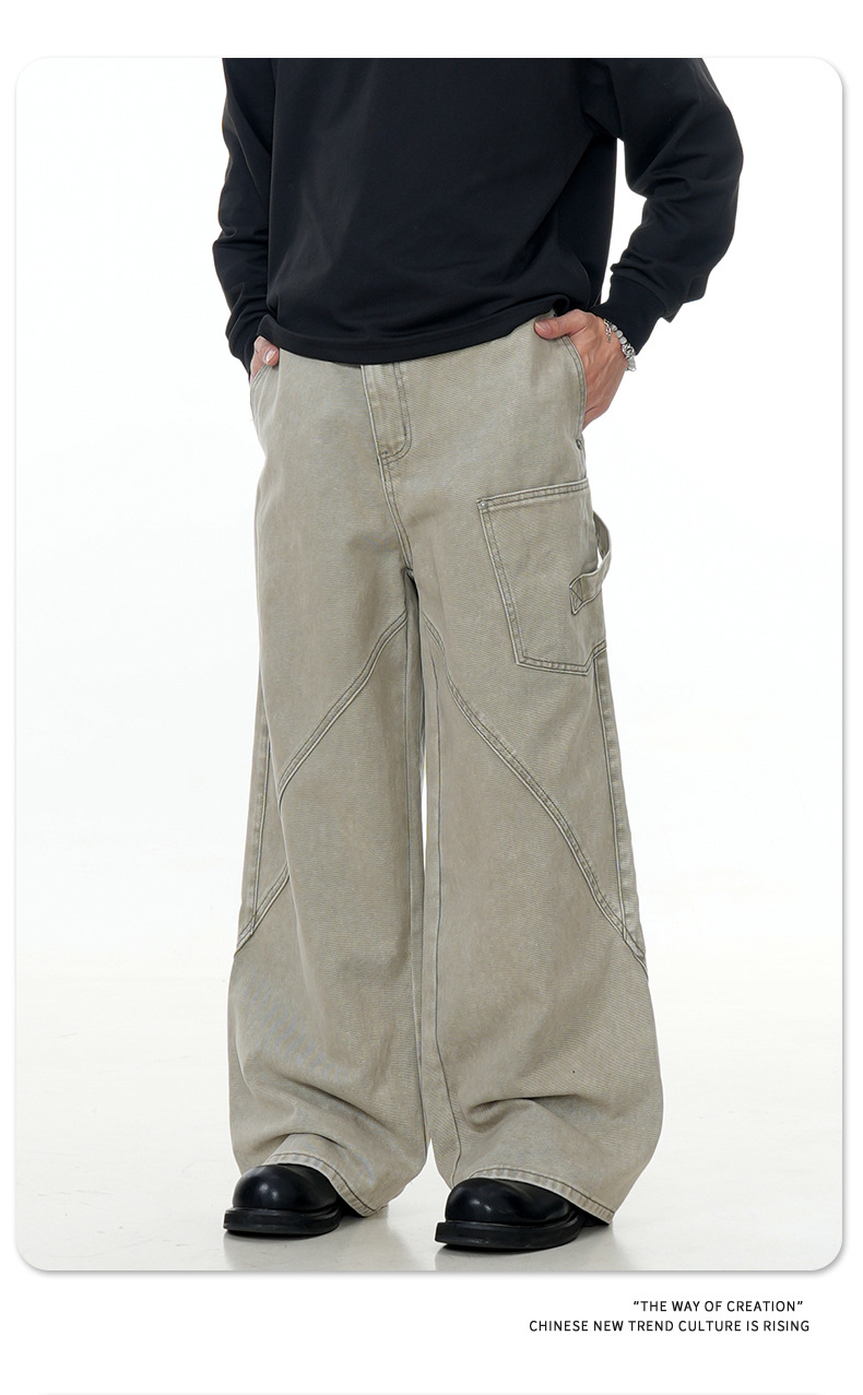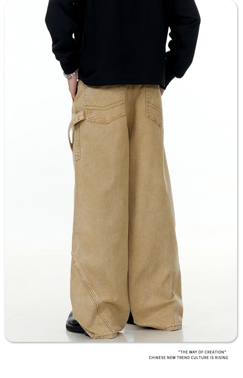 11KN American retro new deconstruction straight leg work pants for men and women trendy brand niche design sense loose pants cross-border