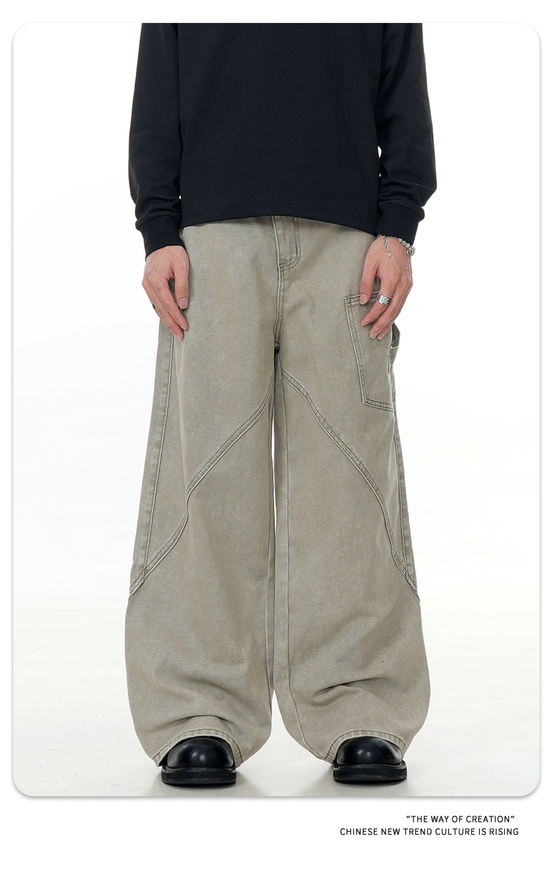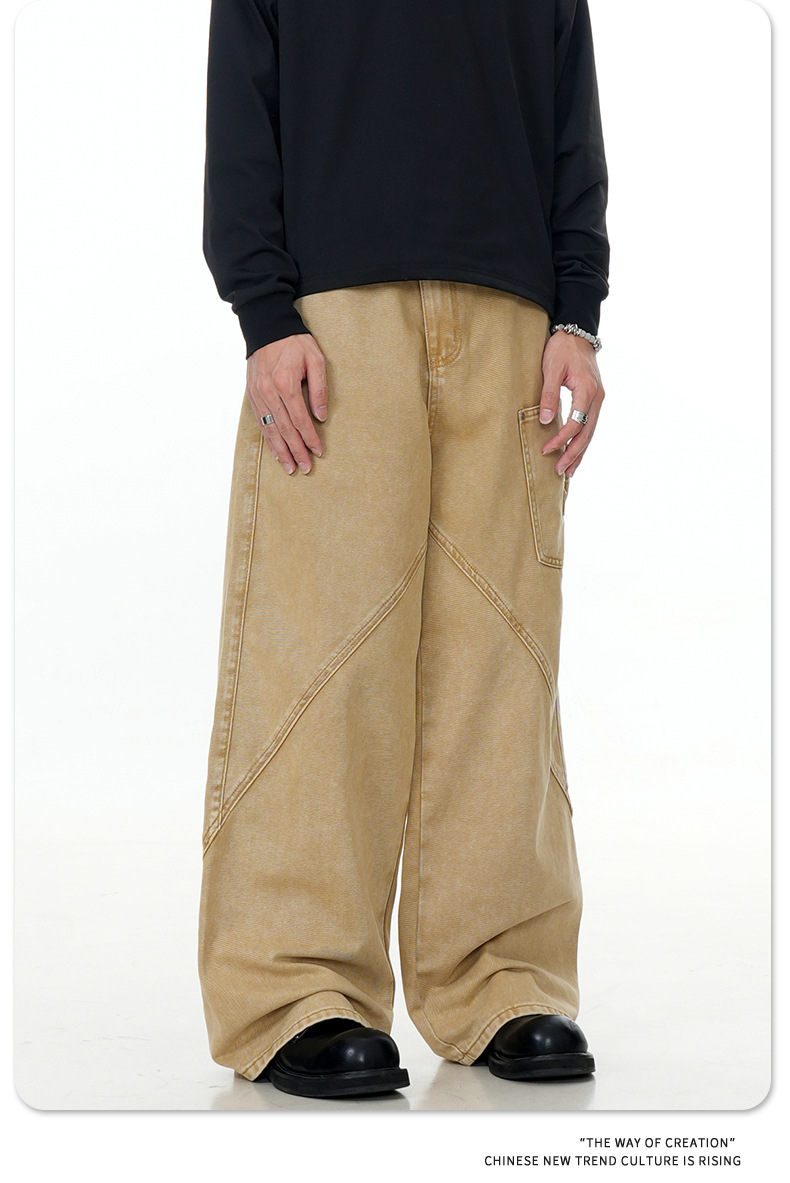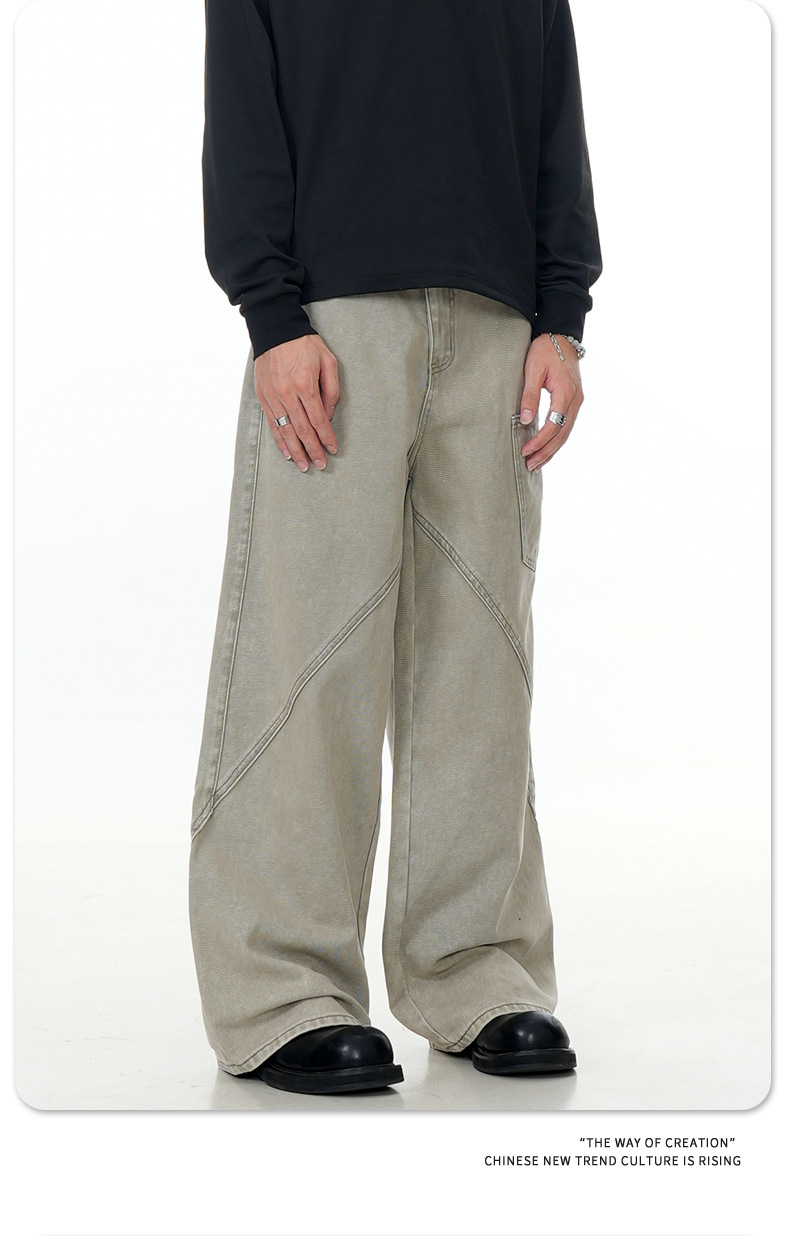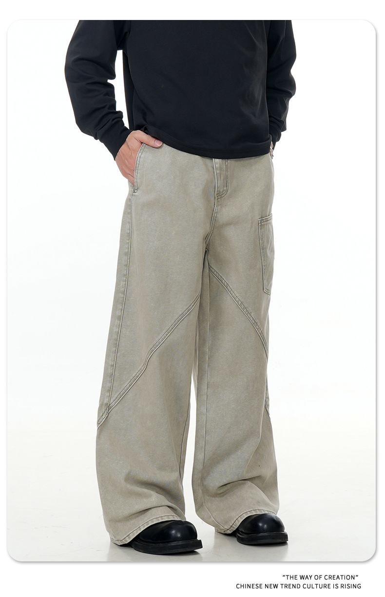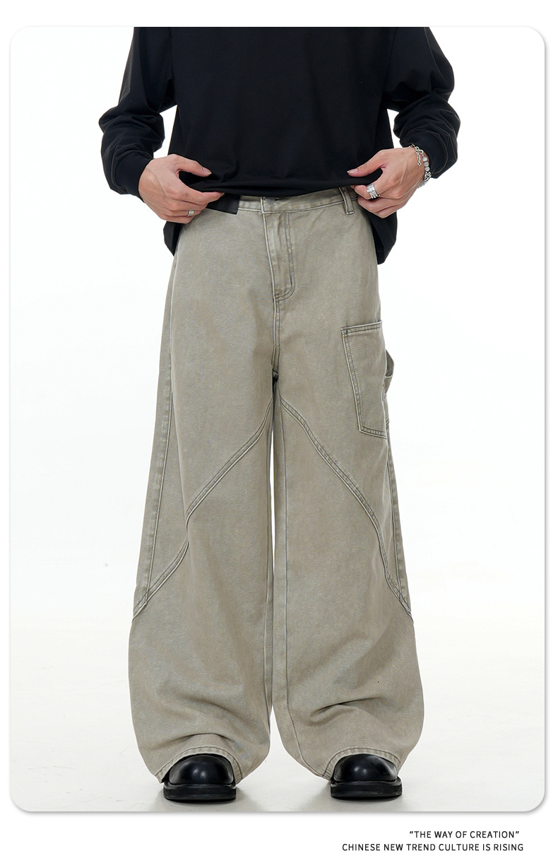 11KN American retro new deconstruction straight leg work pants for men and women trendy brand niche design sense loose pants cross-border