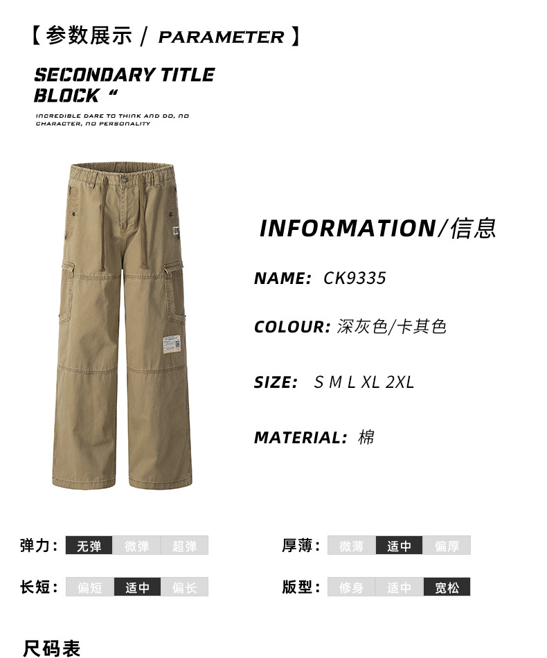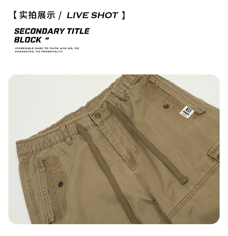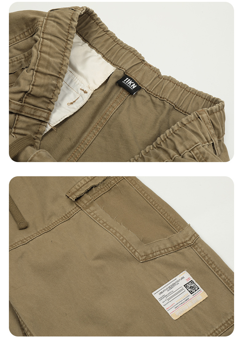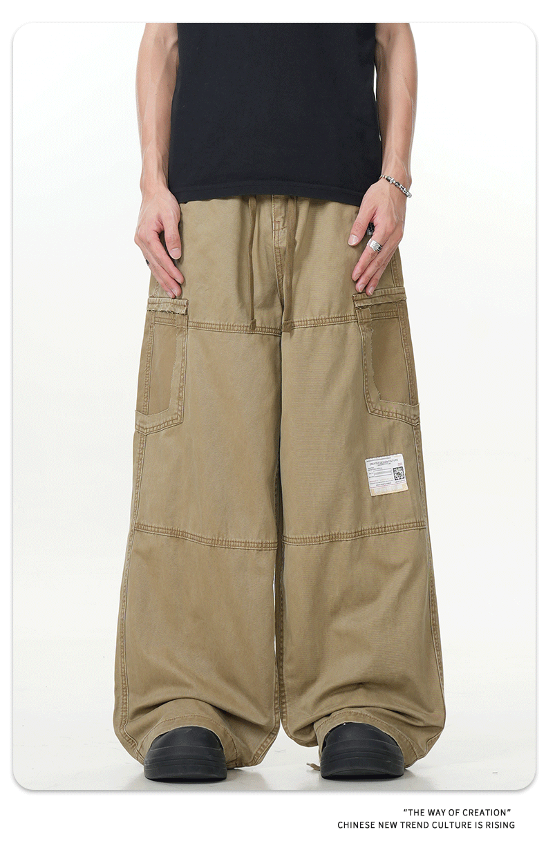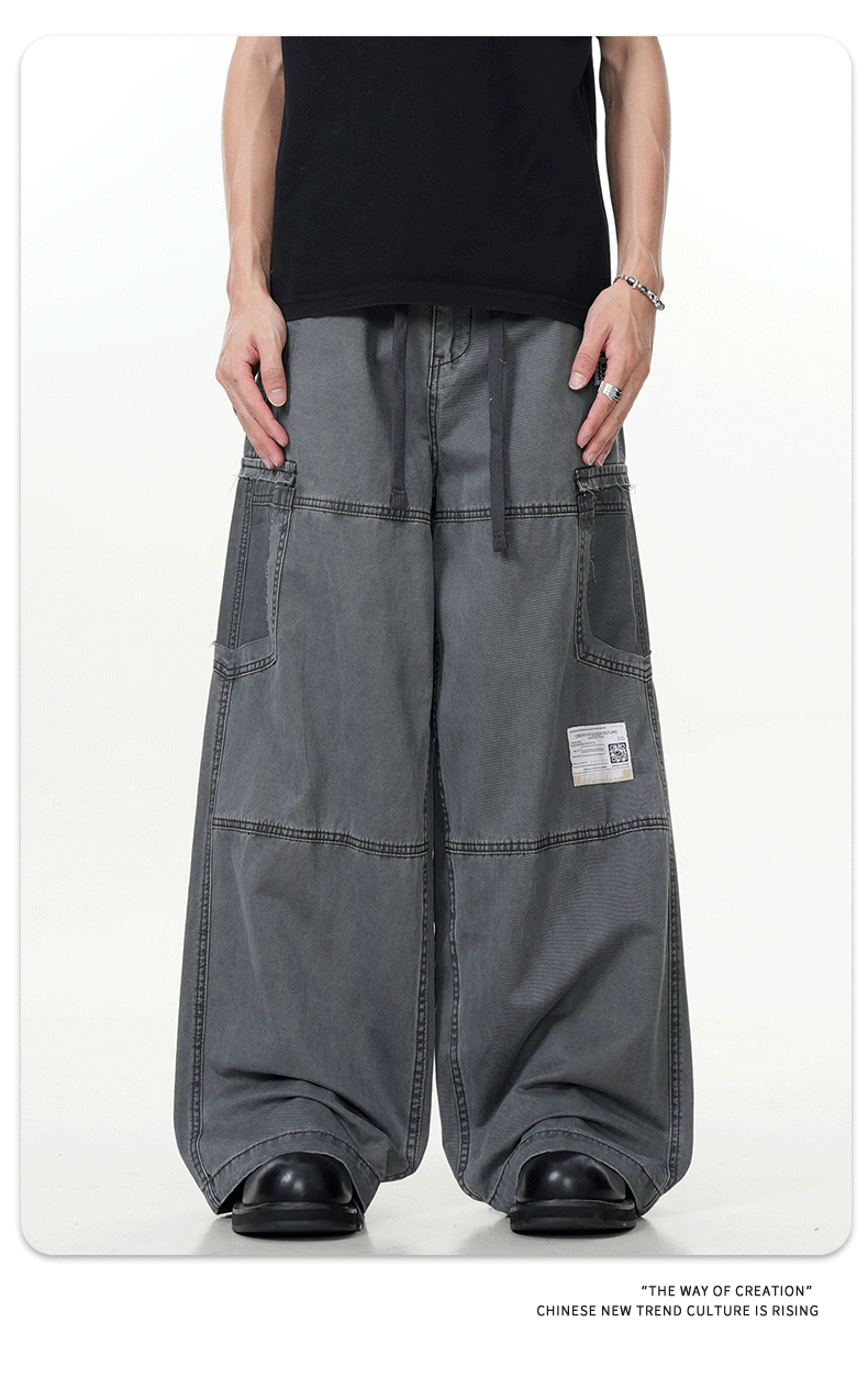 11KN American retro niche design pocket men's and women's trendy washed and worn drawstring wide leg work pants cross-border