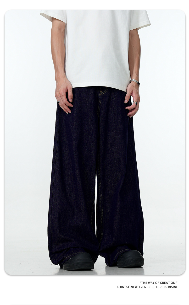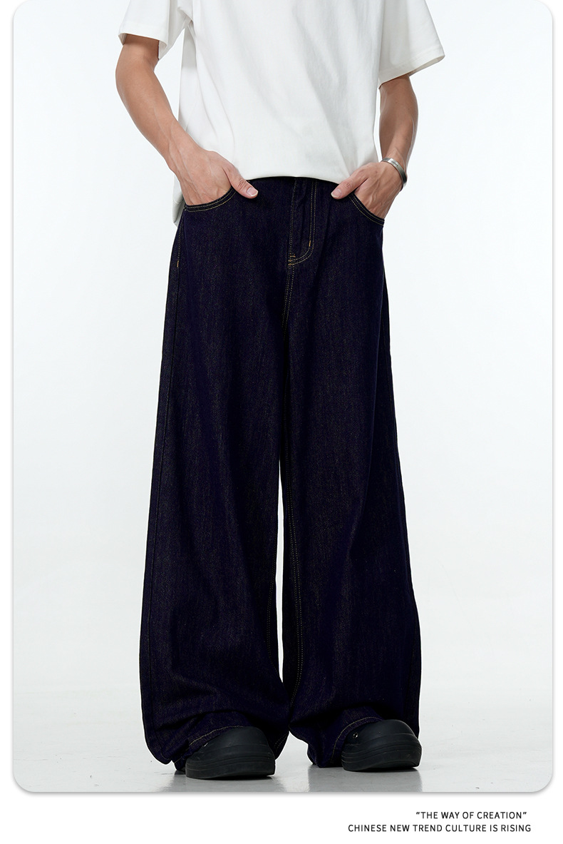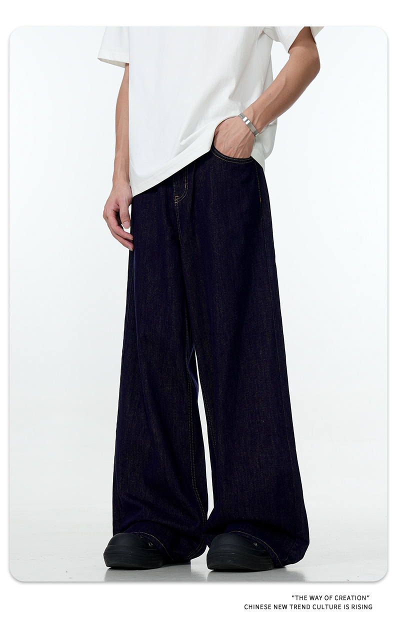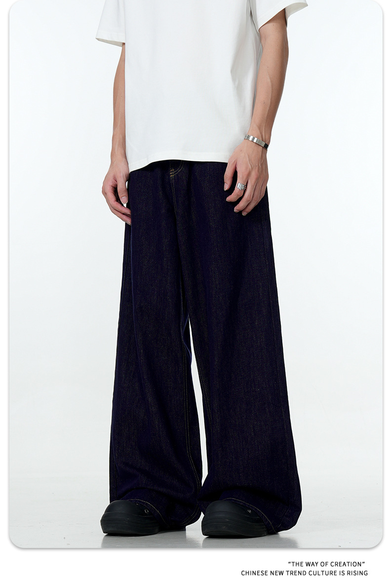 11KN American style minimalist retro blue straight leg jeans men's basic loose wide leg cleanfit pants cross-border