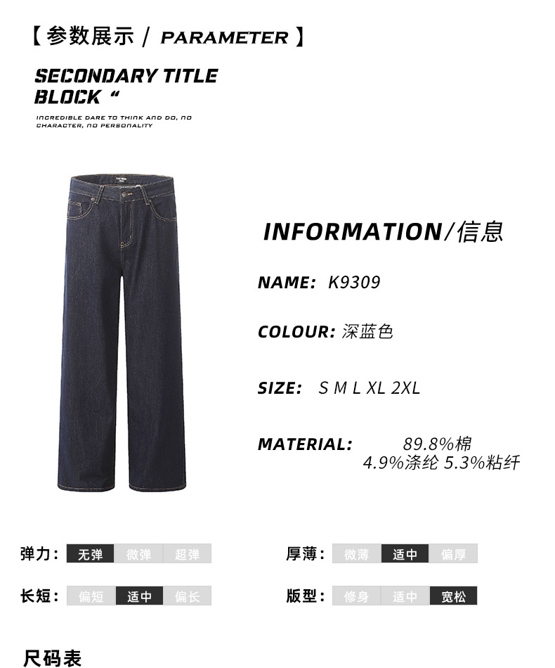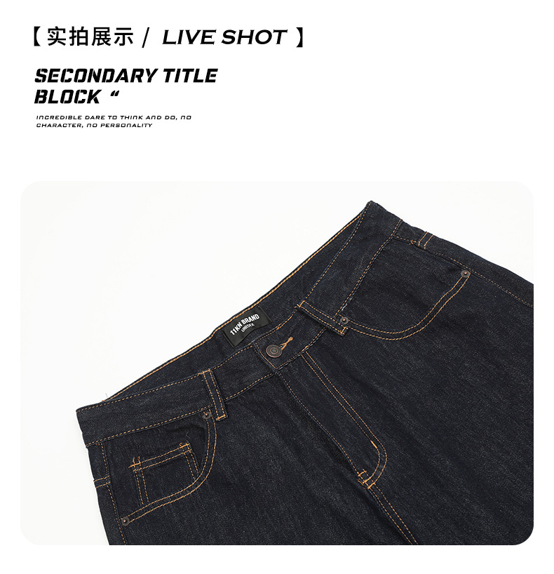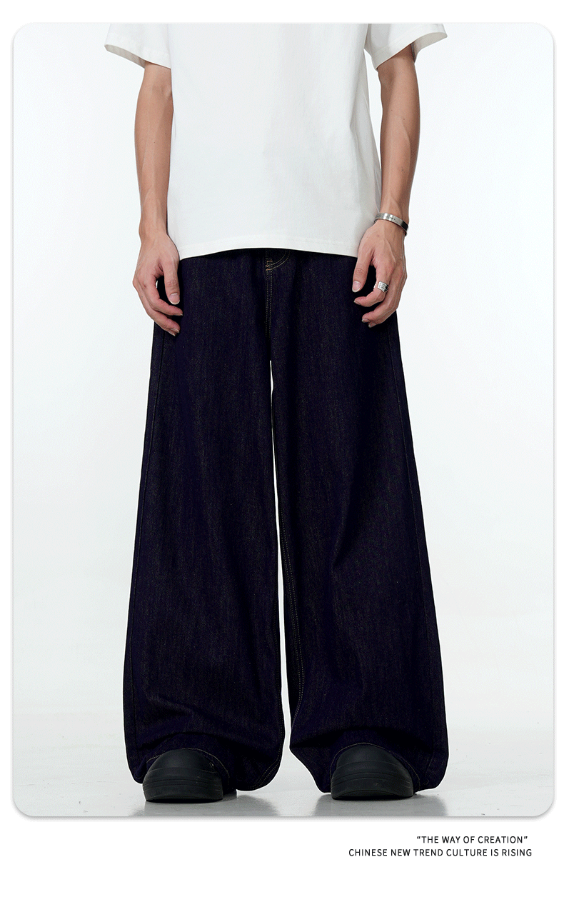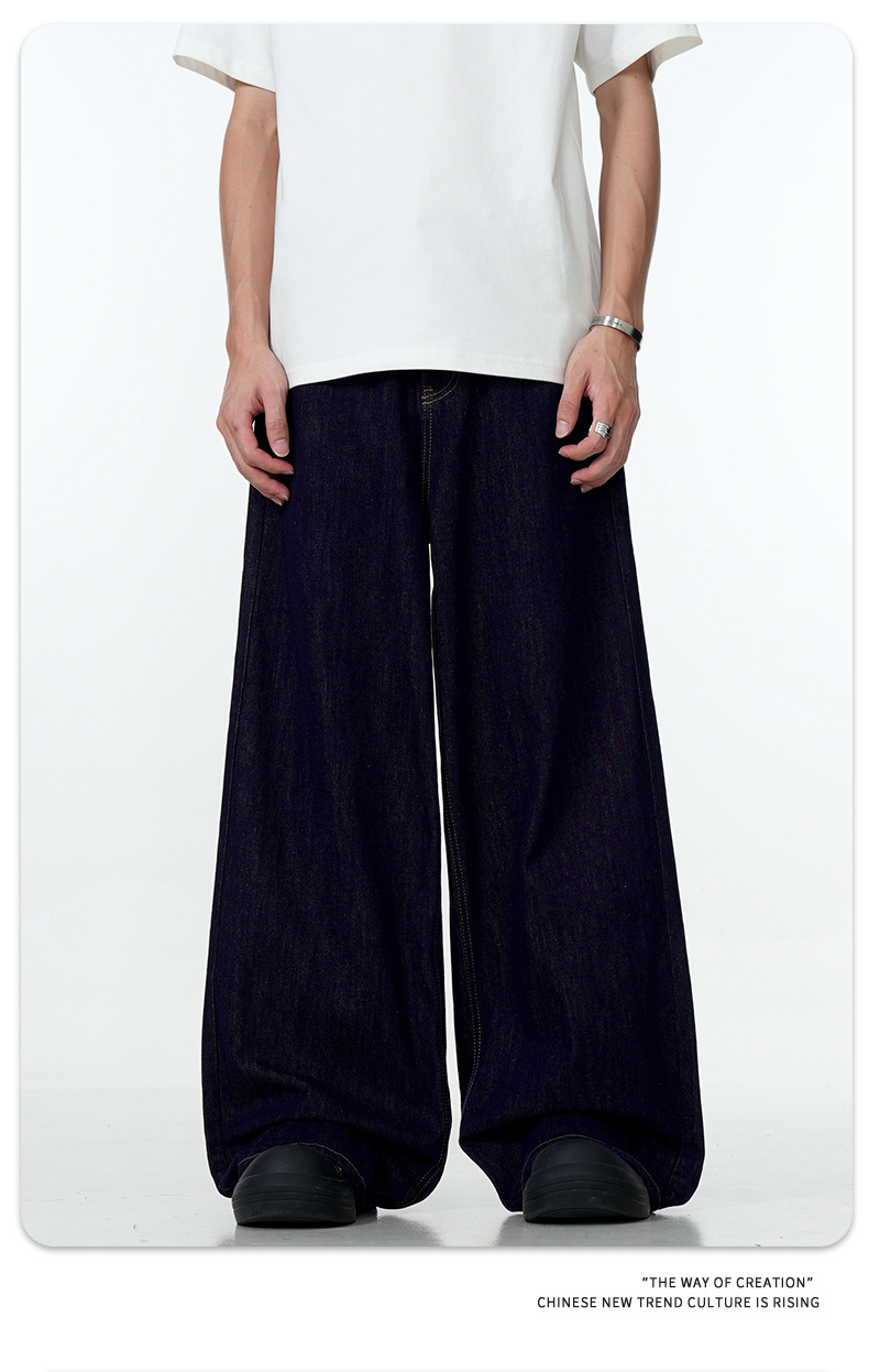11KN American style minimalist retro blue straight leg jeans men's basic loose wide leg cleanfit pants cross-border