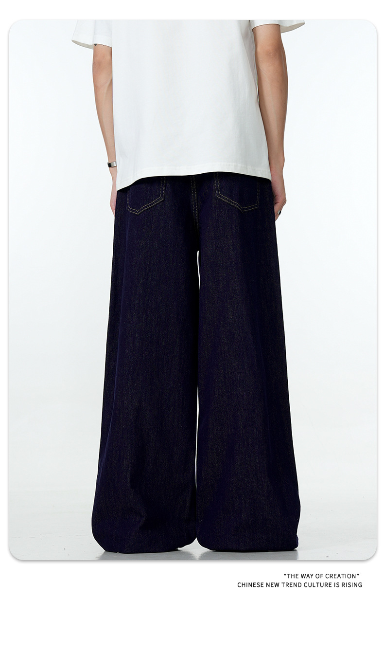 11KN American Simple Retro Blue Straight Basic Loose Wide-leg Cleanfit Pants