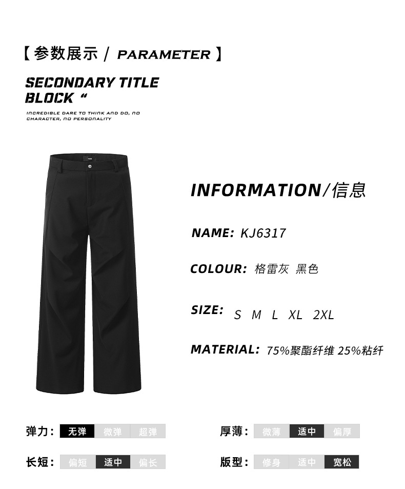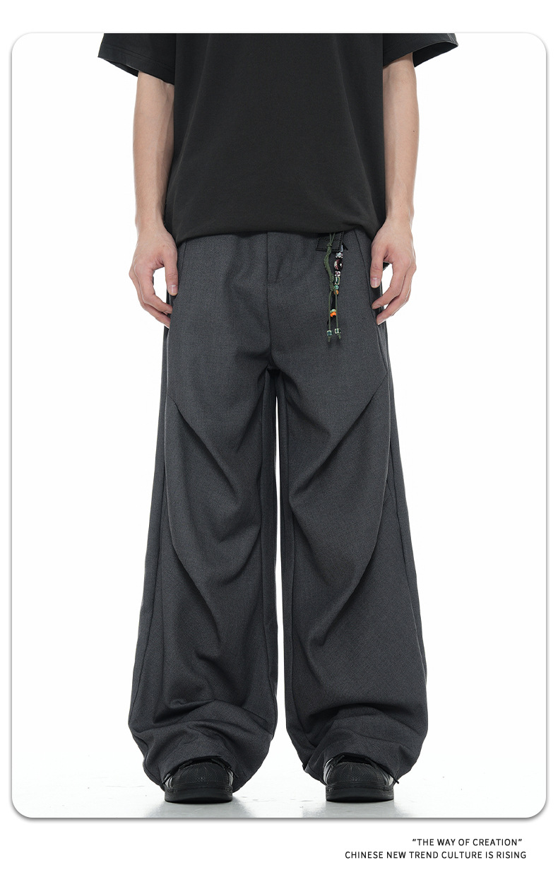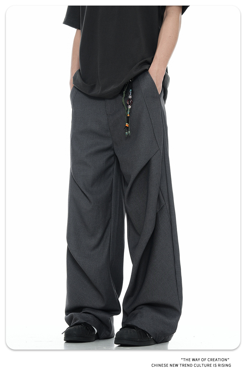 11KN American retro design suit pants with a men's and women's drape feel, cleanfit high-end wide leg straight leg casual pants