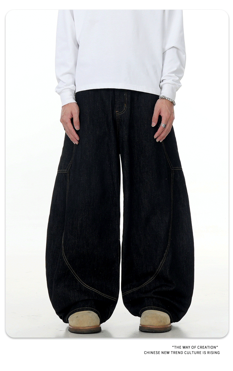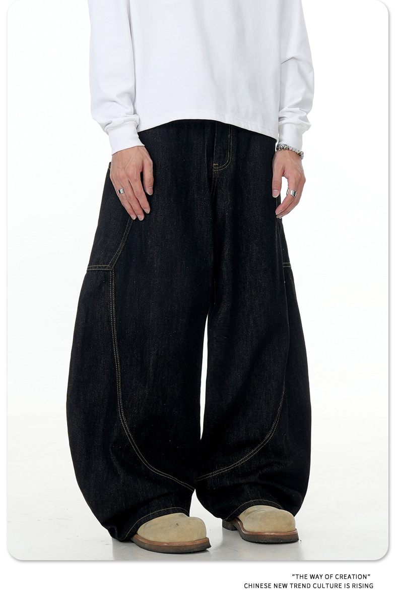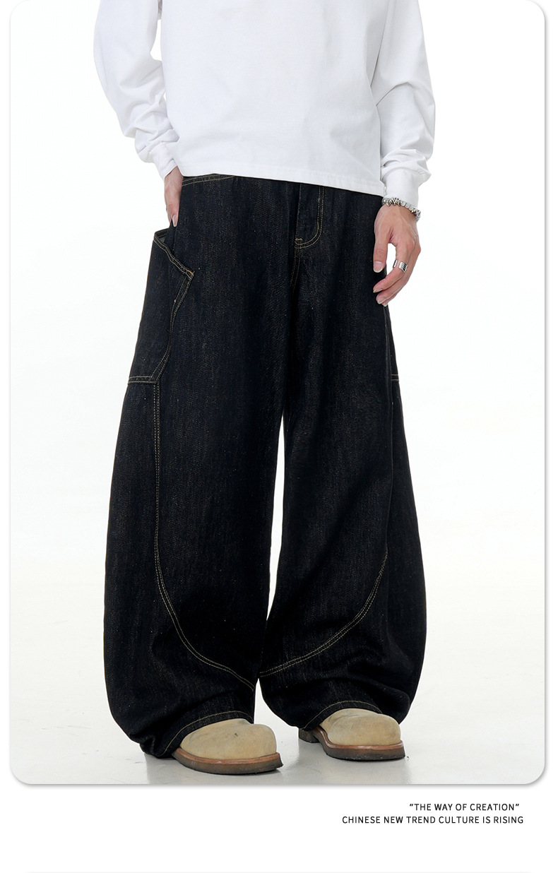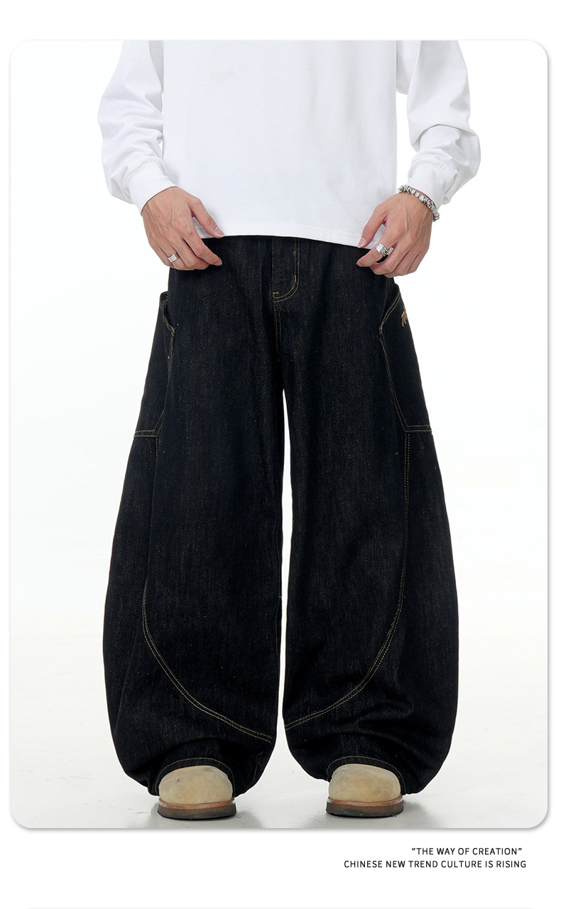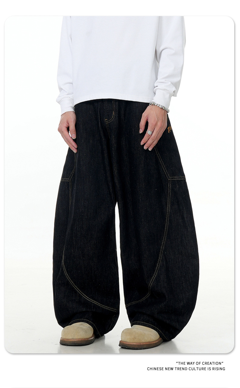11KN American high street new curved pants with large pockets and embroidered letters, washed loose straight leg pants, cross-border