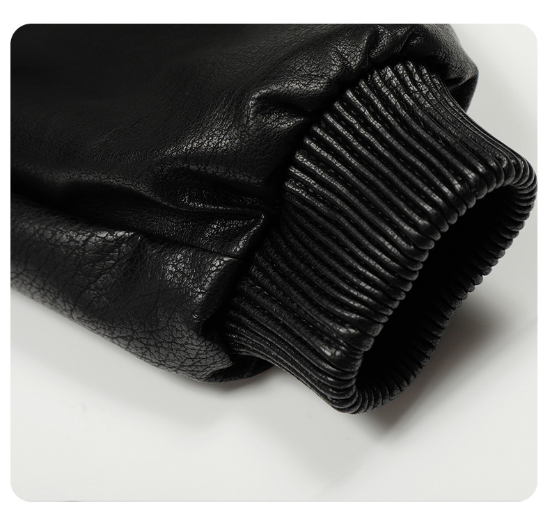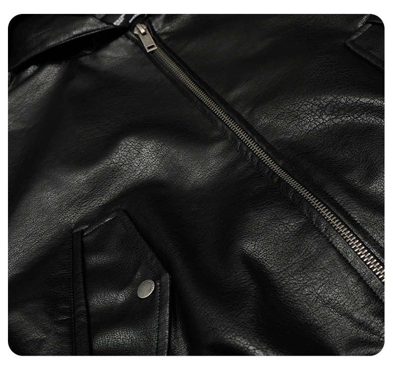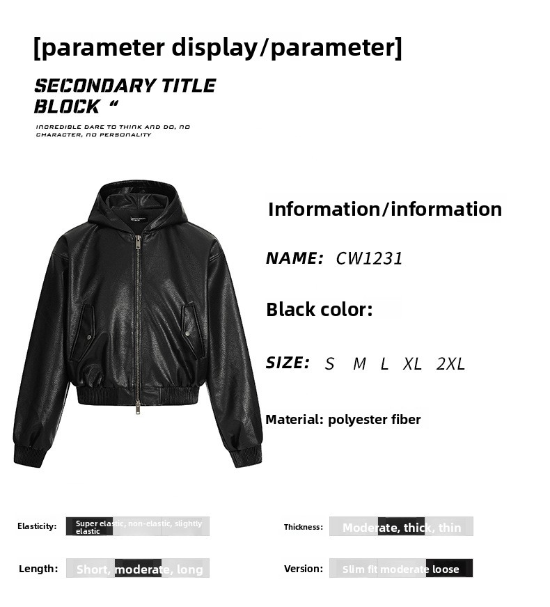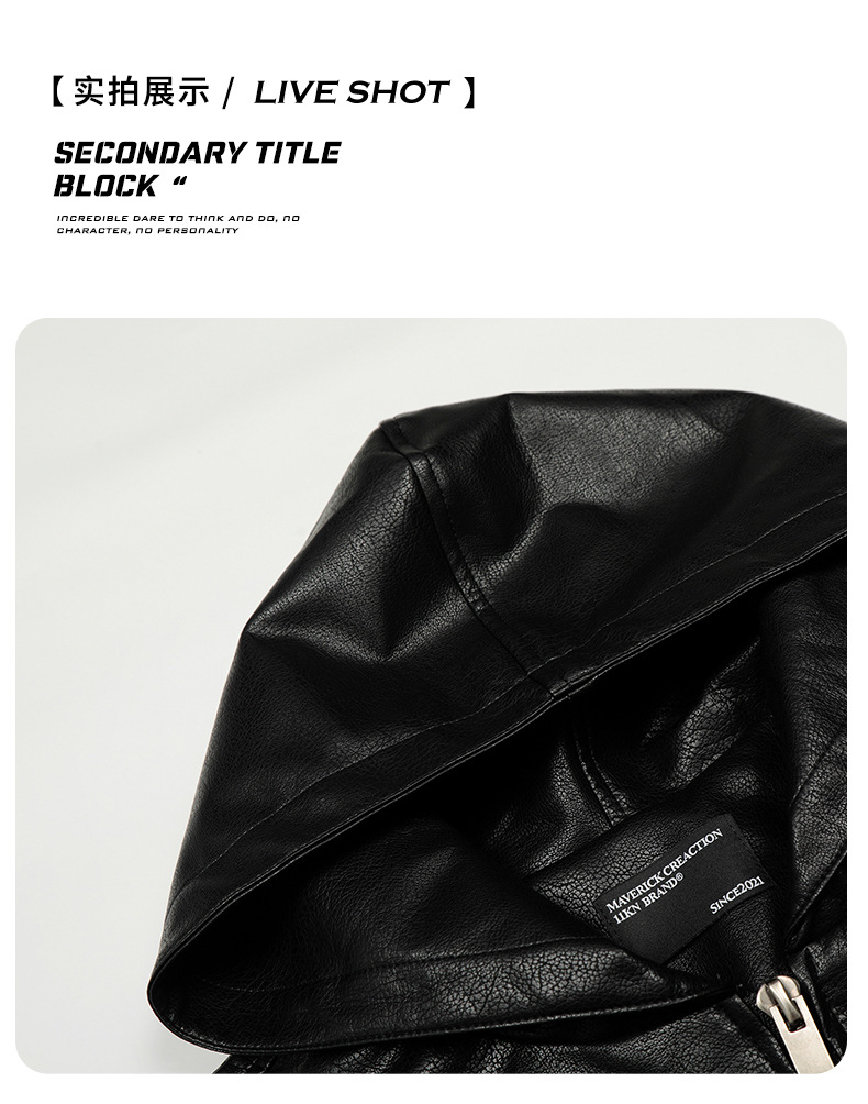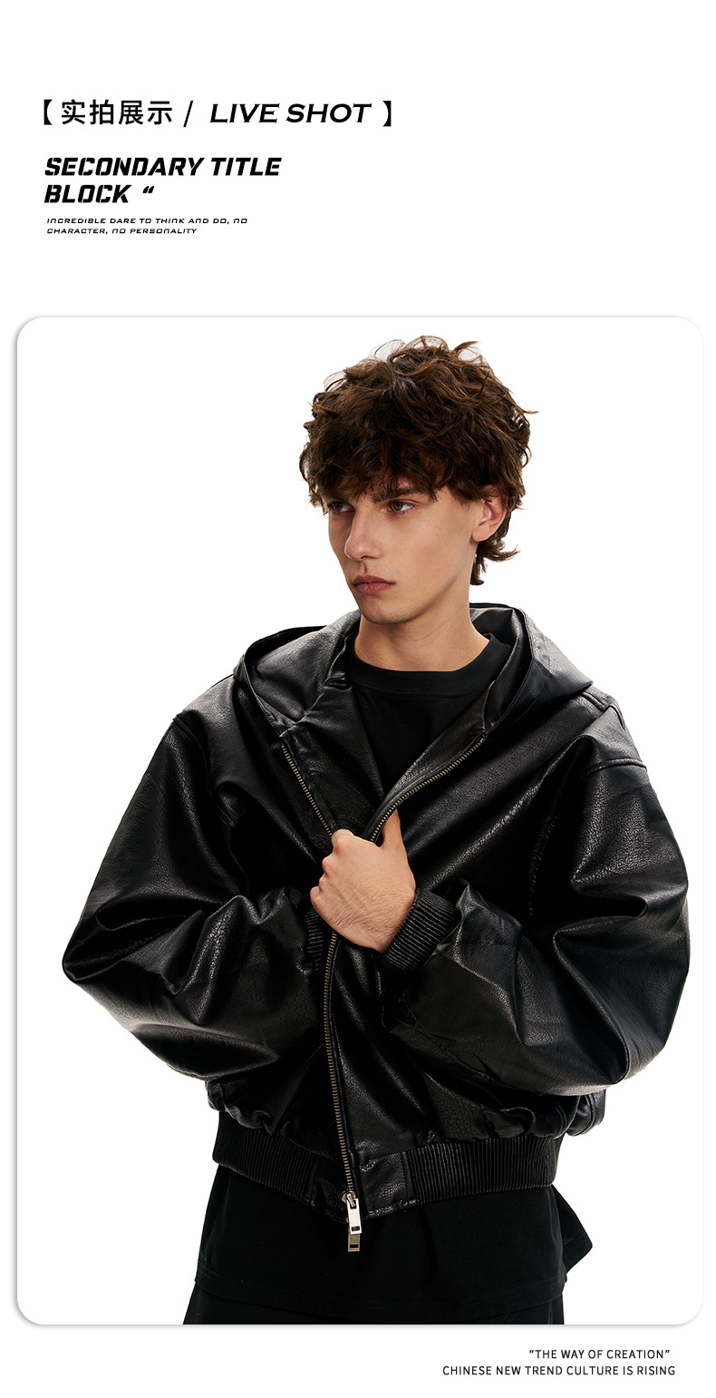11KN Hooded Short Wide Leather Jacket Embossed Pattern Jacket