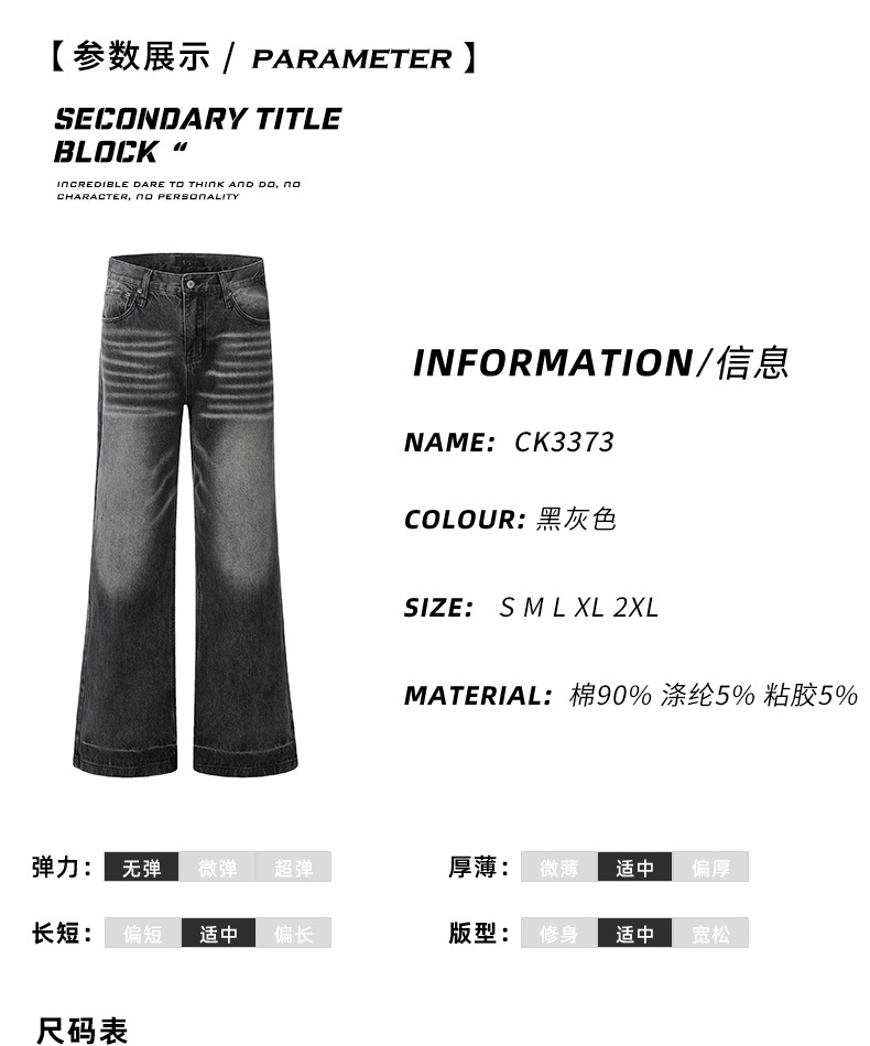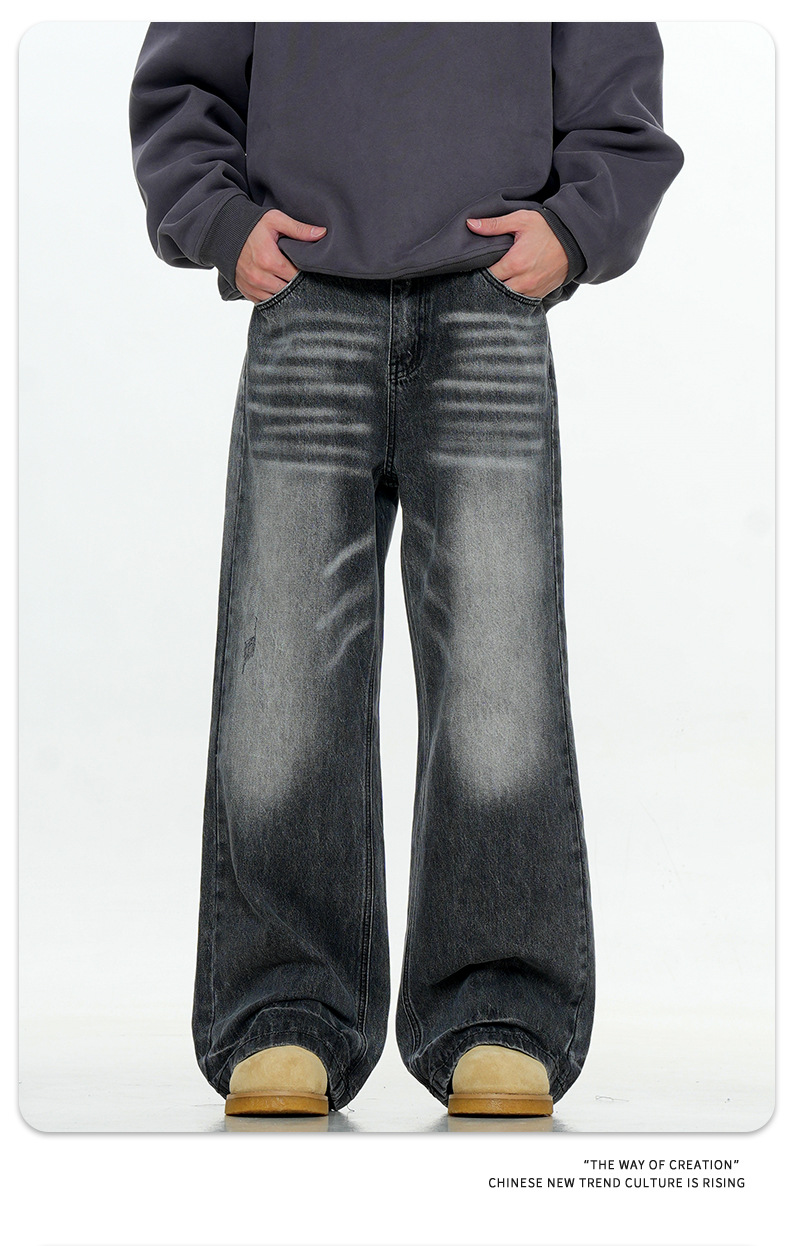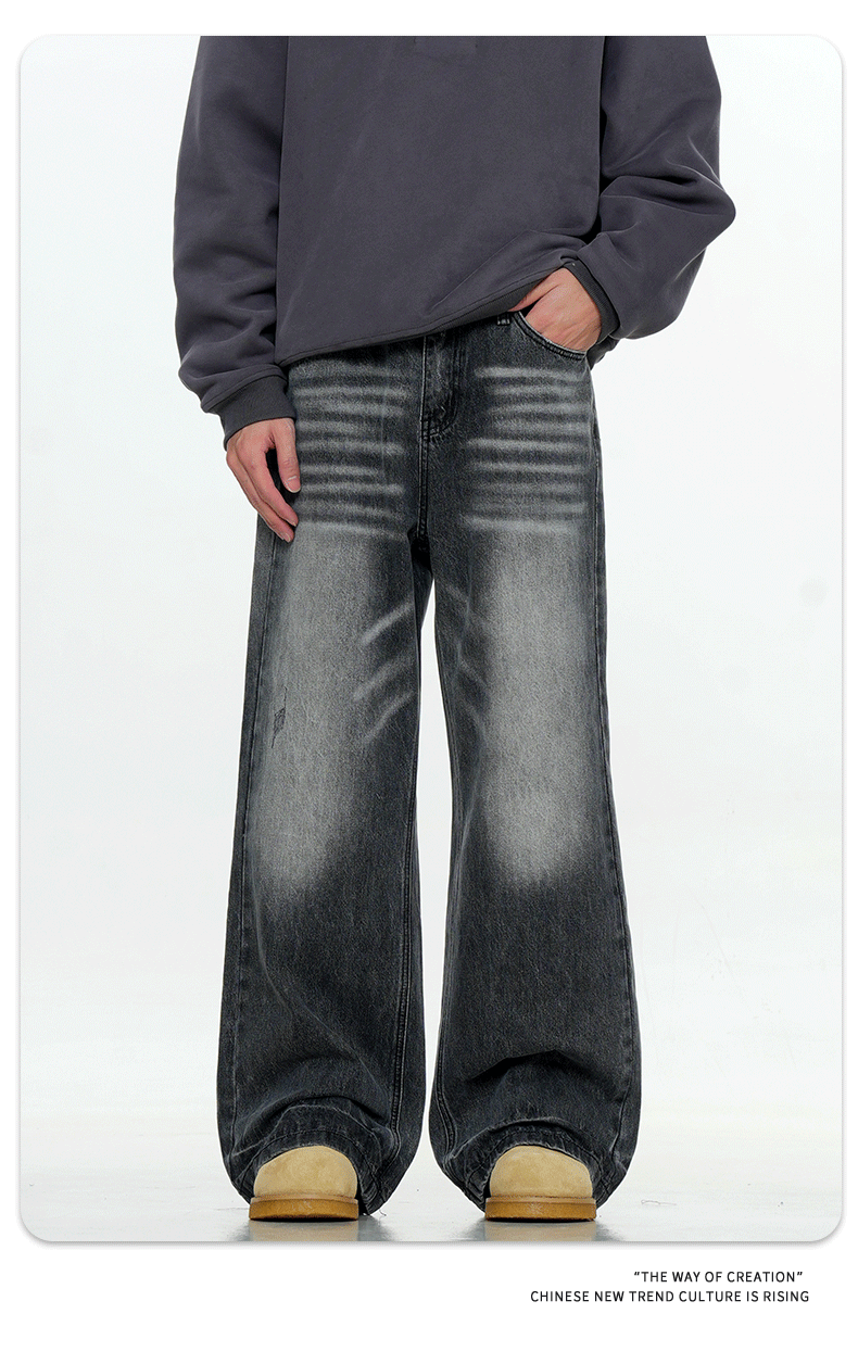 11KN Jeans Retro Washed Gradient Straight Loose Oversize Pants