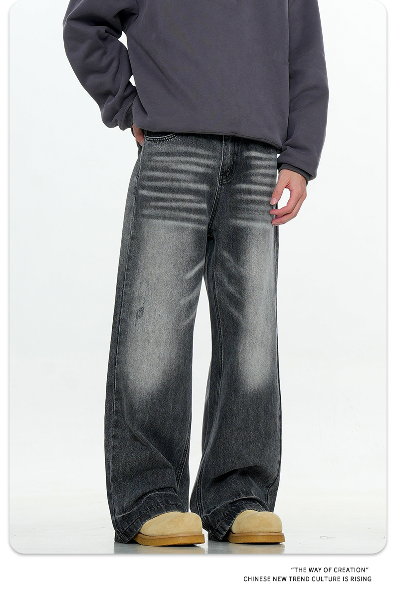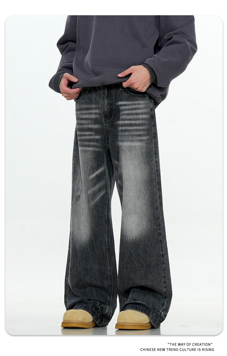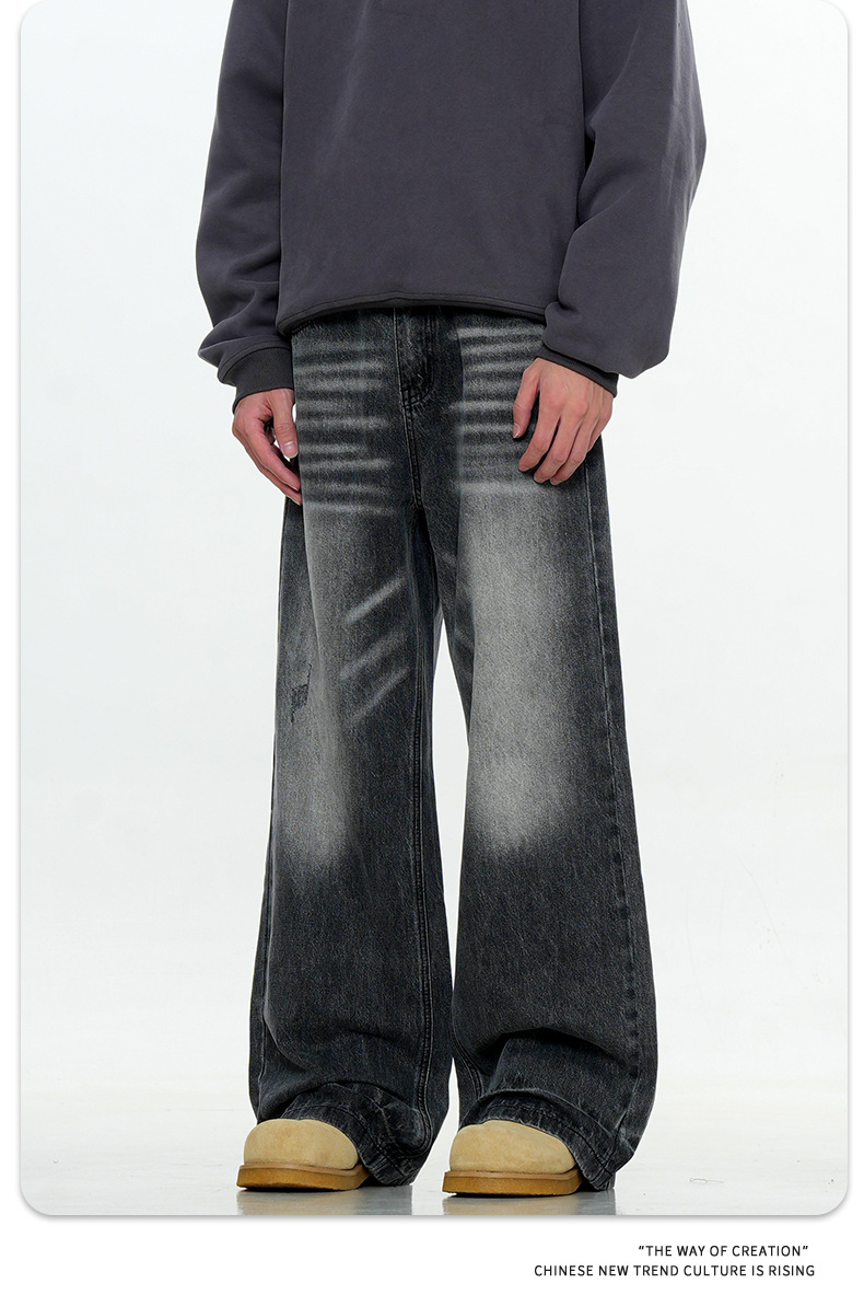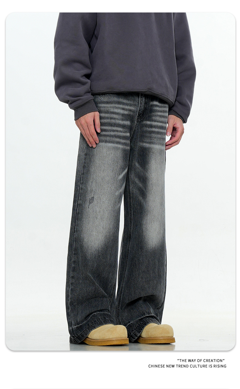 American men's jeans retro washed gradient distressed straight leg loose wide leg oversized slightly flared pants for children