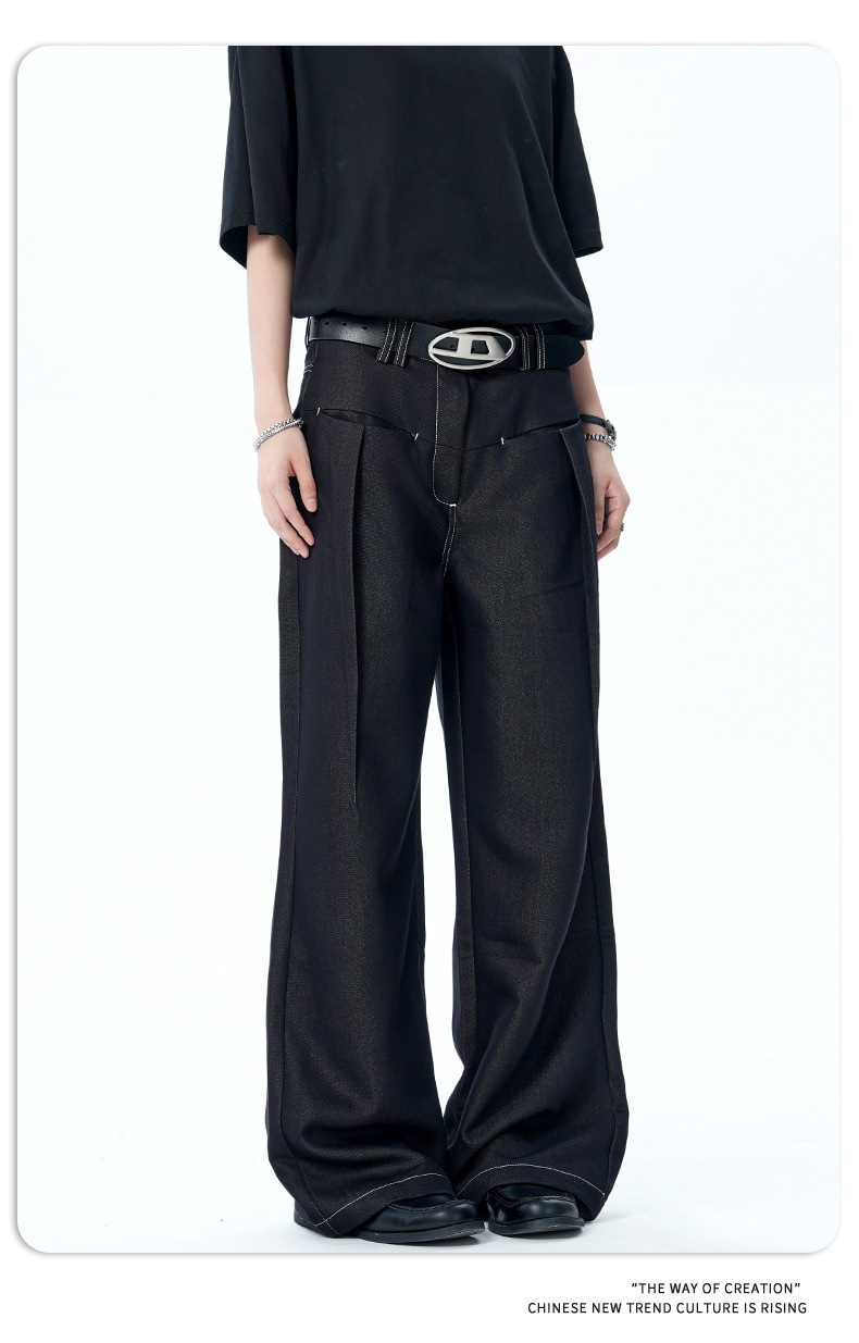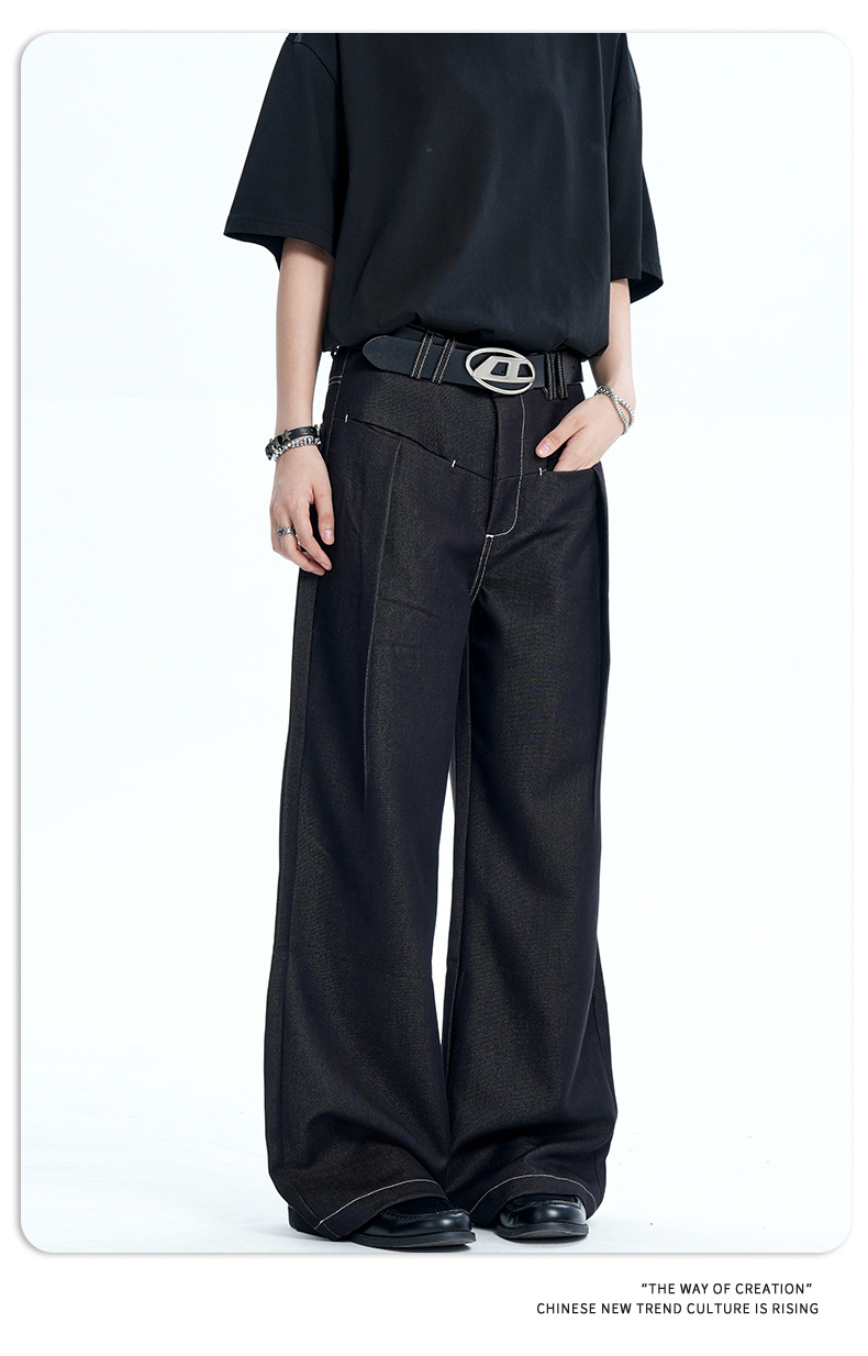 11KN Retro Bright Line Drape Versatile Trousers