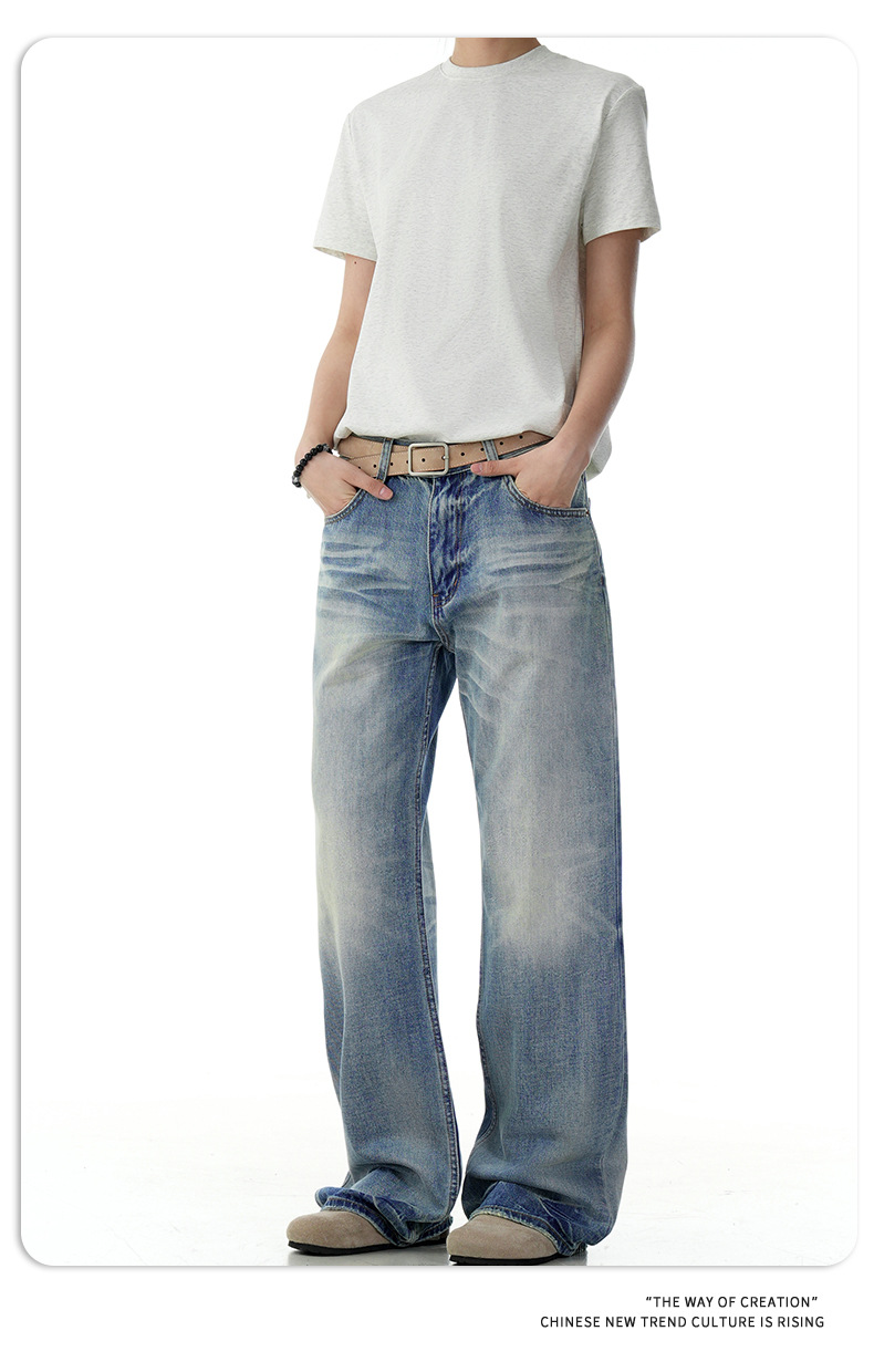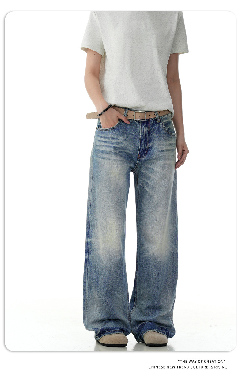 11KN Retro Old Gradual Change Loose Wide Leg Pants