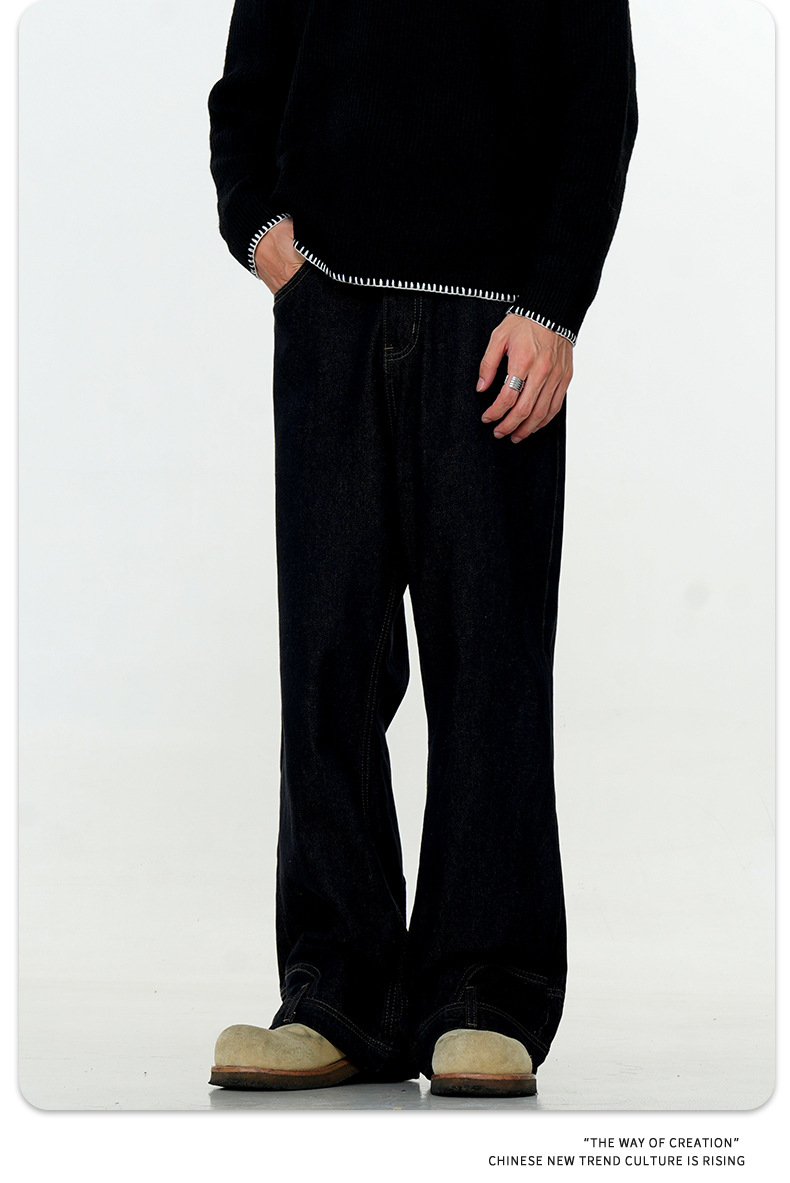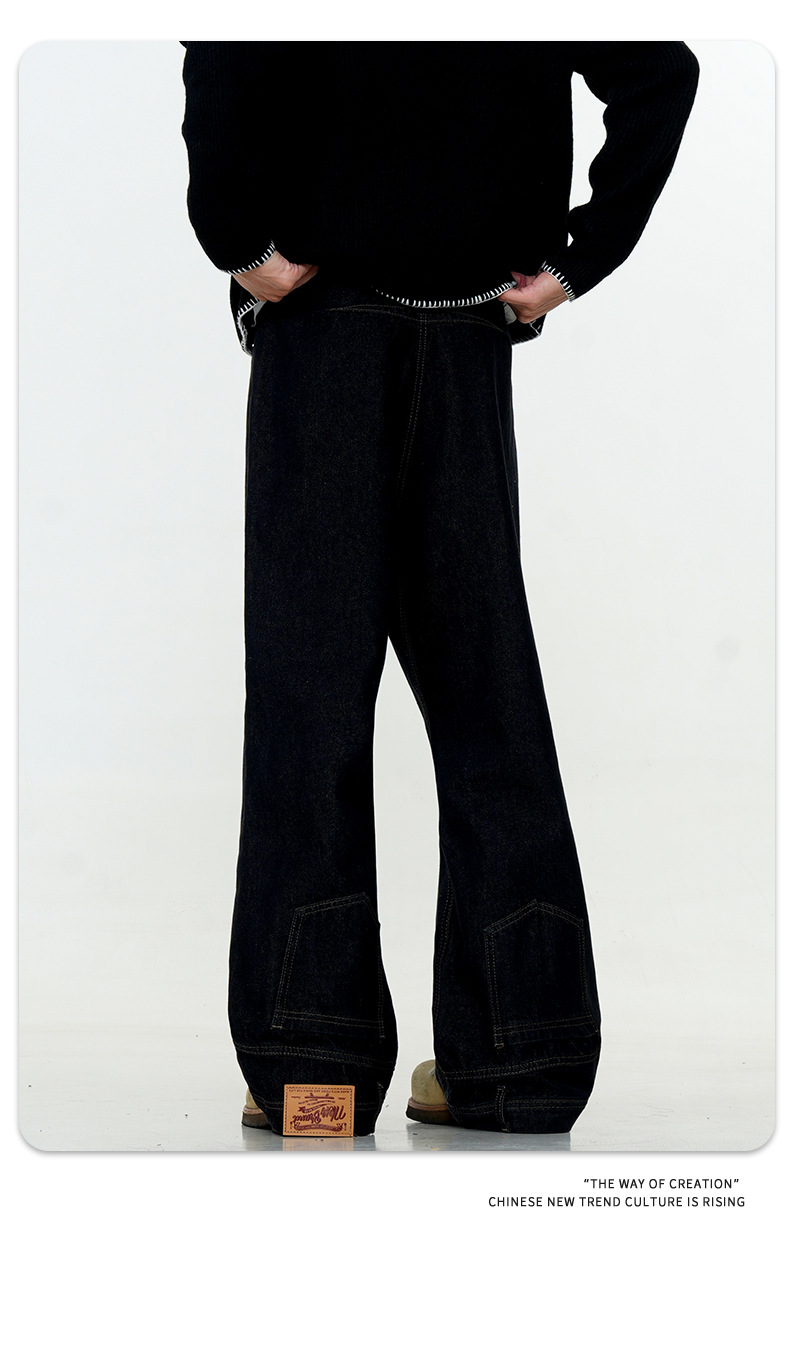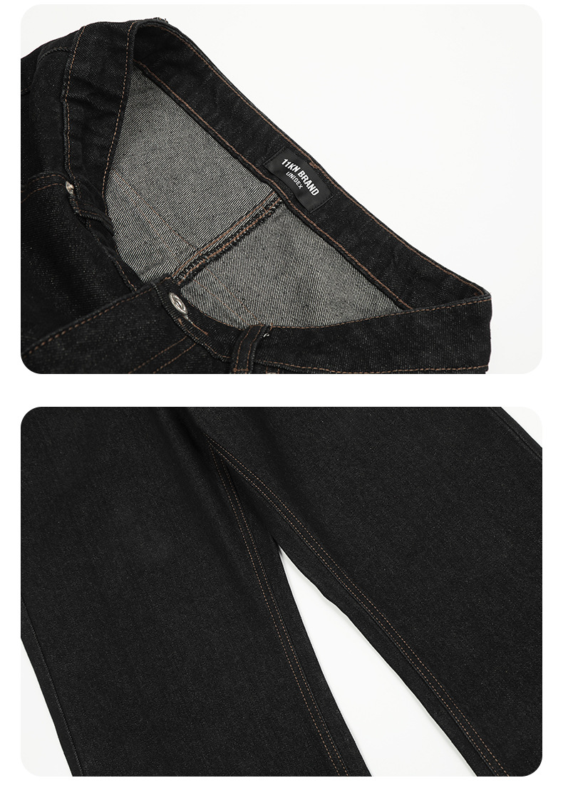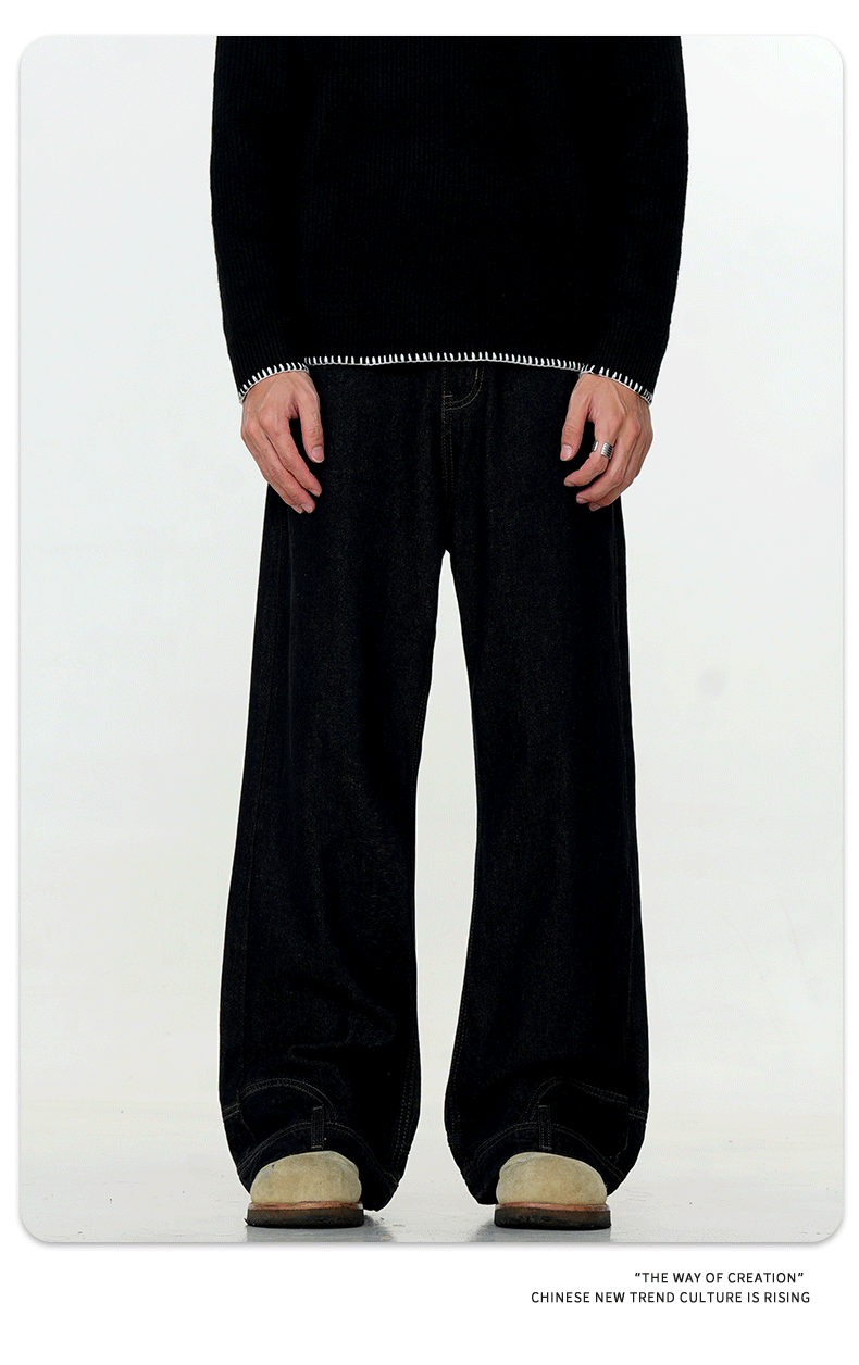11KN Washed Black Inverted Retro Design Reverse Straight Jeans