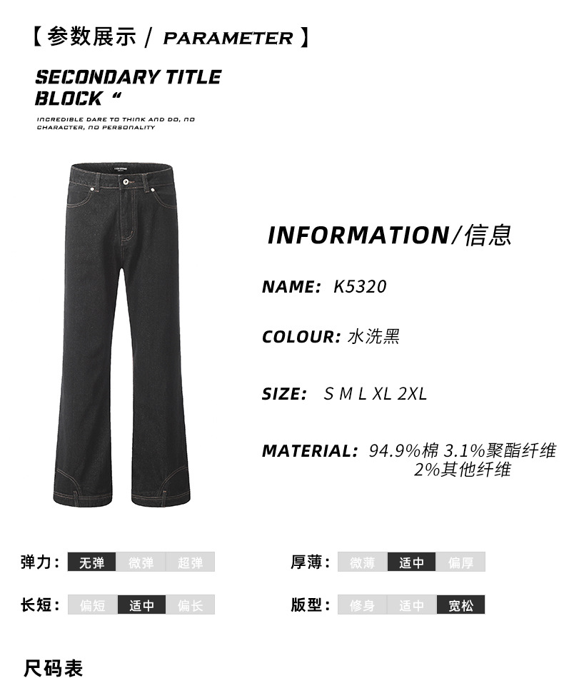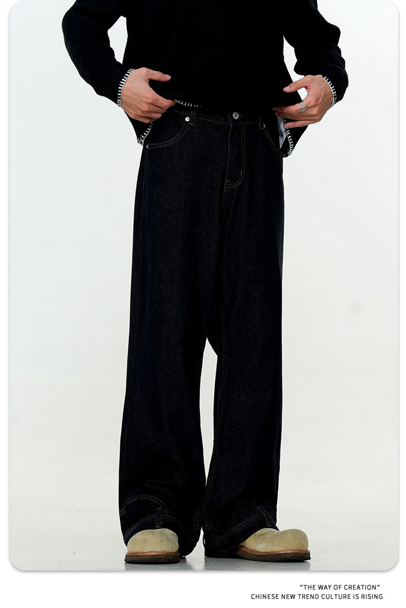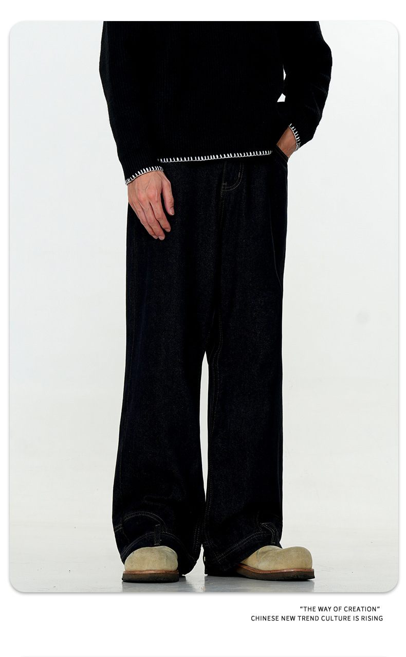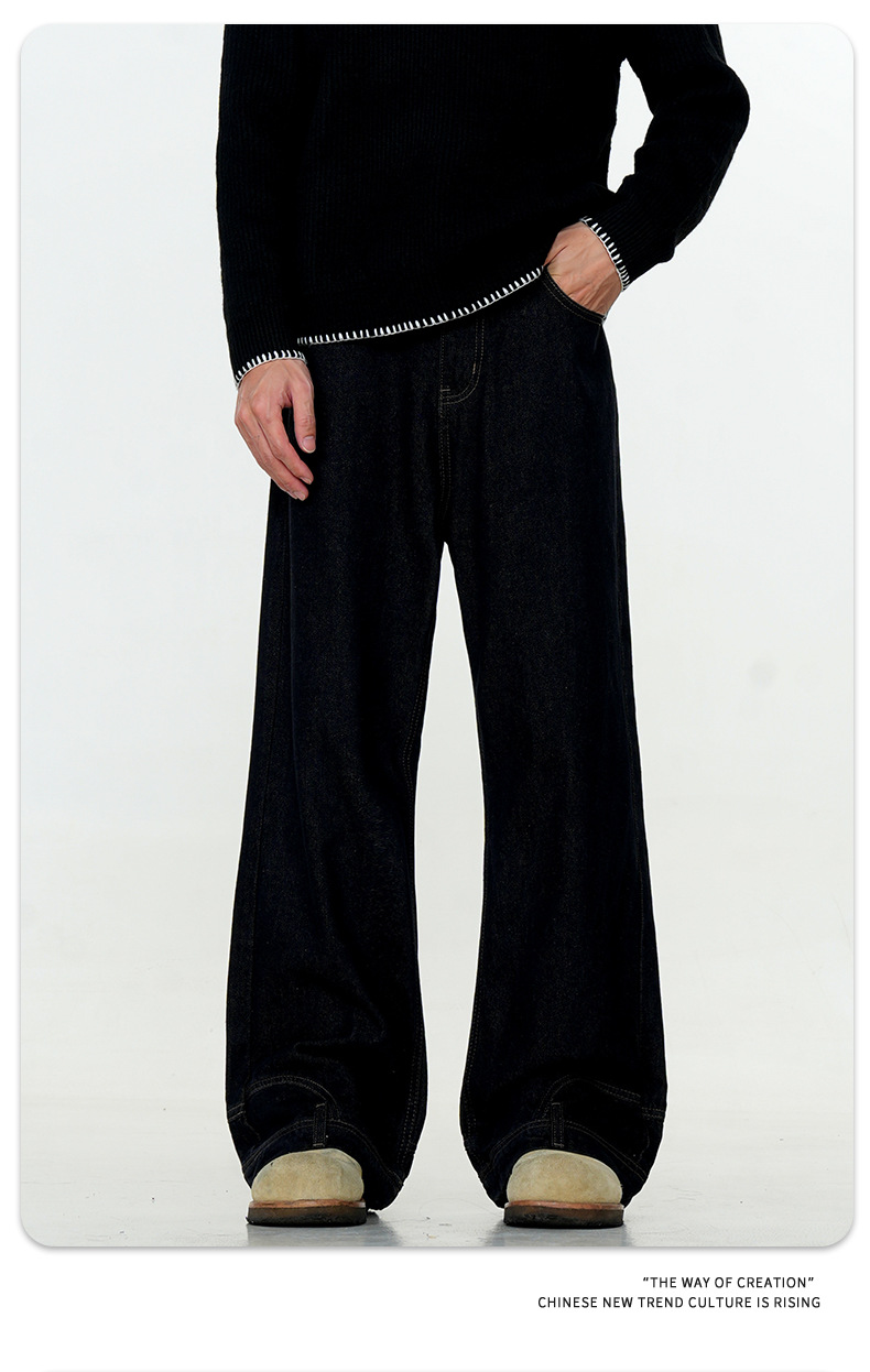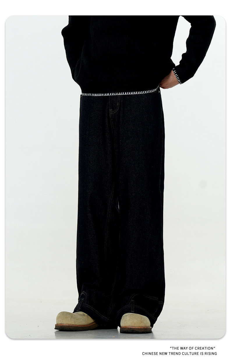 11KN Washed Black Inverted Retro Design Reverse Straight Jeans