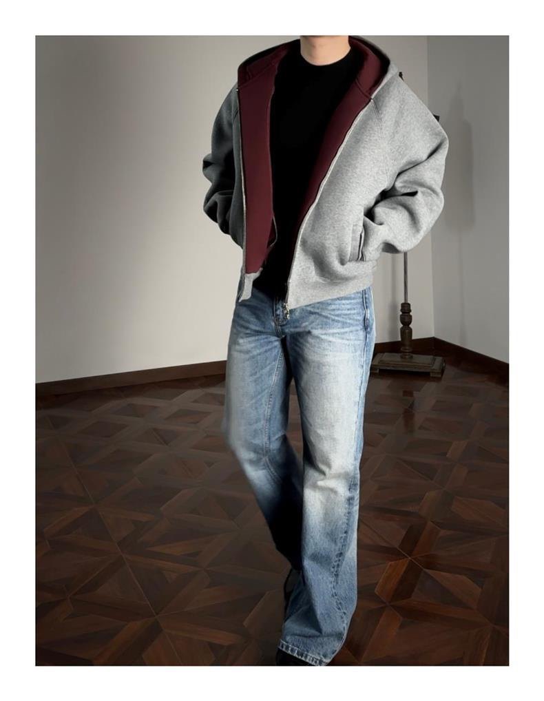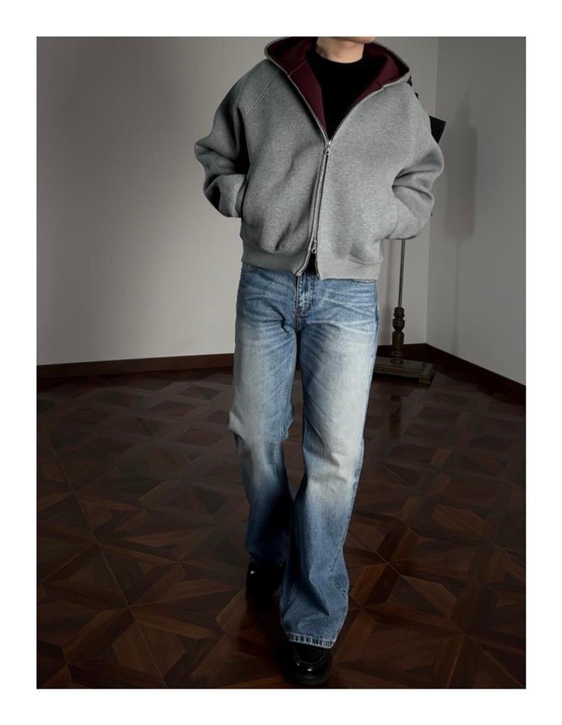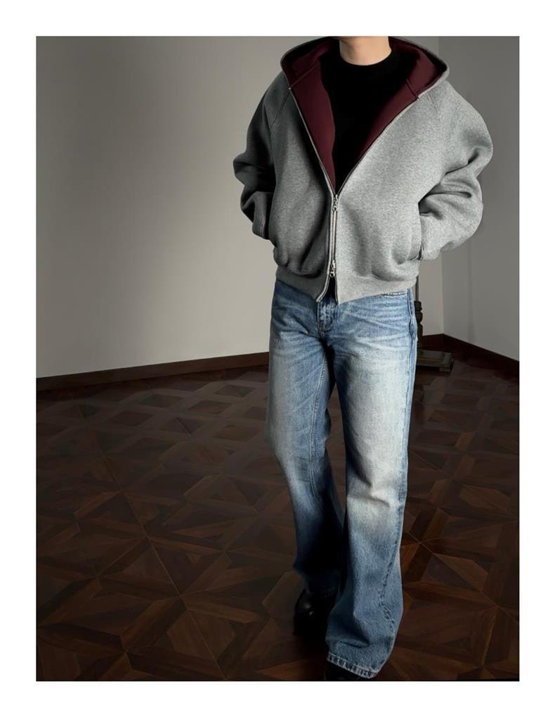 AMBSOM Casual Versatile Zip Hooded Sweater