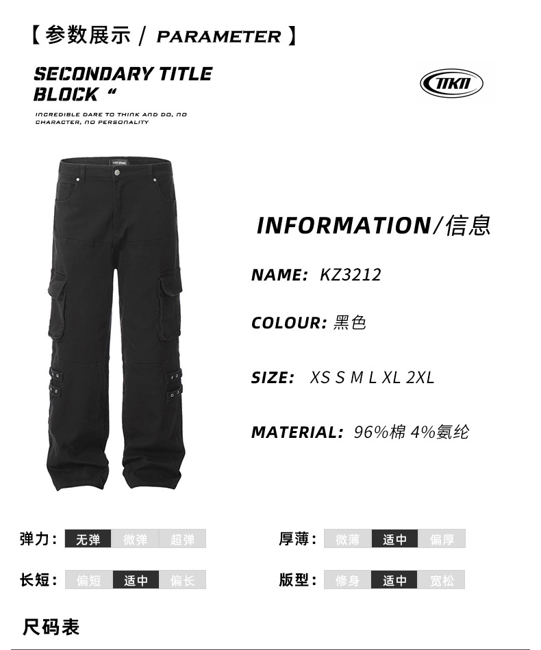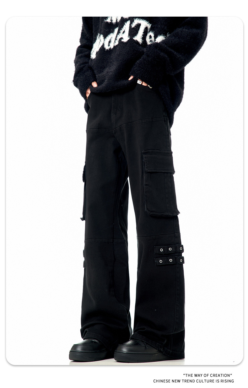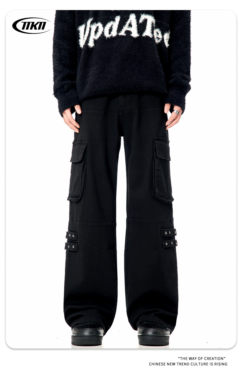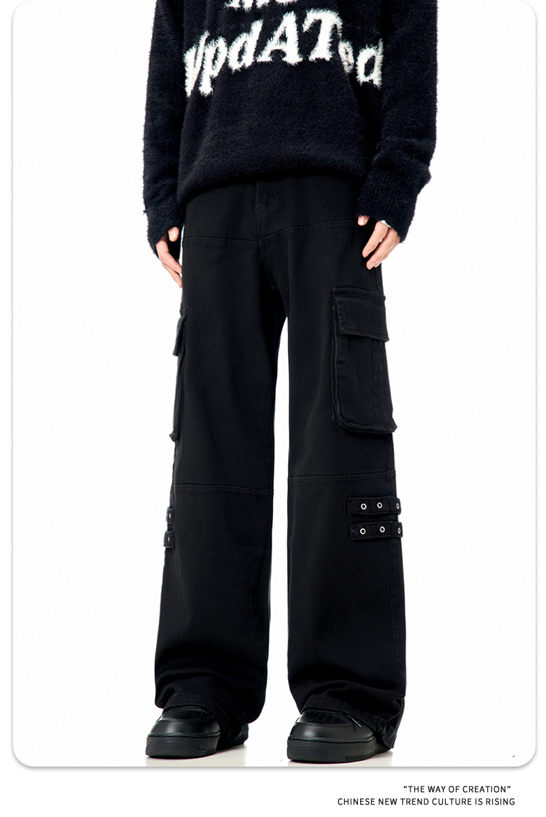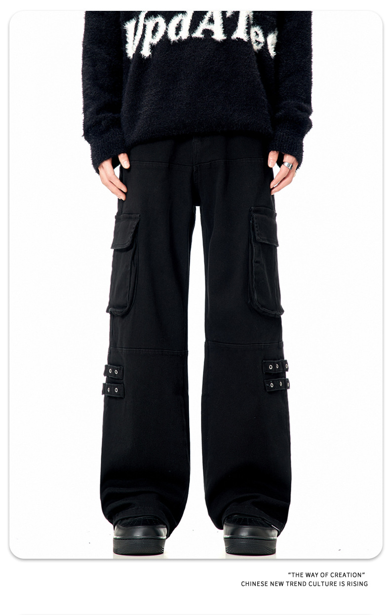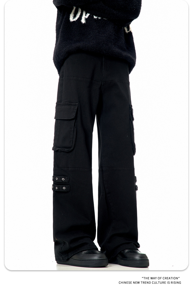 11 KN アメリカンブラックパンツレトロストレートウェッジ vibe ゆったりジーンズ Cargo pants