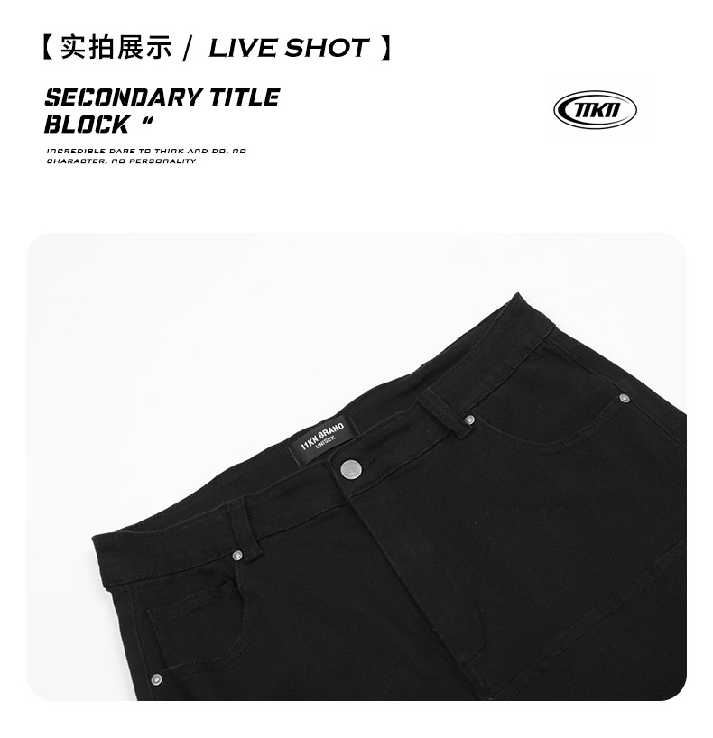11KN American black workwear pants, retro straight leg trendy vibe design, loose fitting jeans, Cargo pants