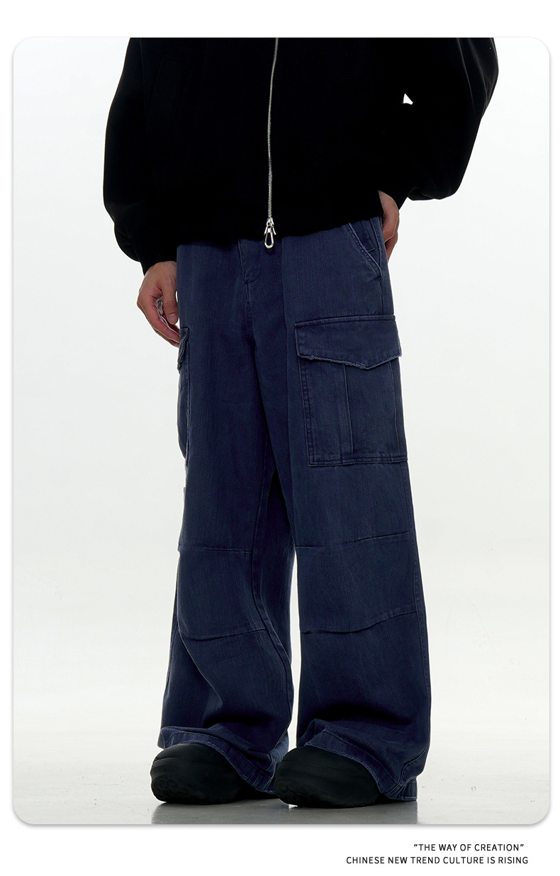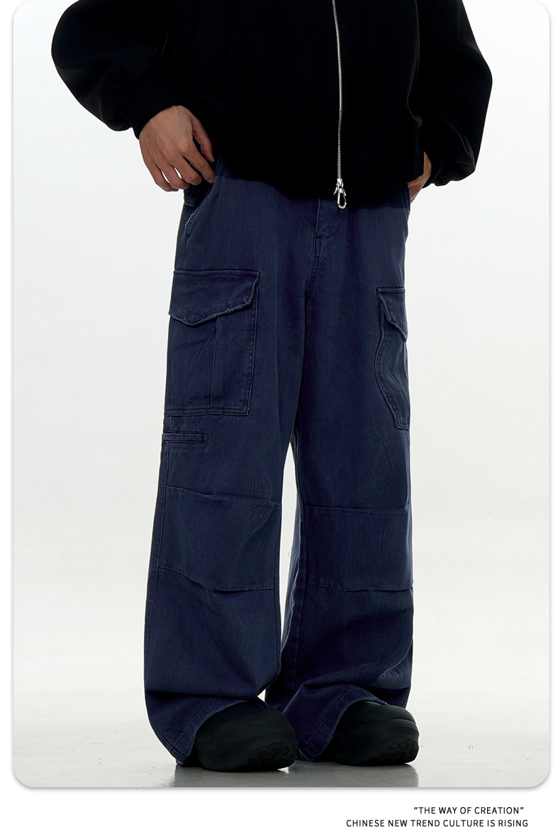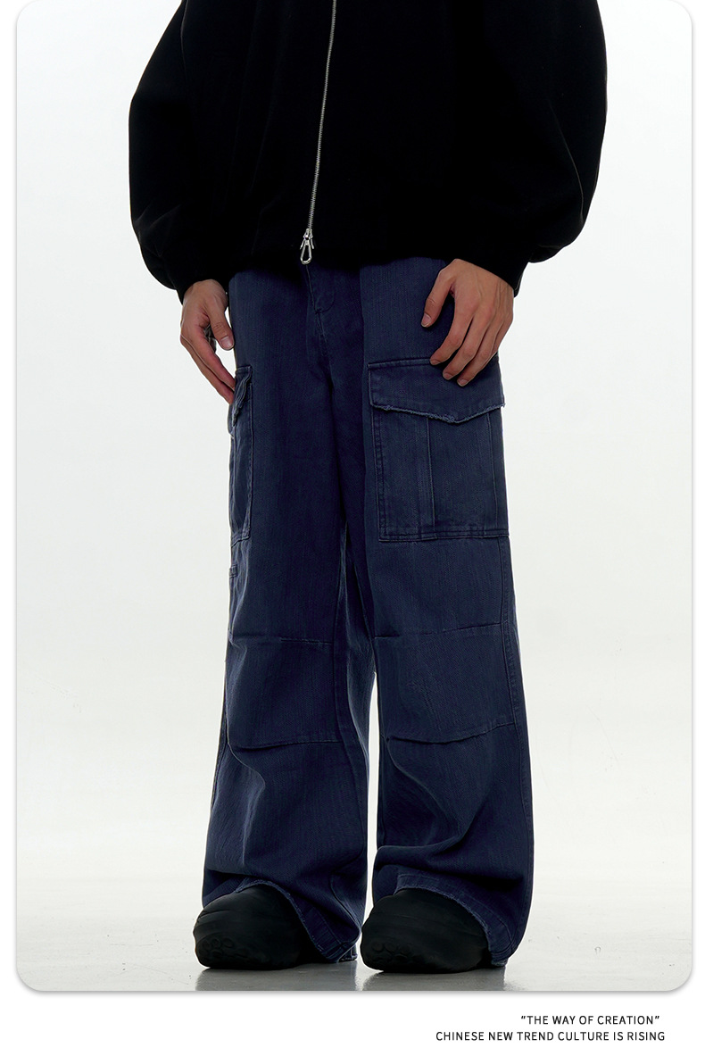American high street pleated design with multiple pockets, micro flared waistband, work pants for men and women, loose straight leg casual pants, trendy brand
