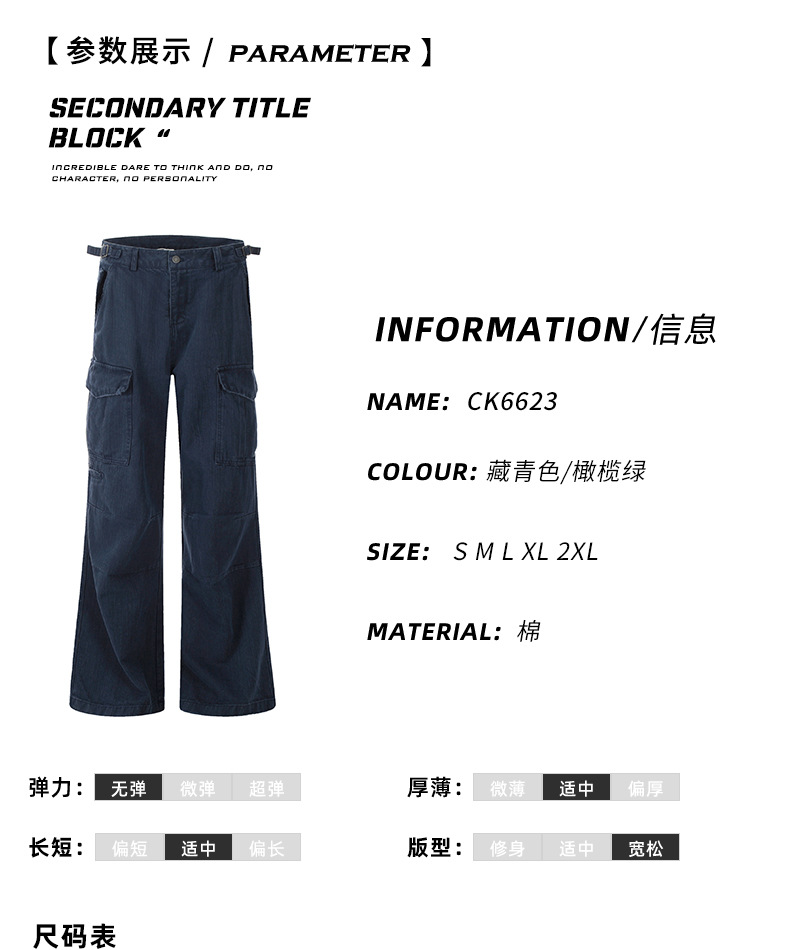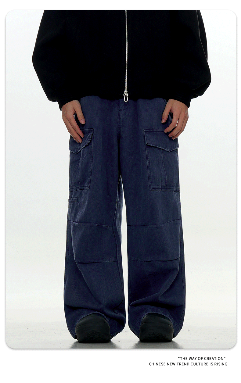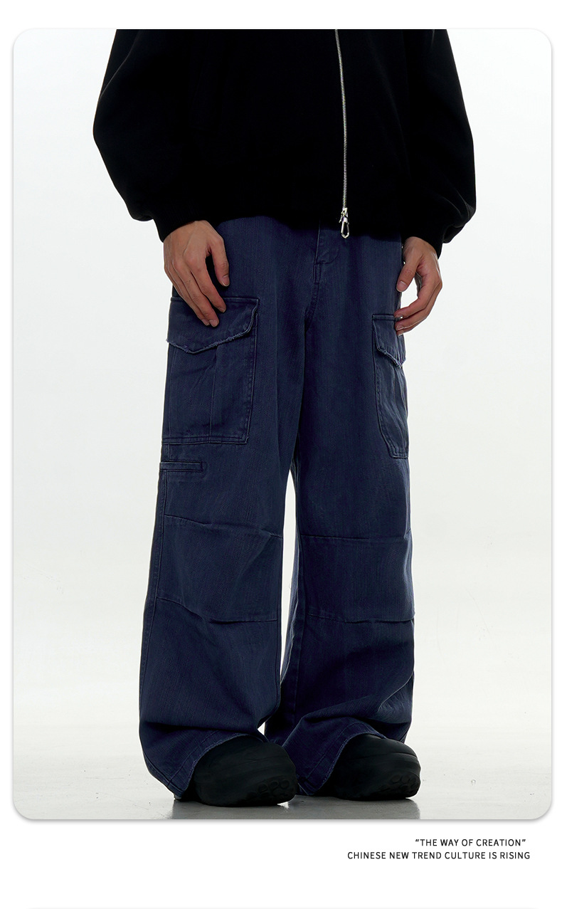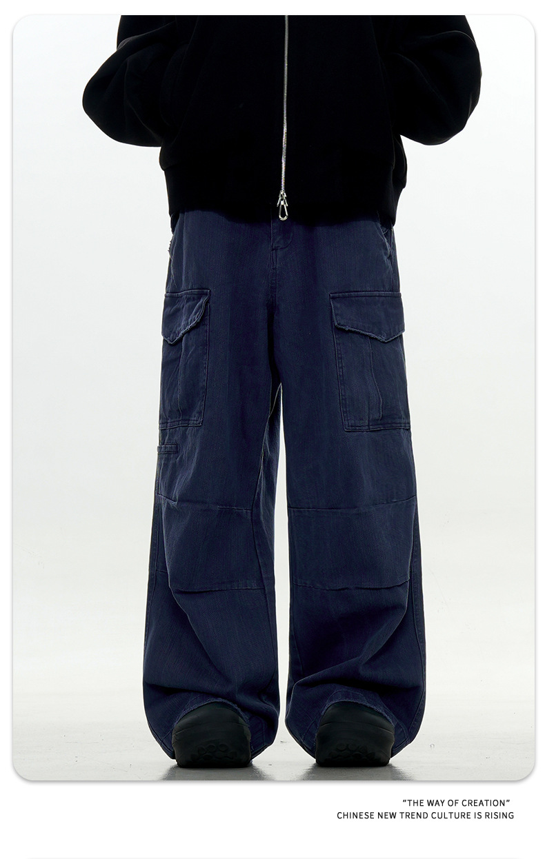 American high street pleated design with multiple pockets, micro flared waistband, work pants for men and women, loose straight leg casual pants, trendy brand