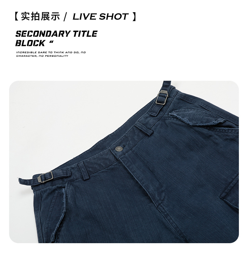 アメリカンハイストリートプリーツデザイン マルチポケットマイクロラッパベルトタイツ men and women ゆったりストレートカジュアルパンツ tide