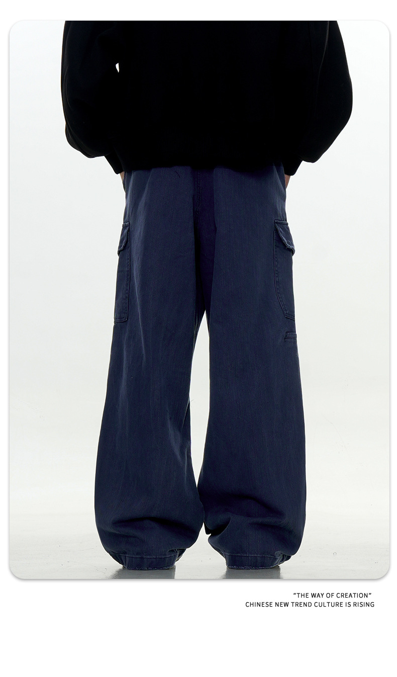 Kiểu Mỹ cao đường phố xếp nếp thiết kế cảm giác đa túi Micro Lace thắt lưng làm việc quần áo cho nam giới và phụ nữ rộng thùng thình quần thoải mái