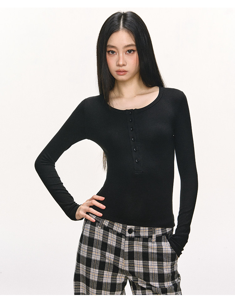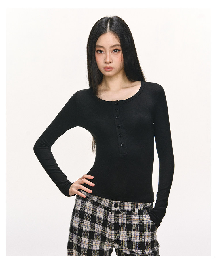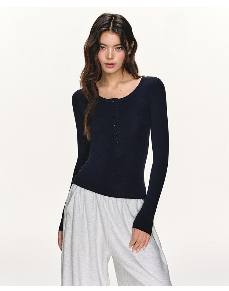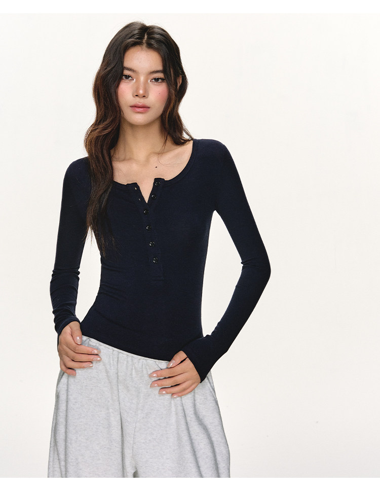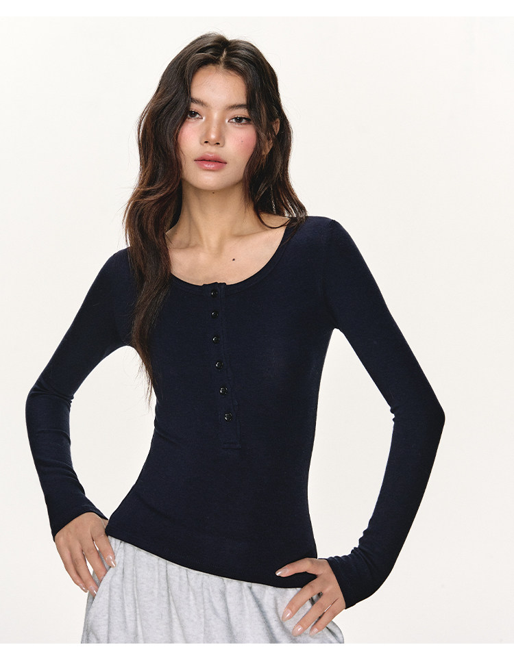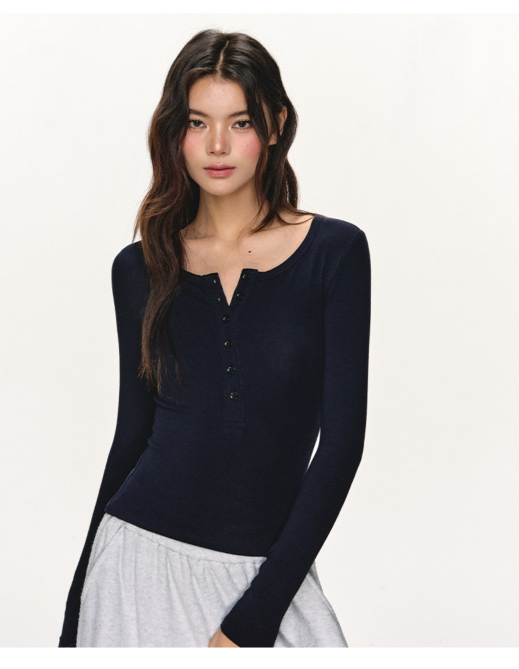 Anna Aneae Henry Collar with Bottom and Slim Long Sleeves