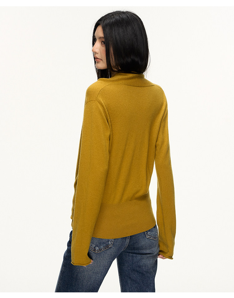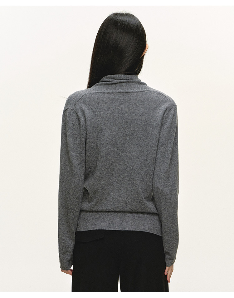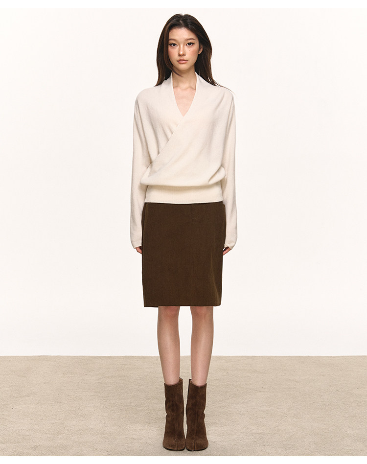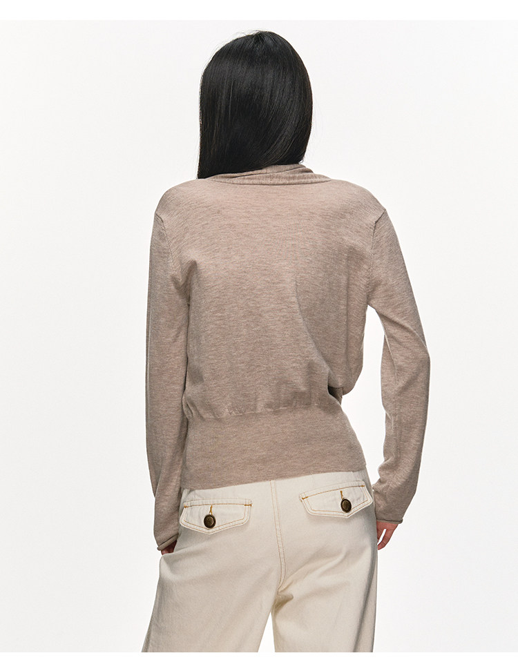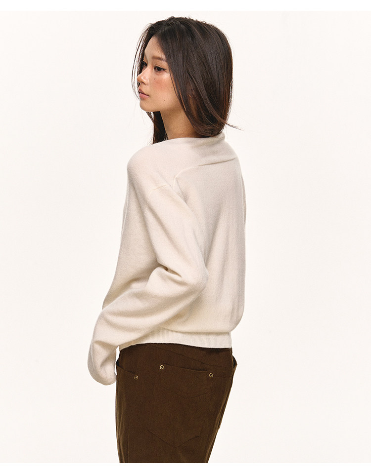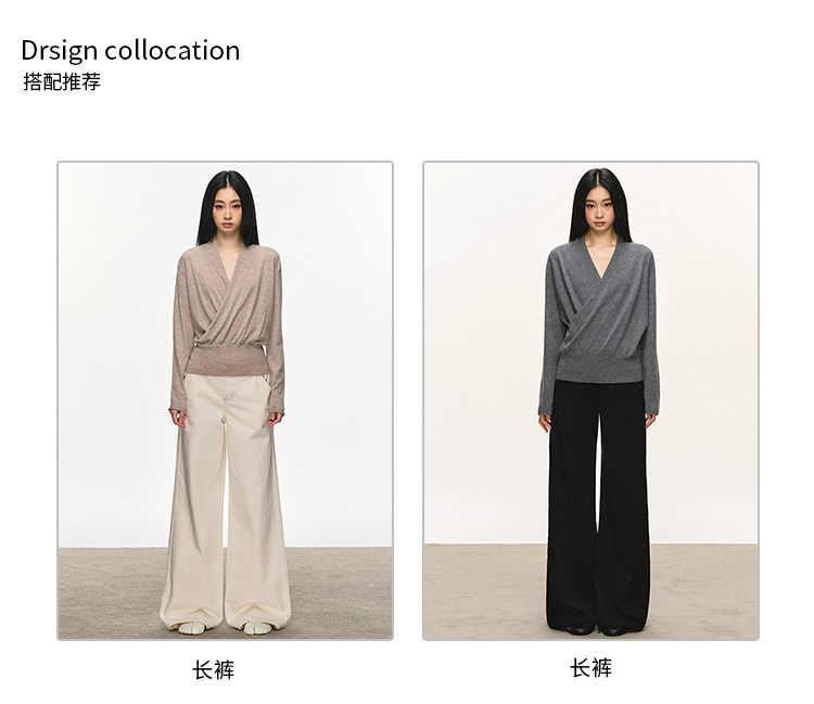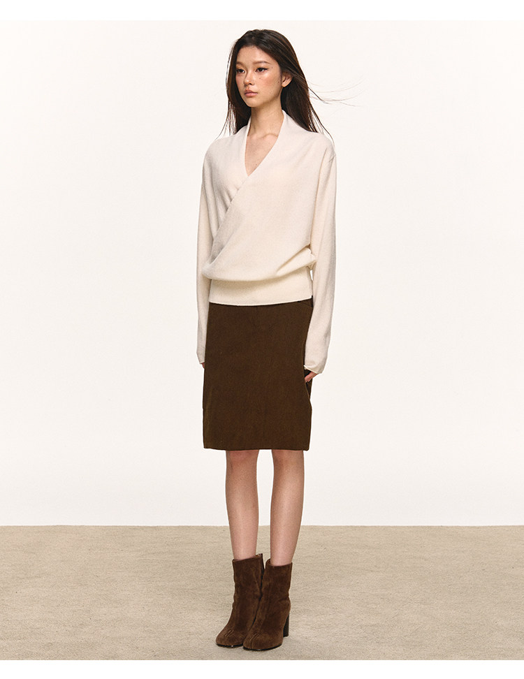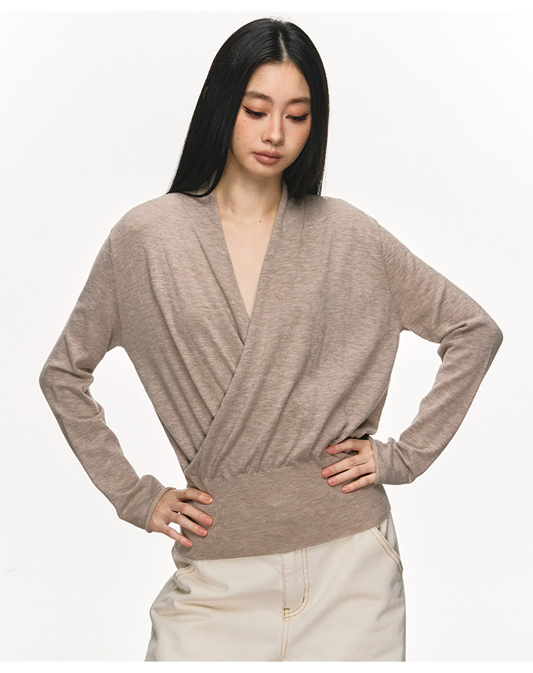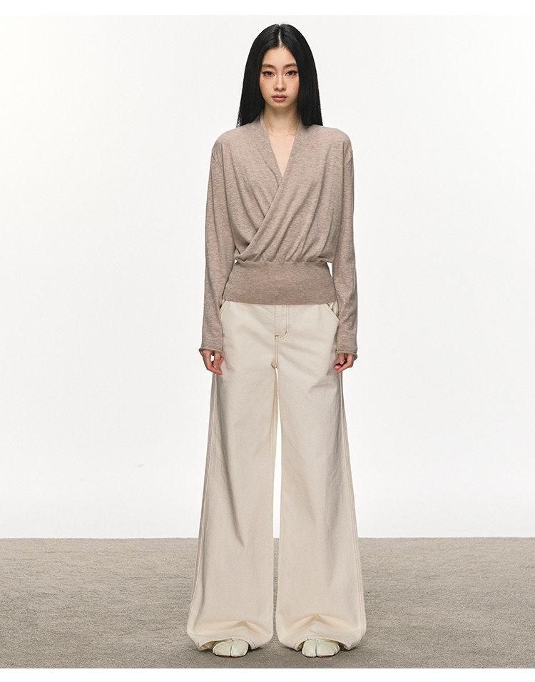Anna Aneae Pleated V-neck Cross Loose Long Sleeve Knit