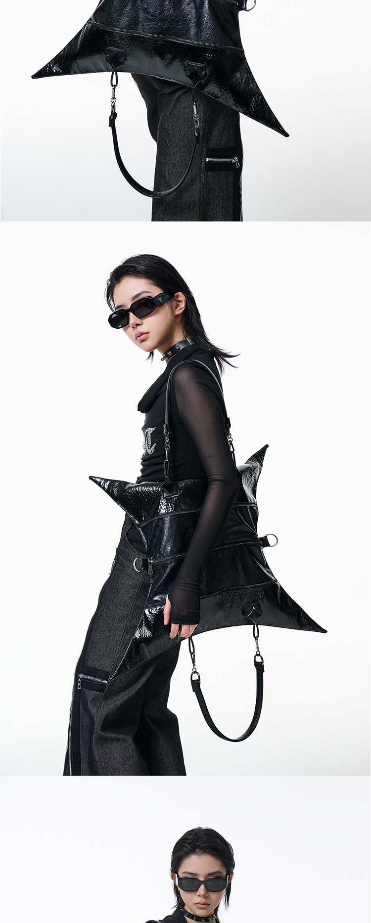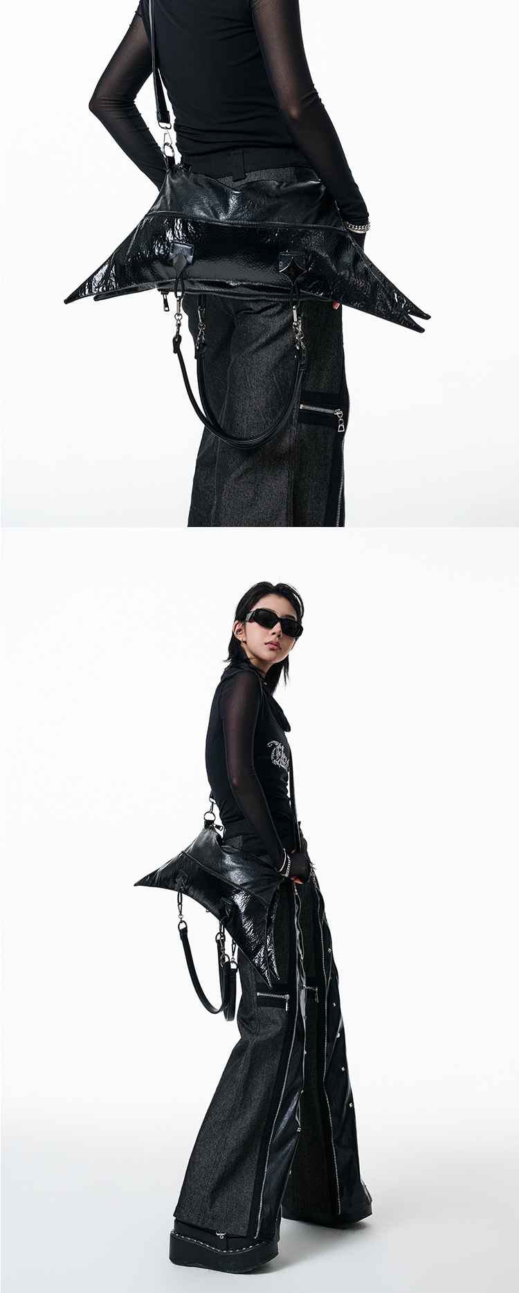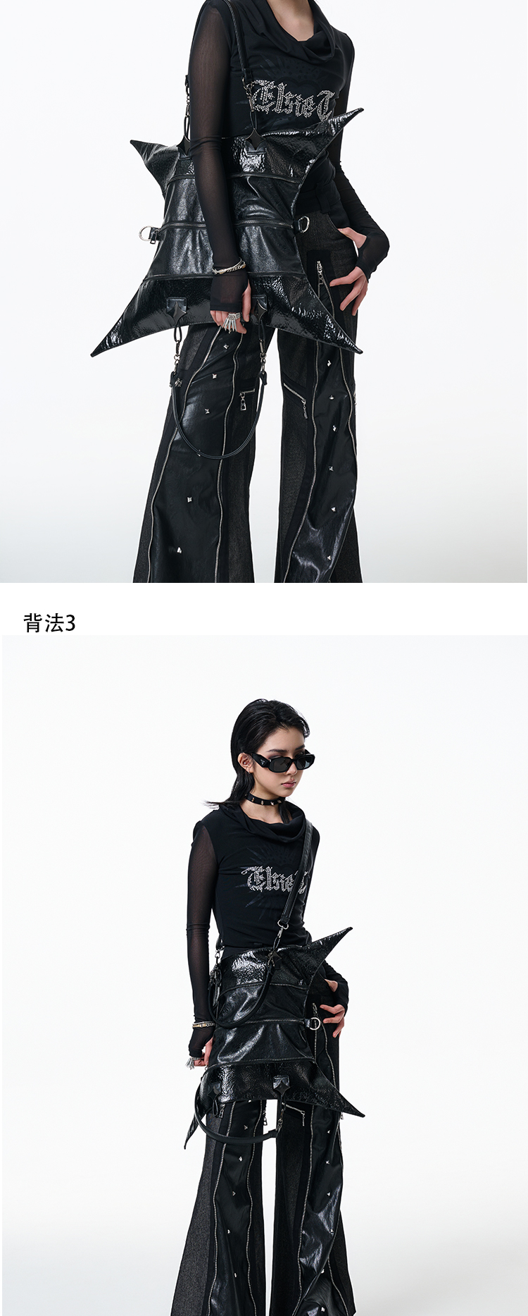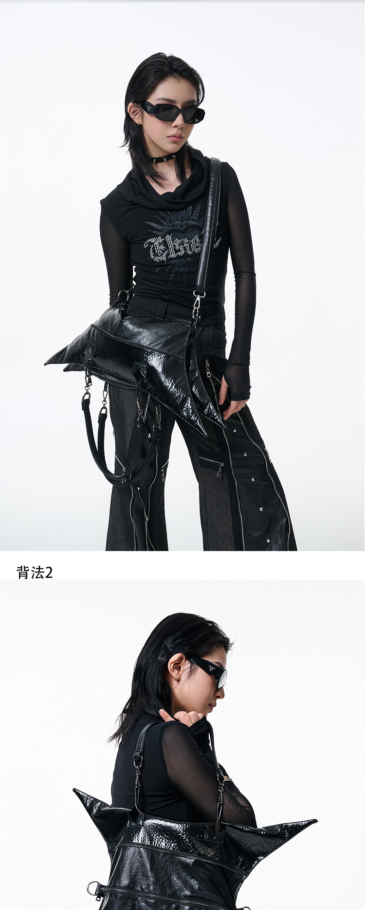 Antiphase Multi-back Four-pointed Star Zipper Shoulder Messenger Bag