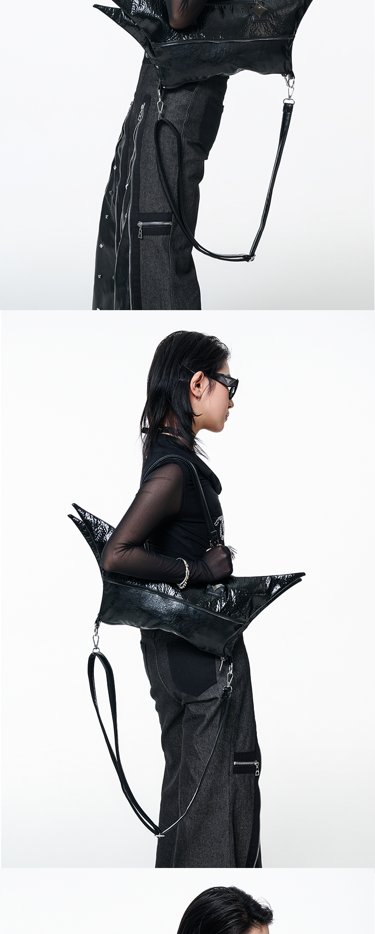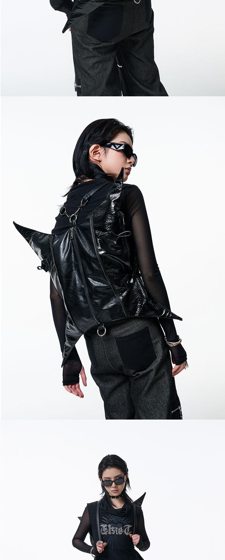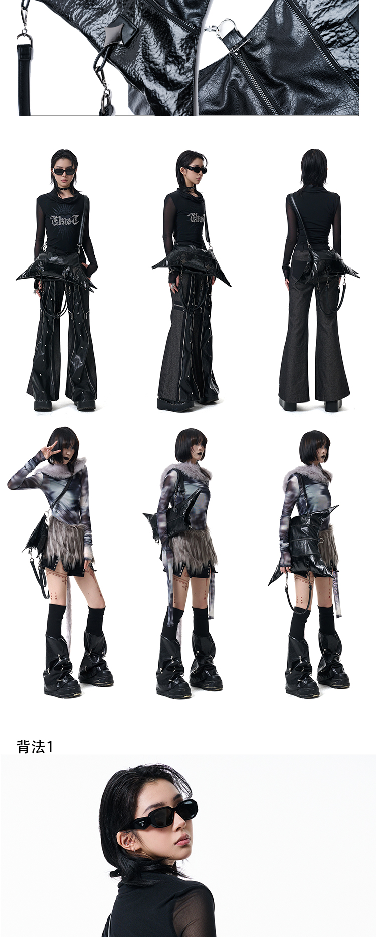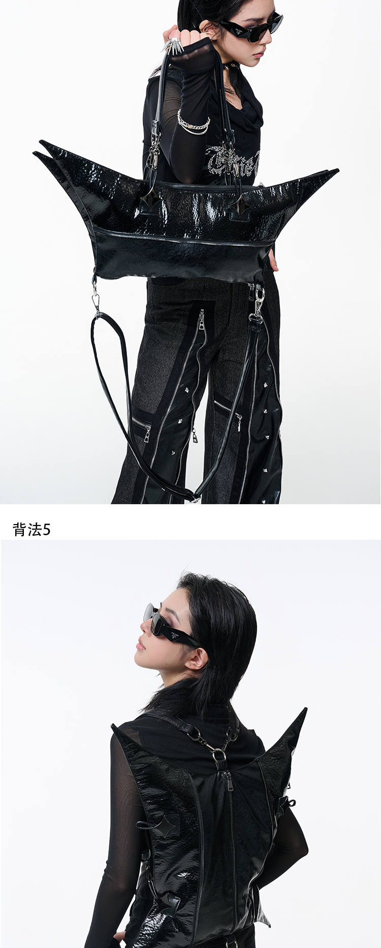 Antiphase Multi-back Four-pointed Star Zipper Shoulder Messenger Bag