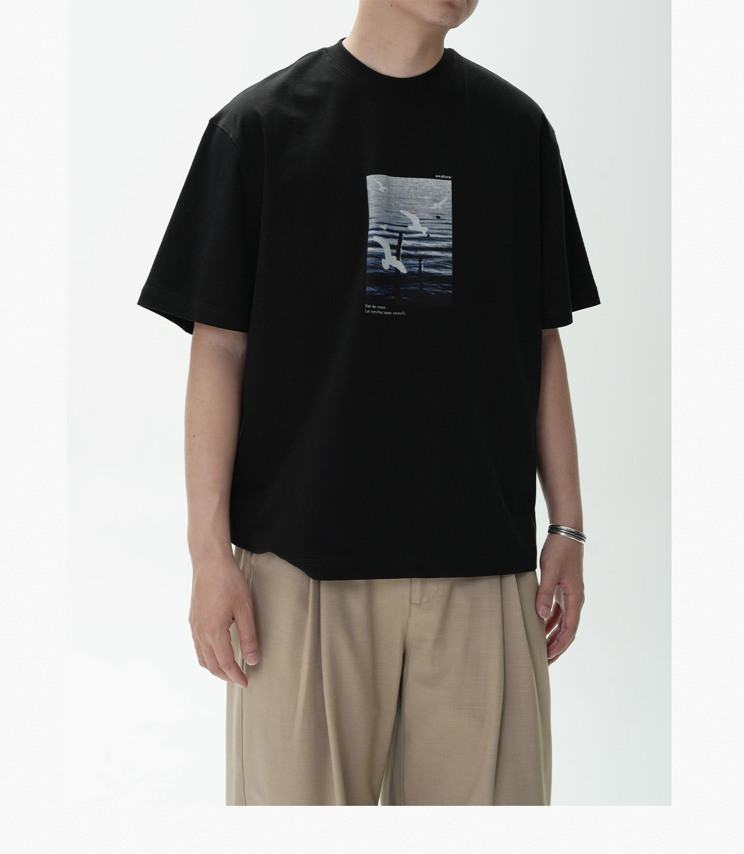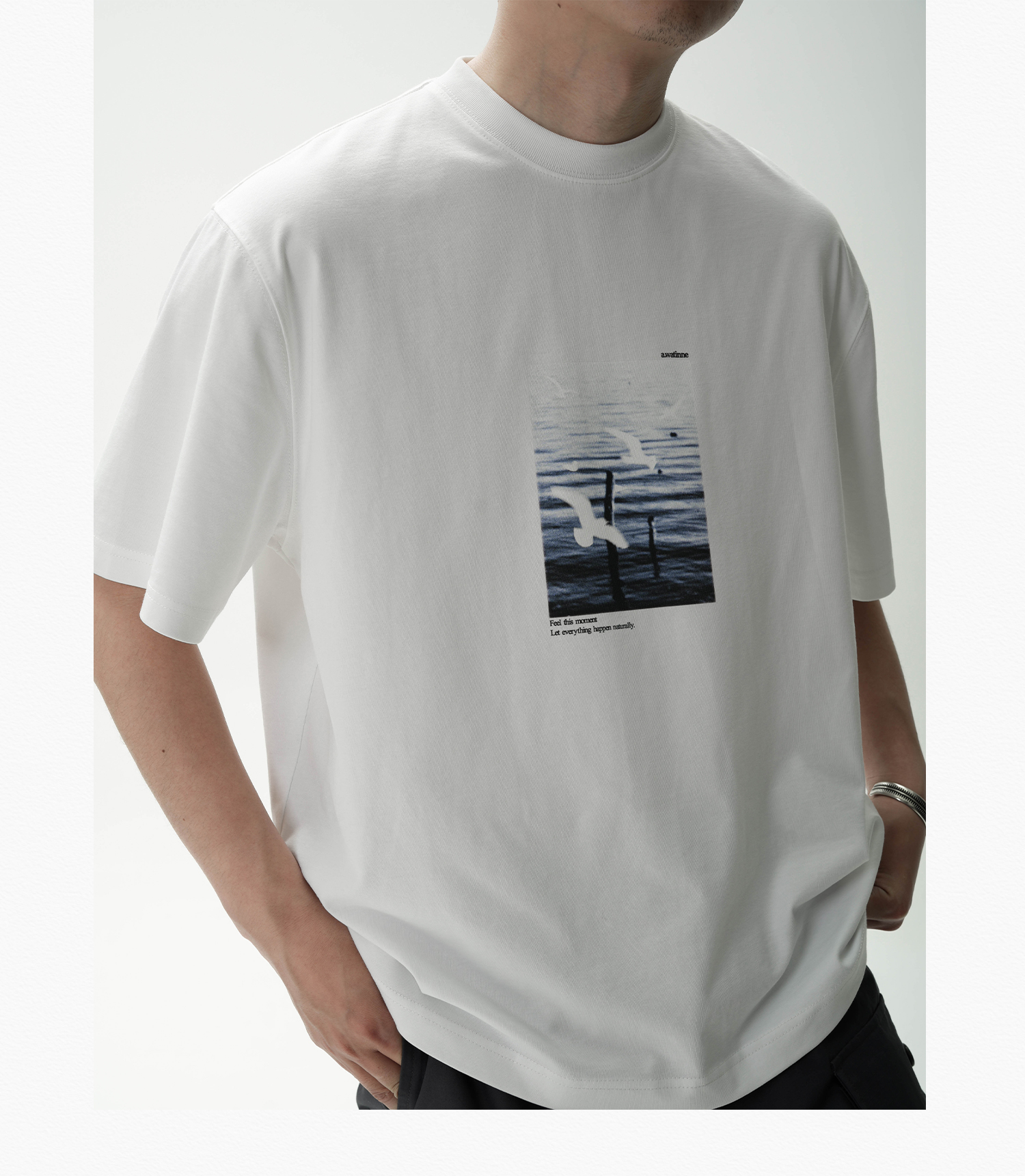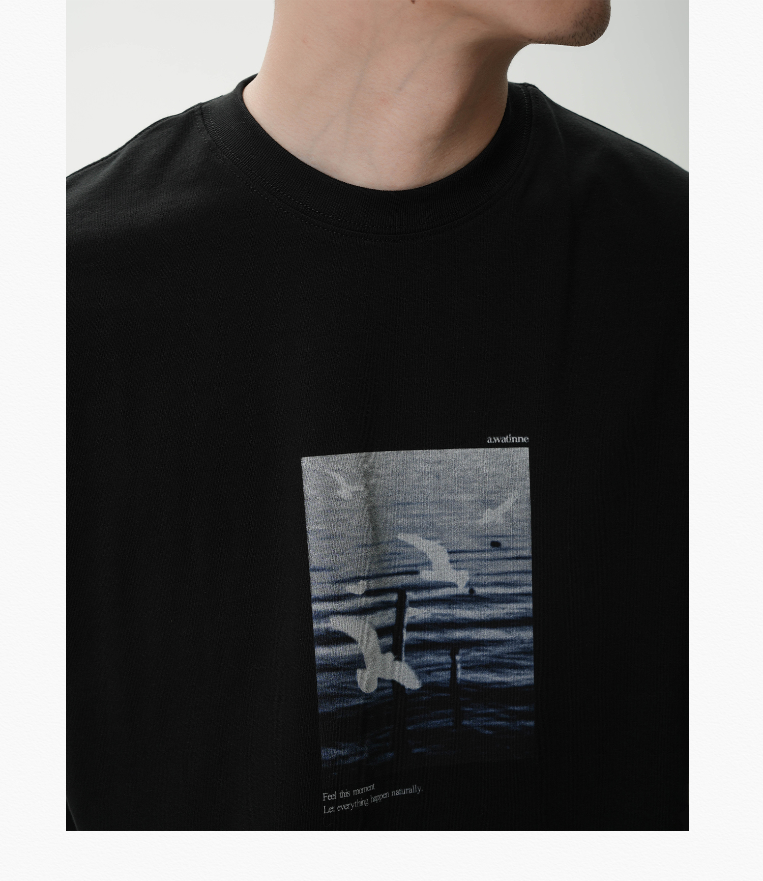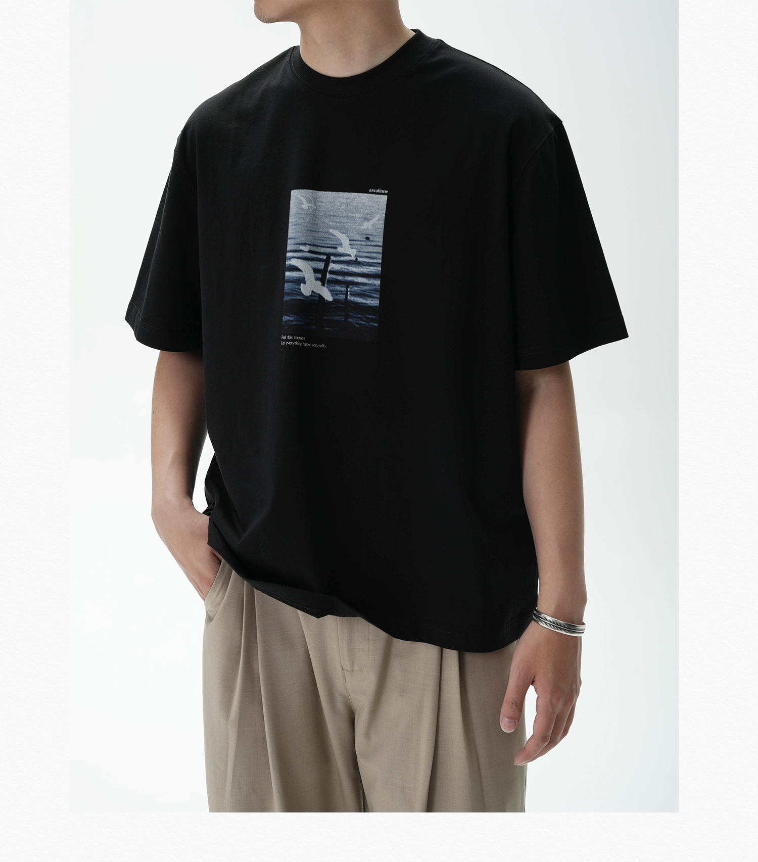 AWT Landscape Flying Bird Direct Injection Printing Loose TEE