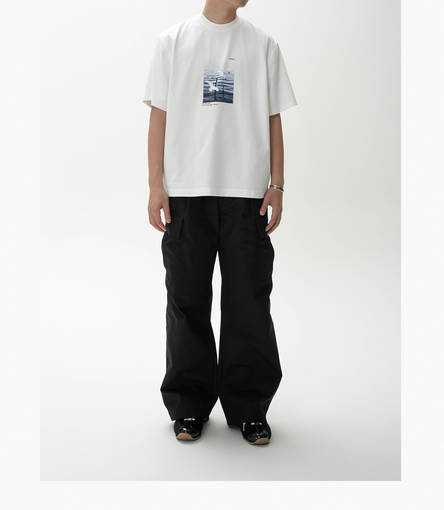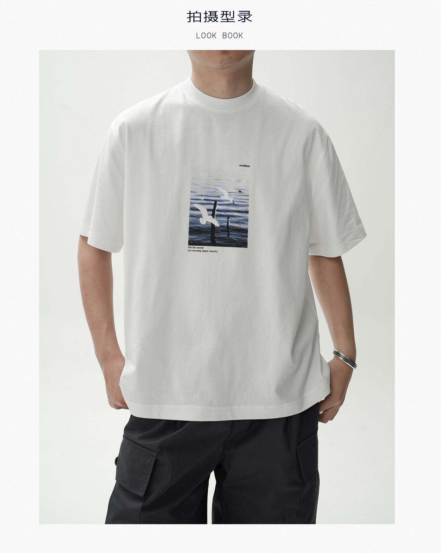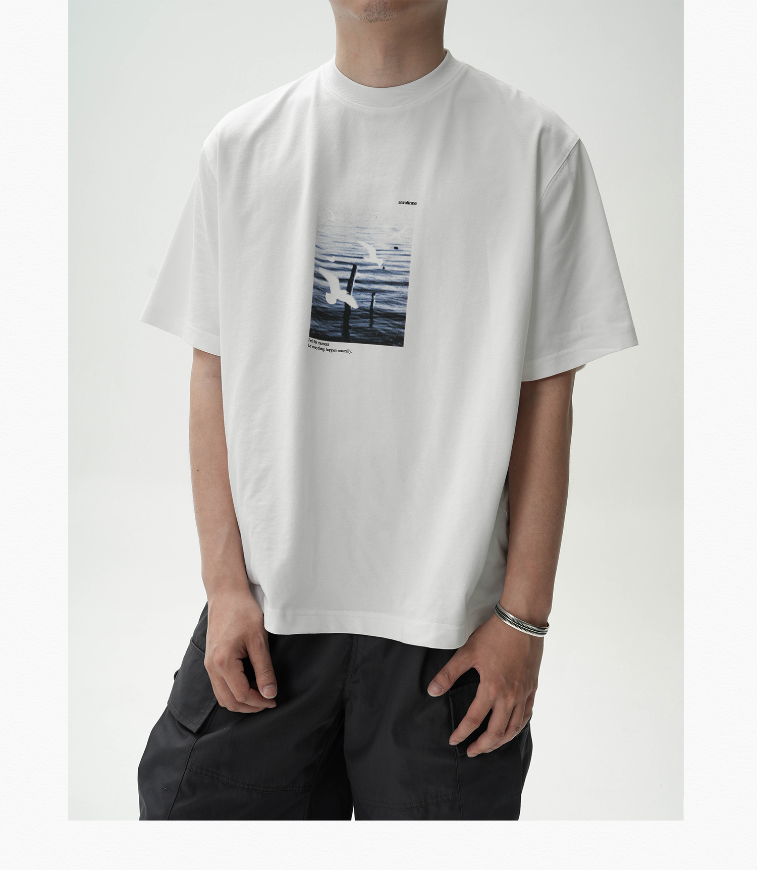 AWT Landscape Flying Bird Direct Injection Printing Loose TEE