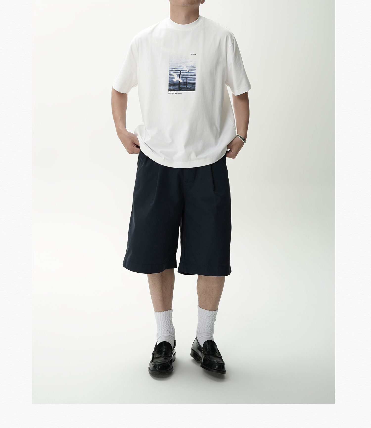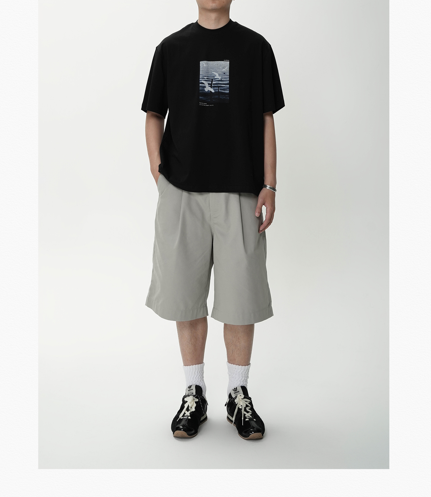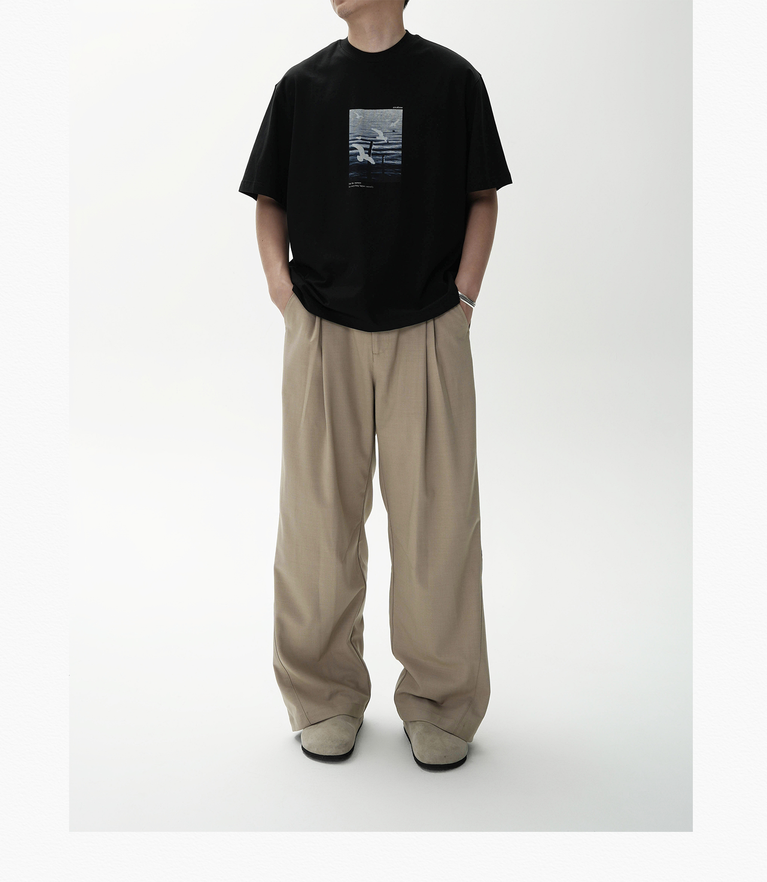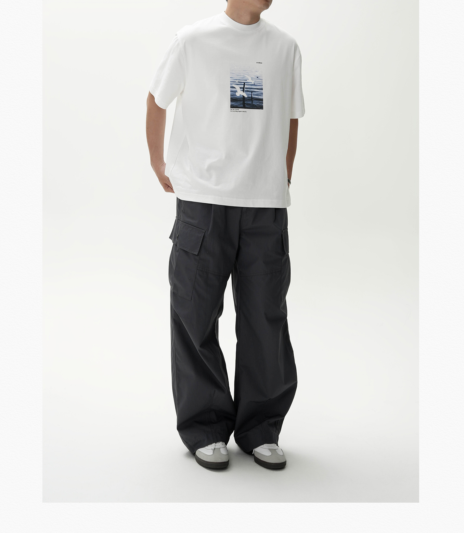 AWT Landscape Flying Bird Direct Injection Printing Loose TEE