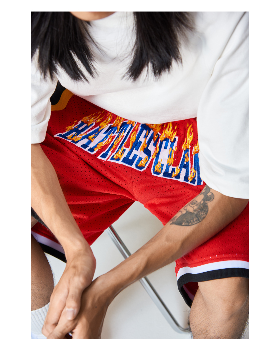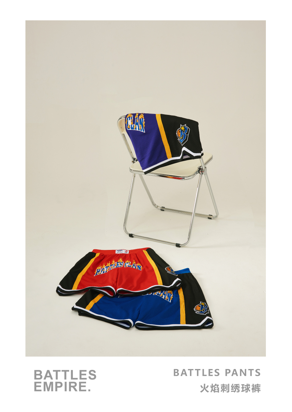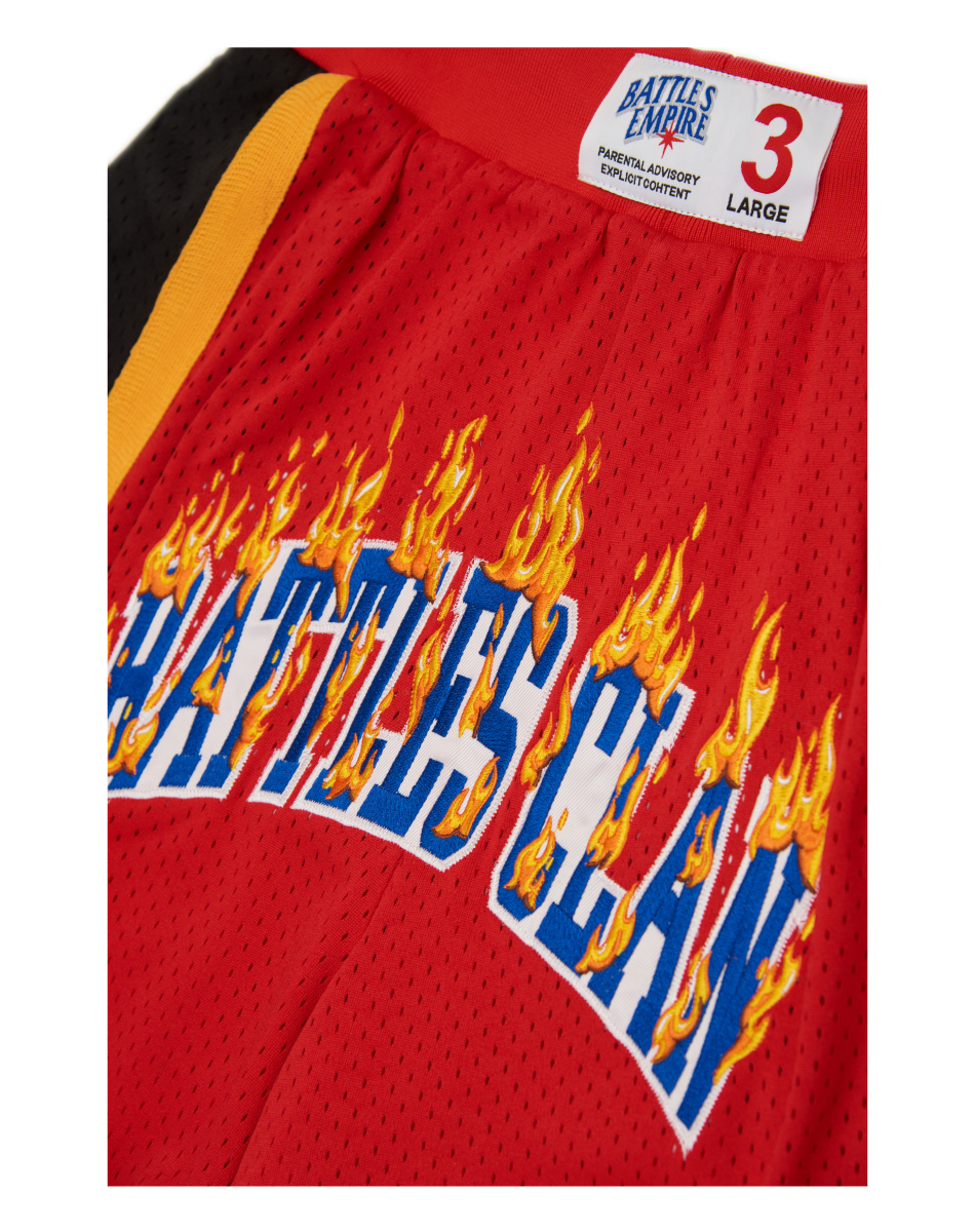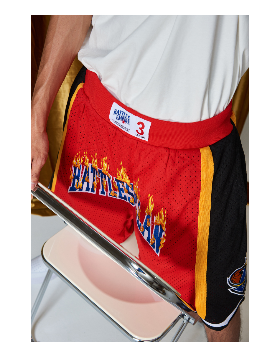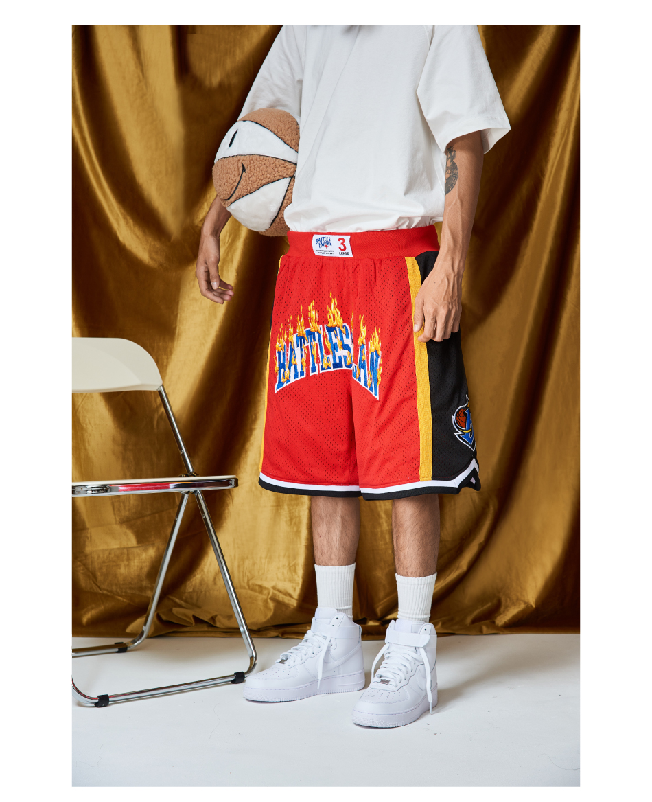 Battles Flame Embroidery Contrasting Basketball Shorts