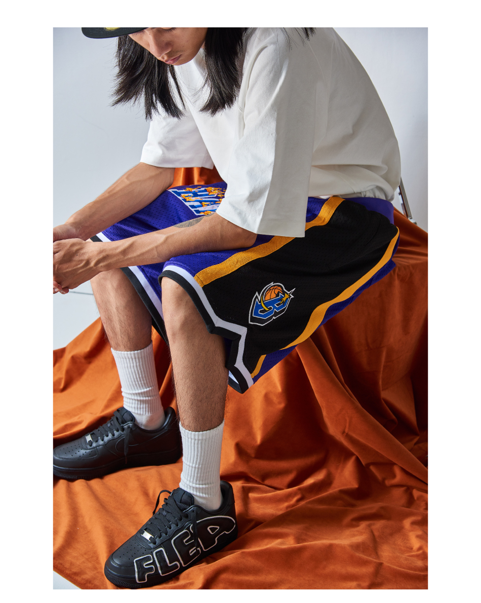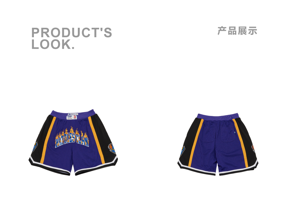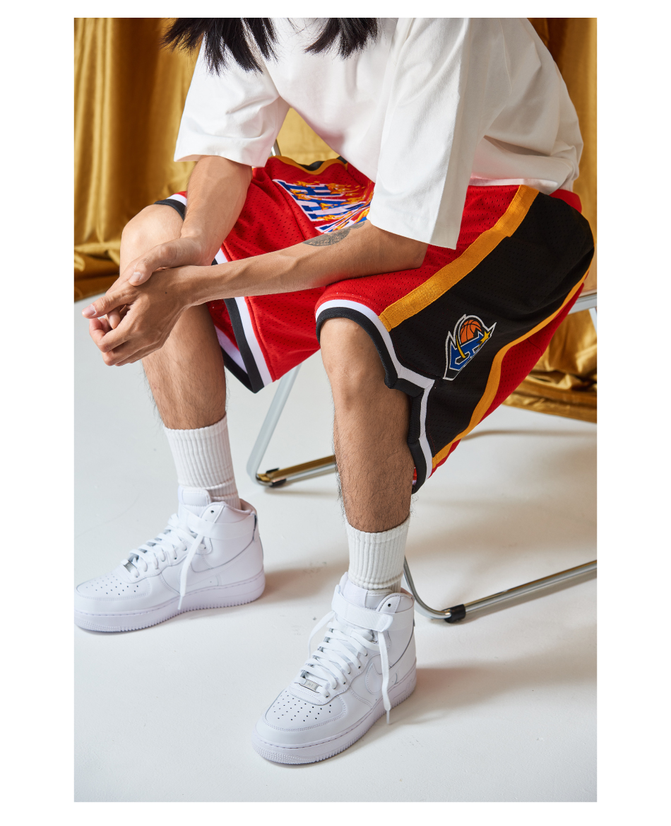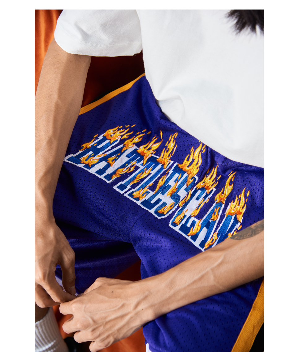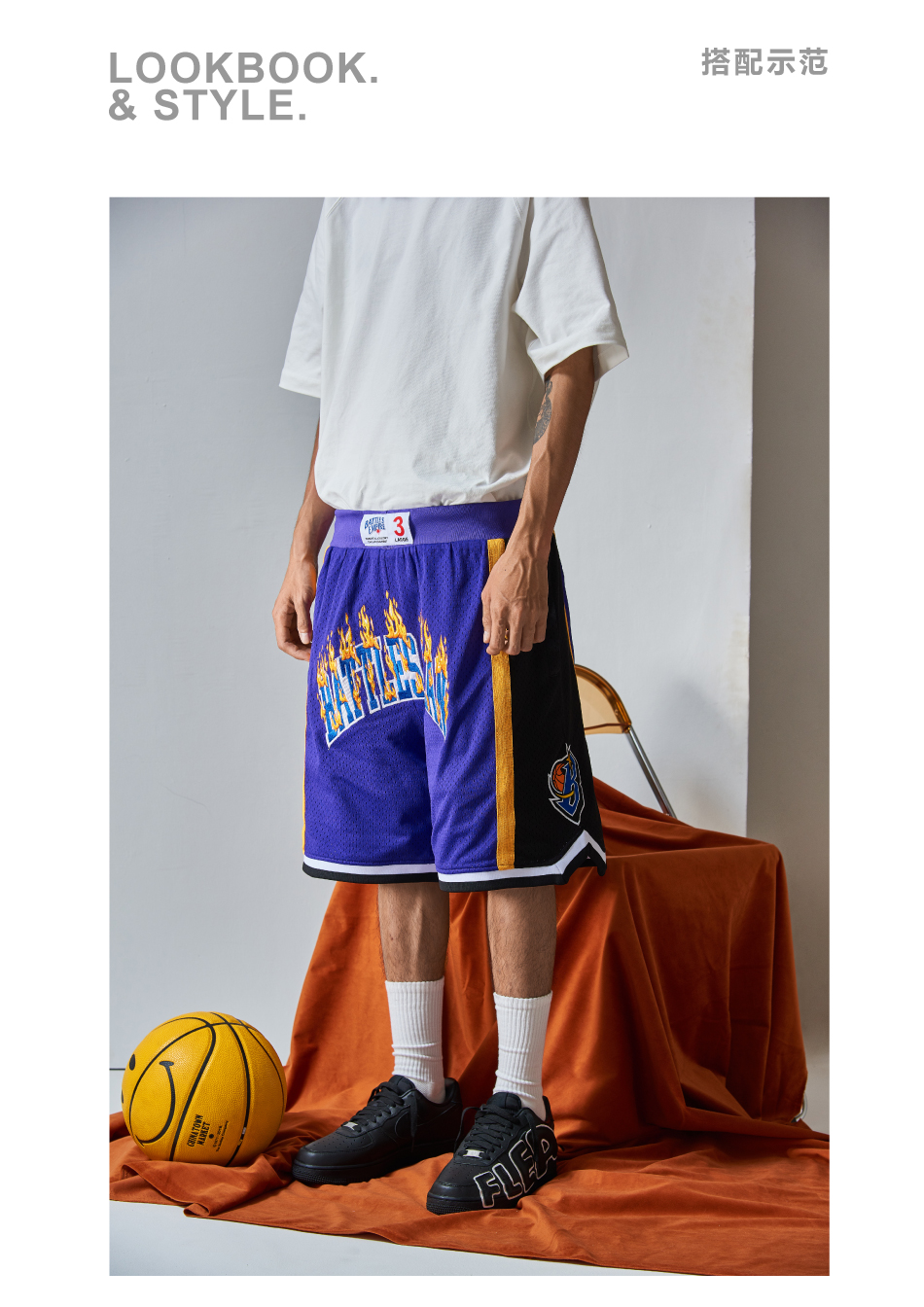 Battles Flame Embroidery Contrasting Basketball Shorts