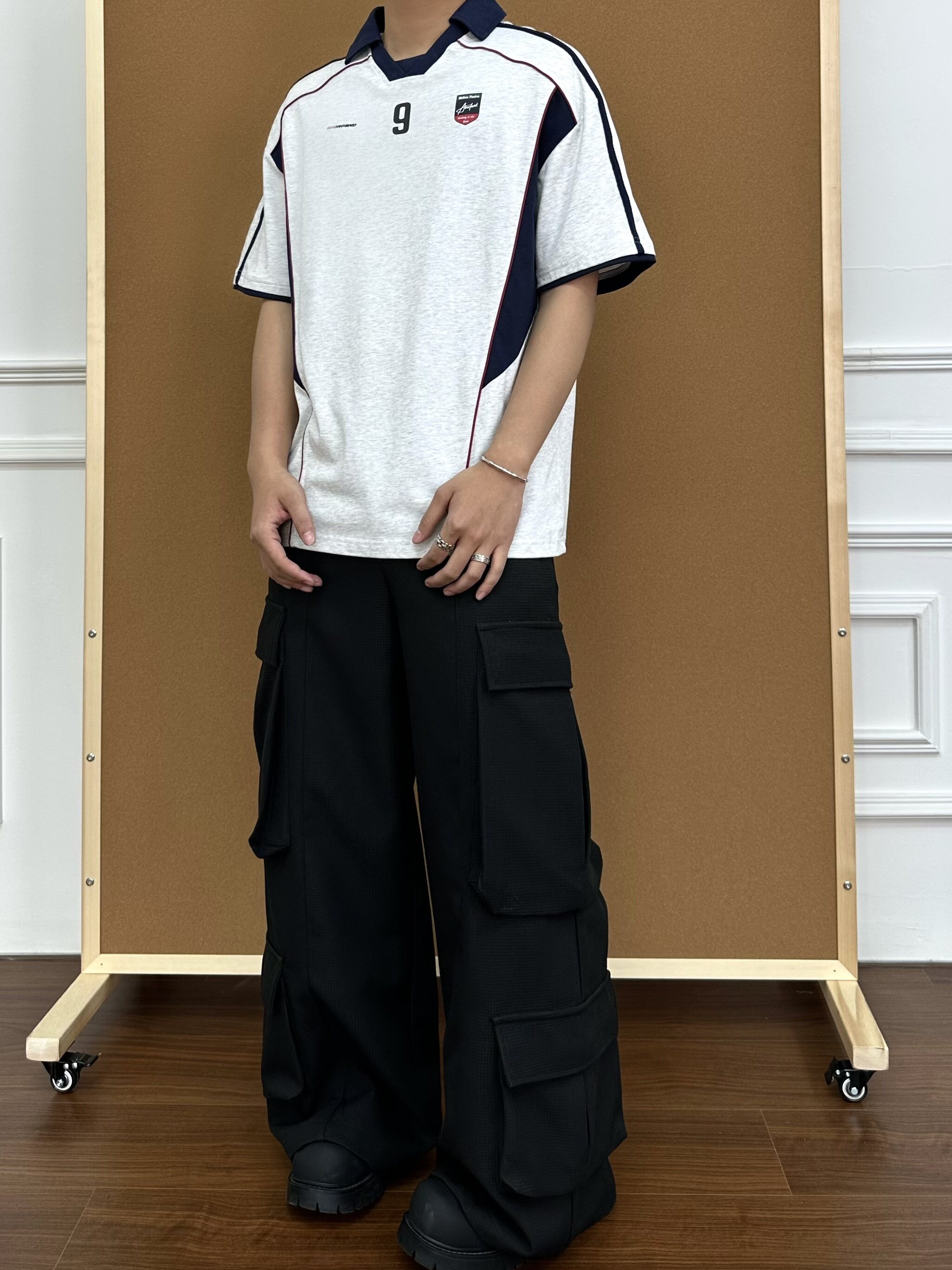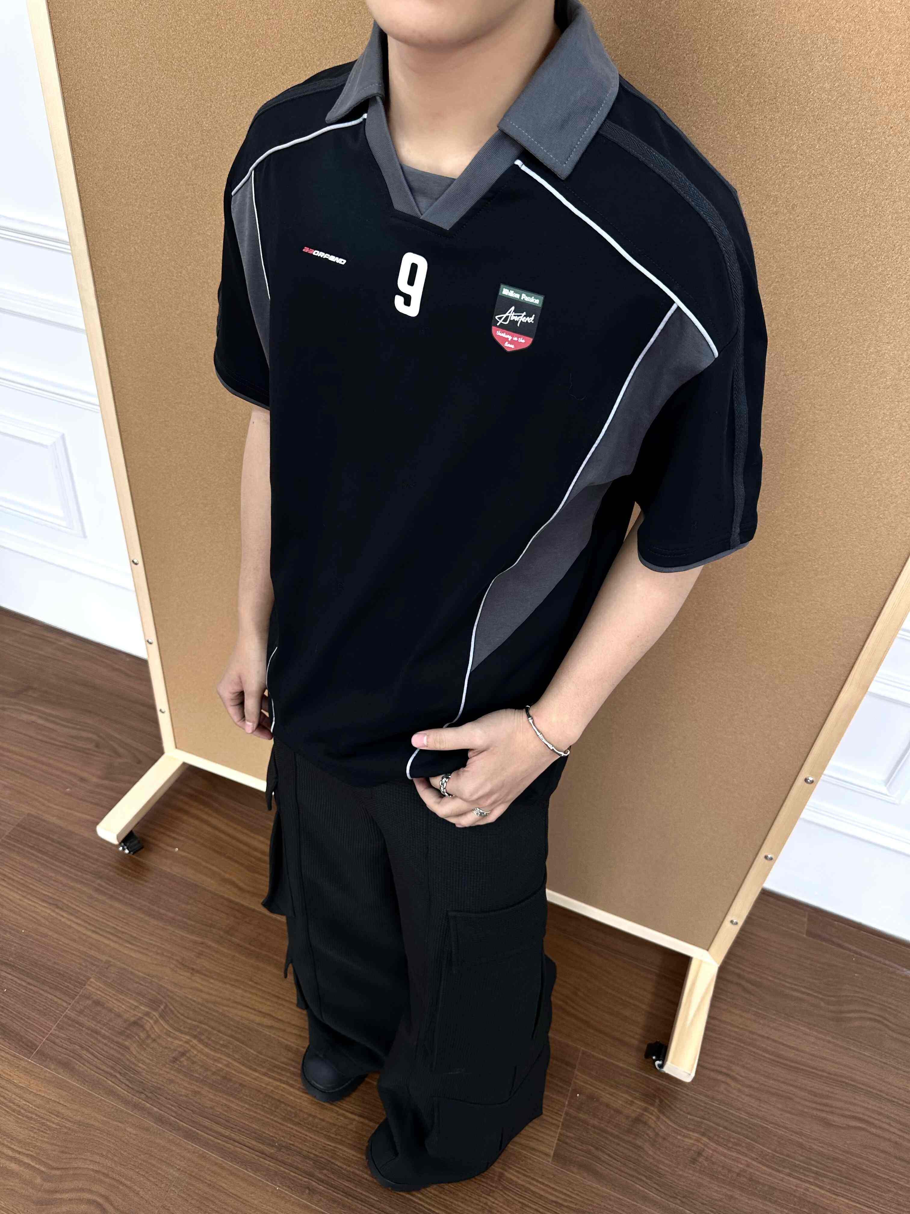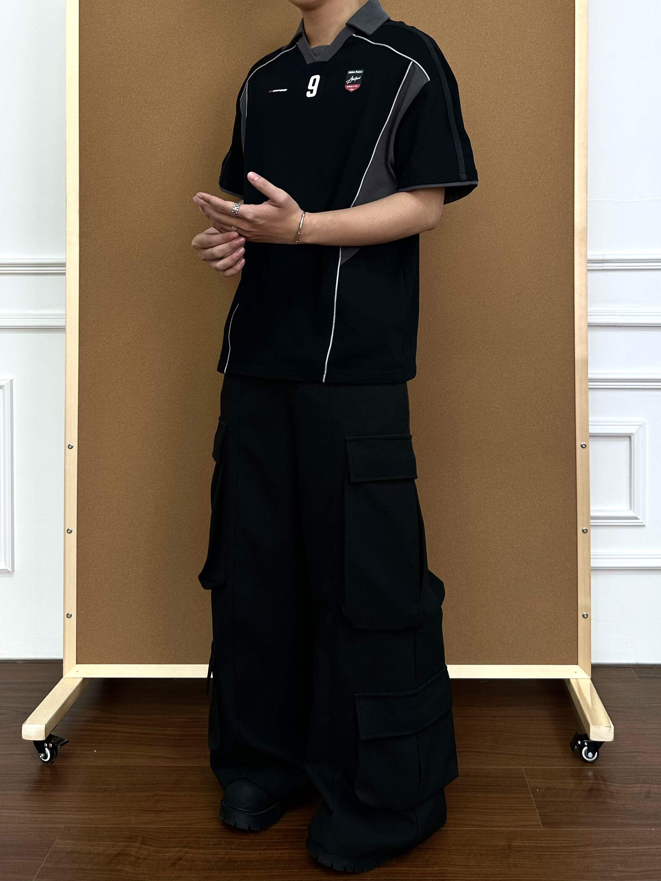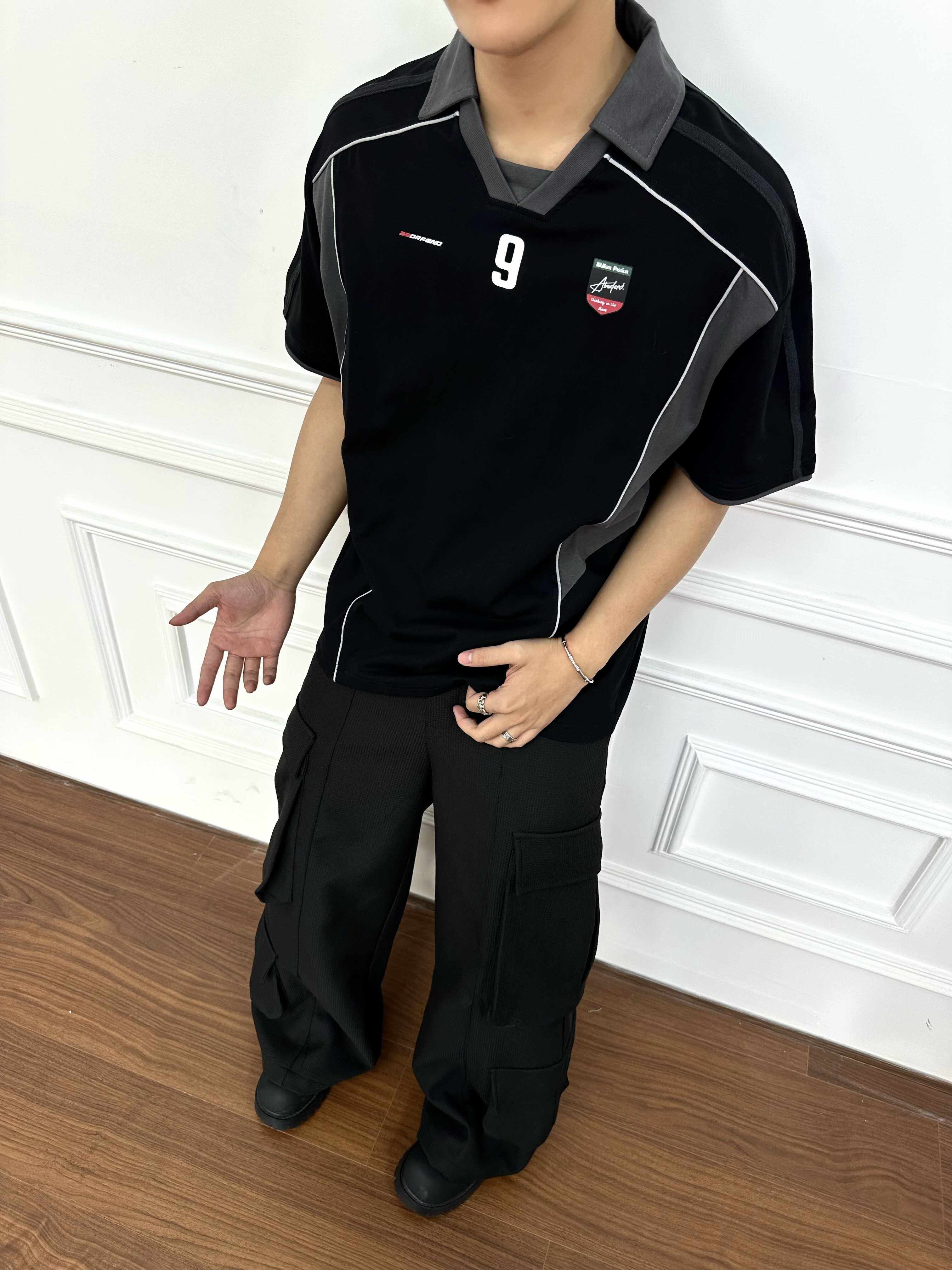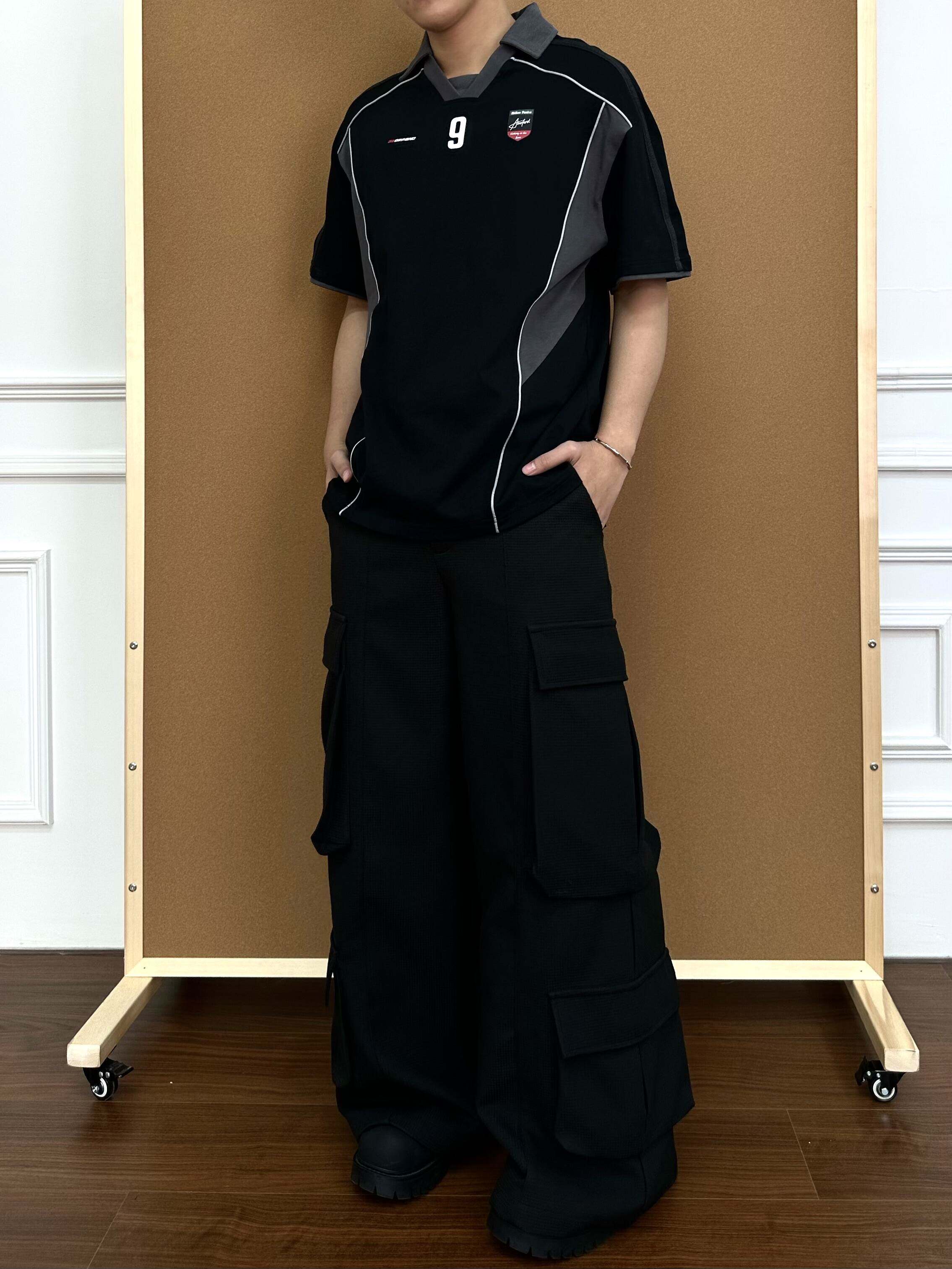BeOurRule Splicing Letter Print Loose Polo Collar Tee