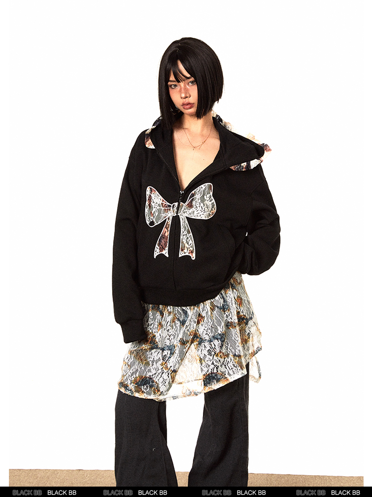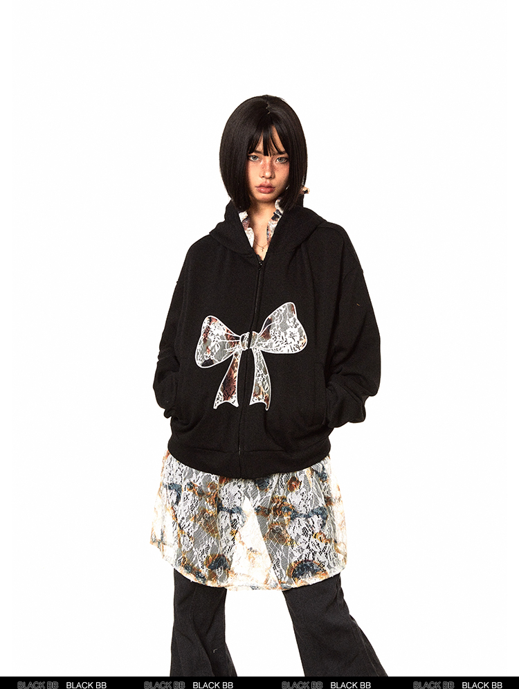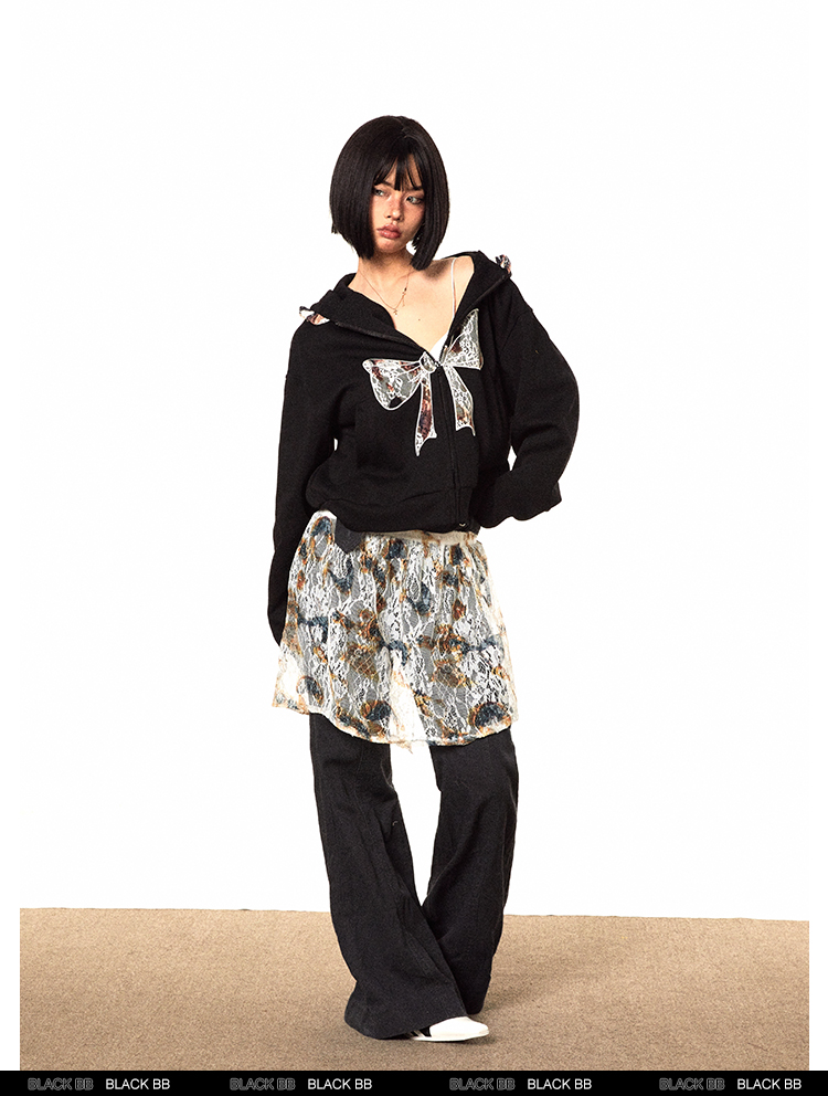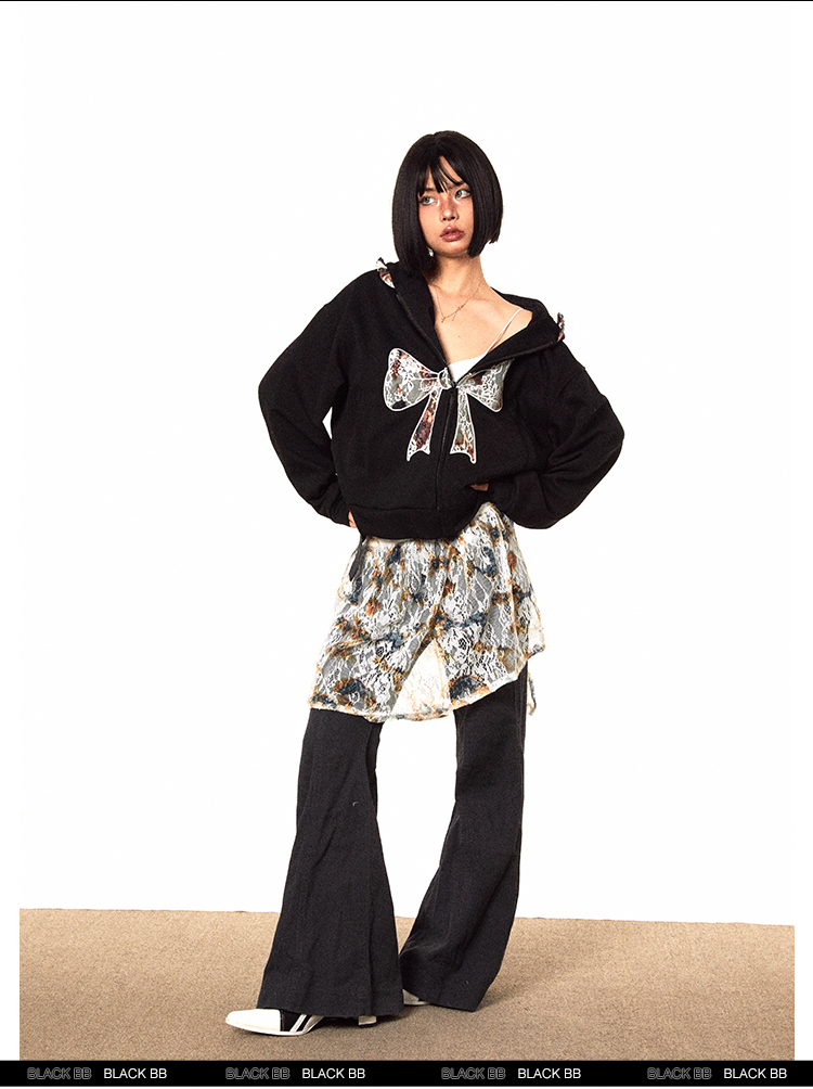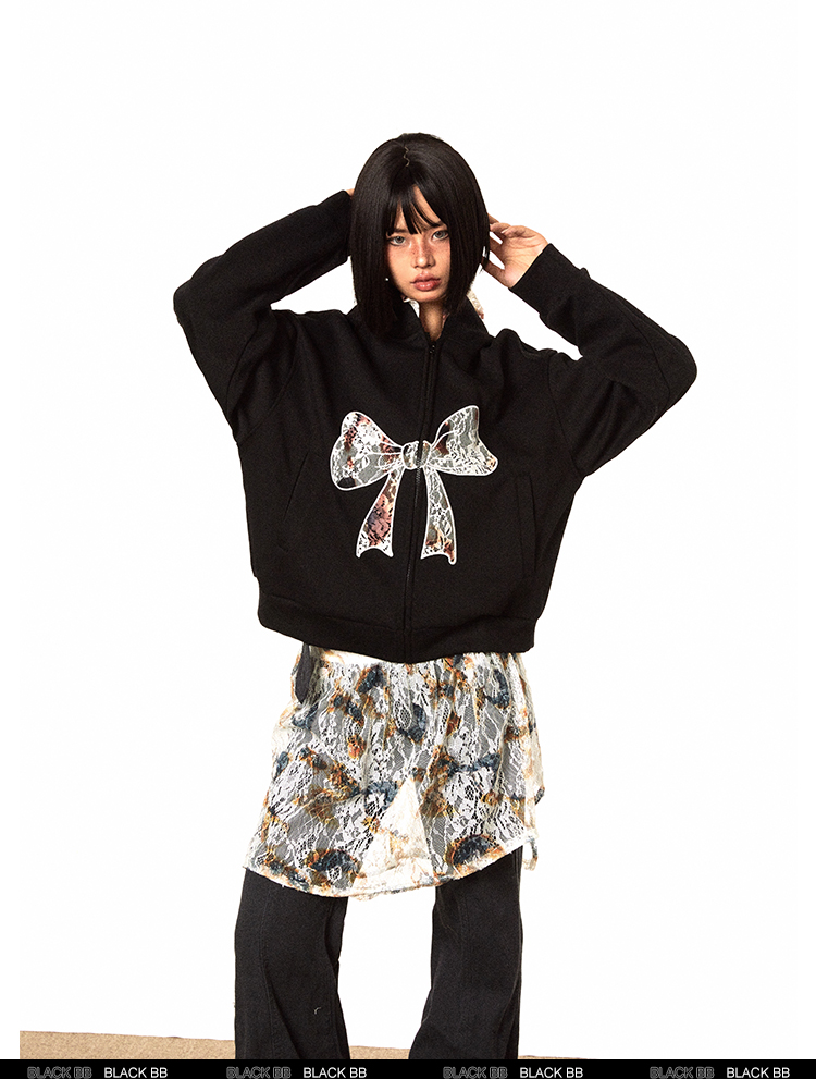 سترة BLACKBB من الدانتيل ذات سحاب ومطرزة ومزودة بفيونكة