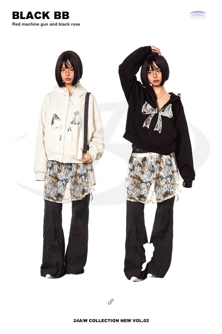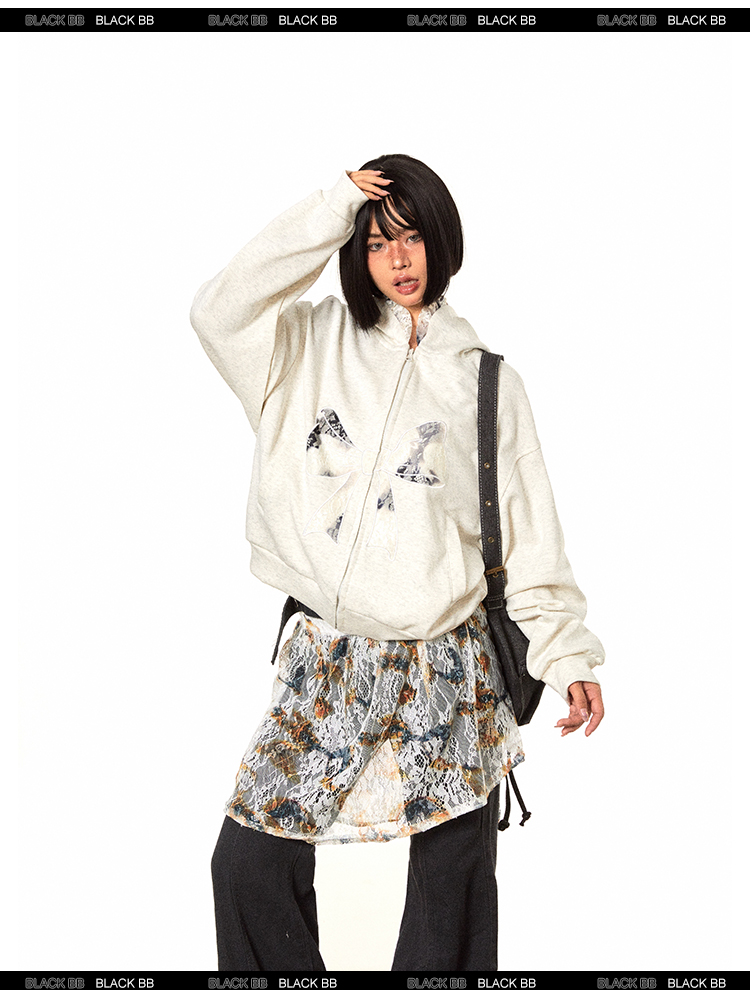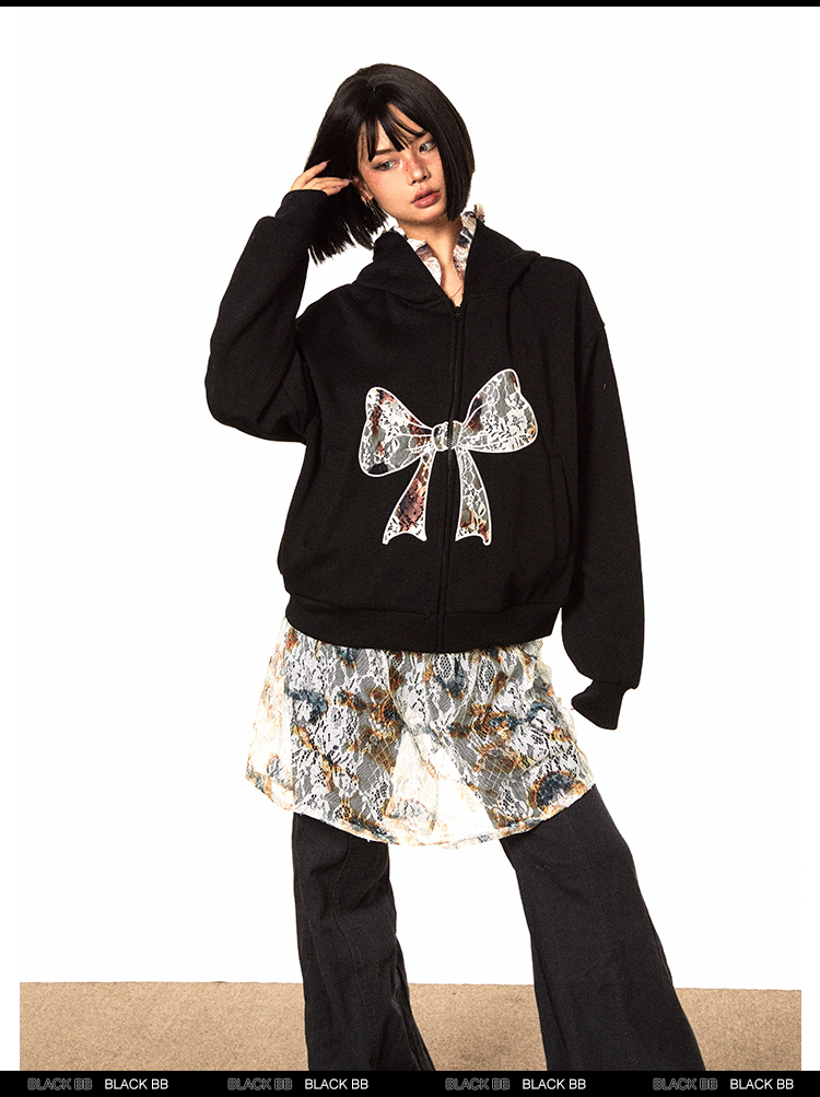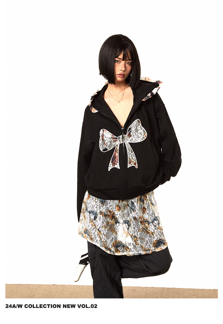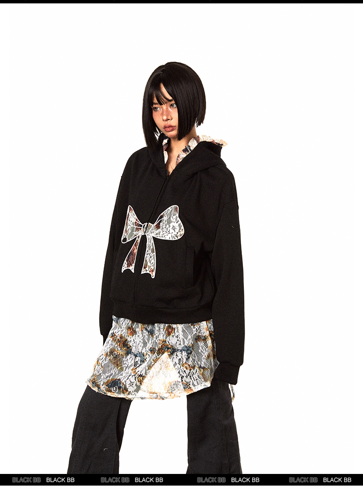 سترة BLACKBB من الدانتيل ذات سحاب ومطرزة ومزودة بفيونكة