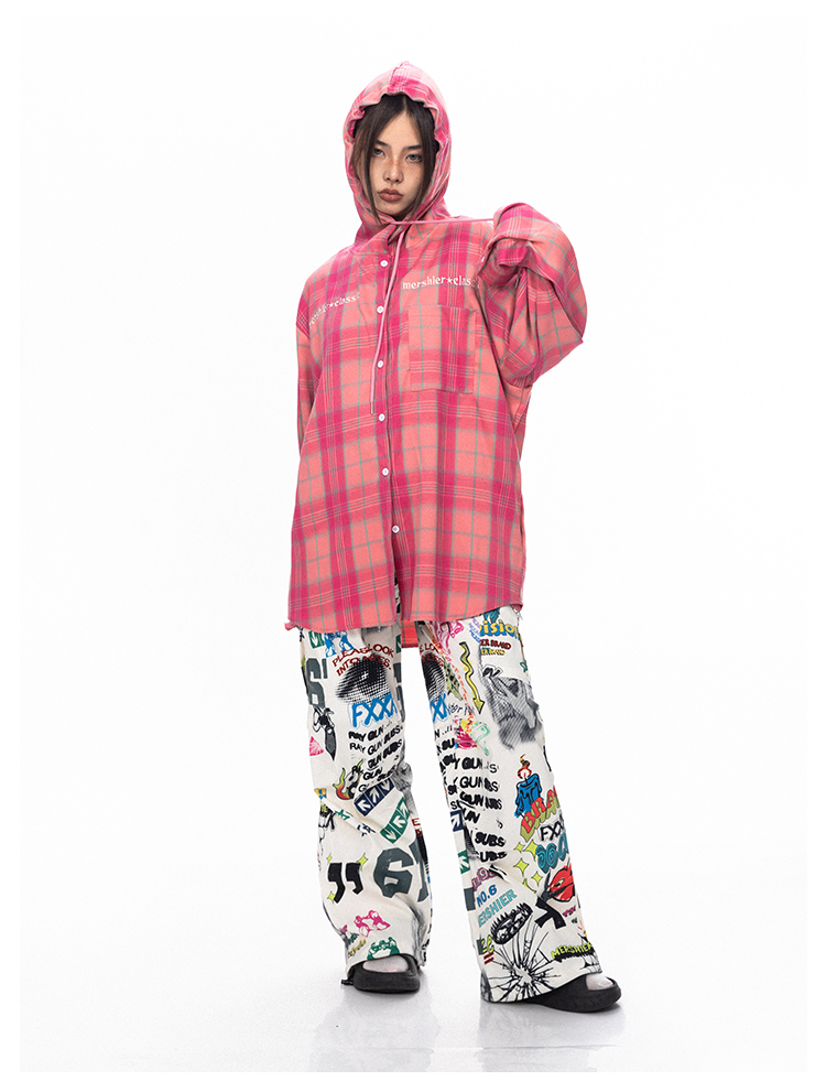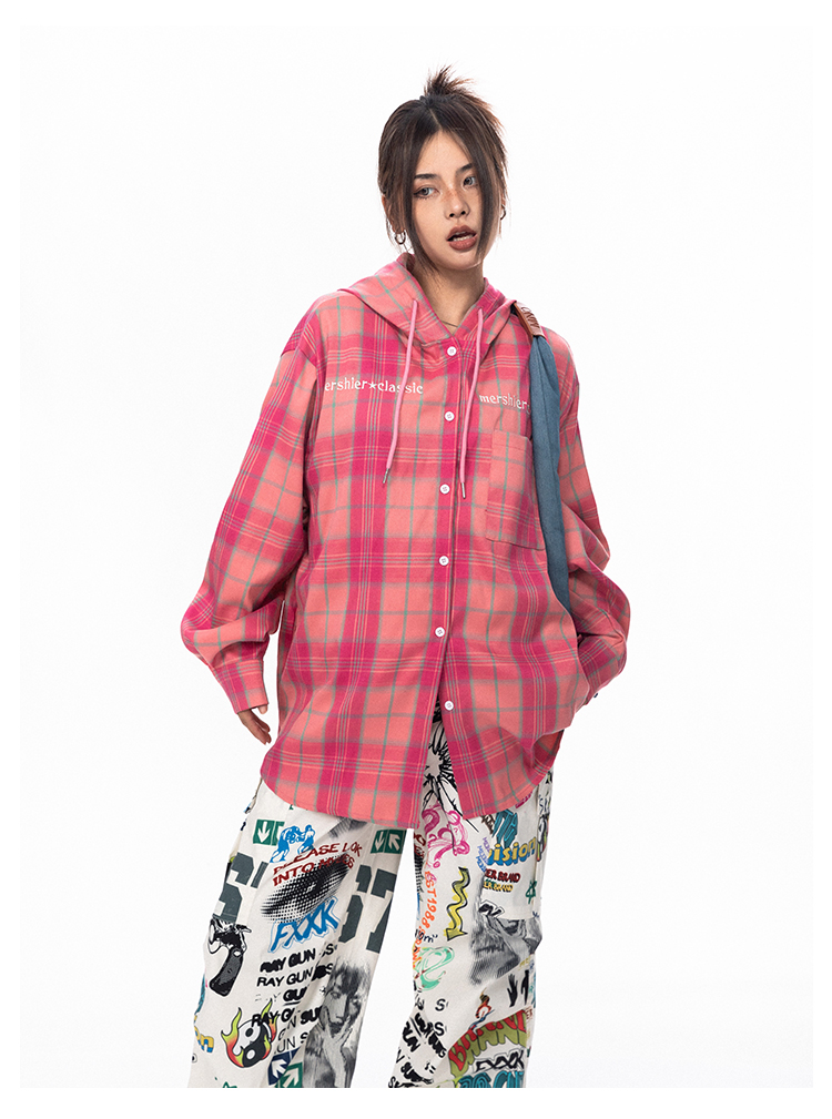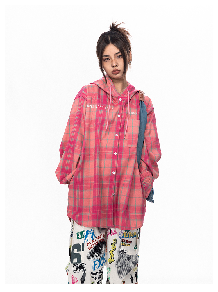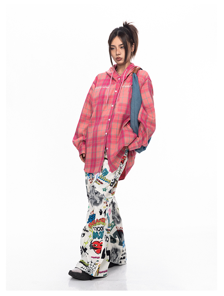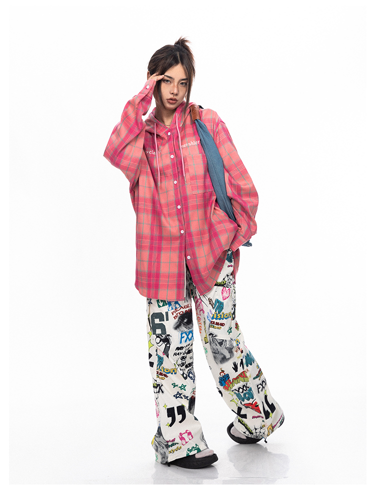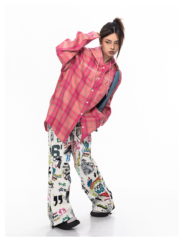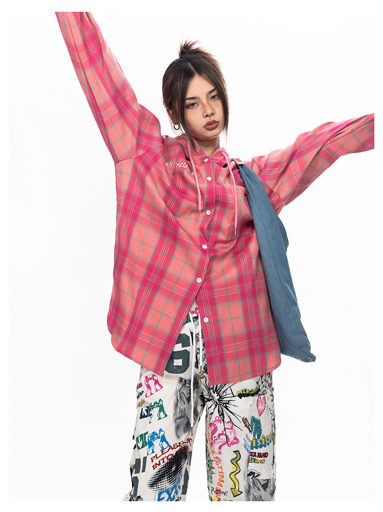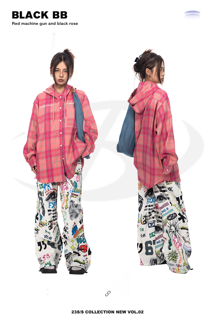BLACKBB قميص زوجين فضفاضة مطرزة الوردي الصدر