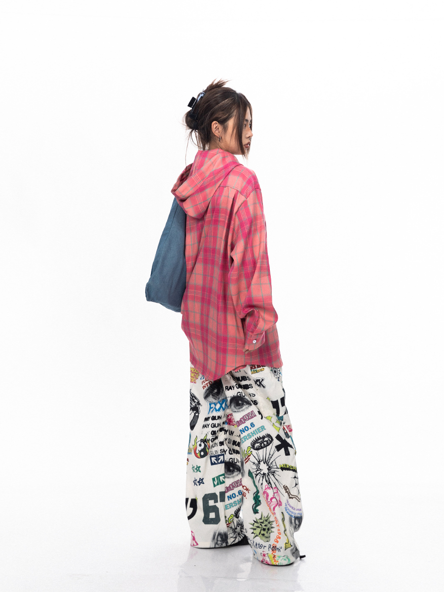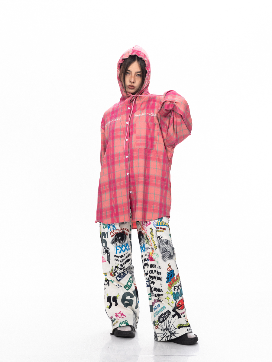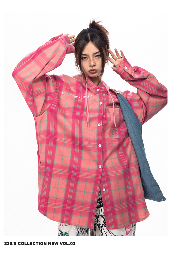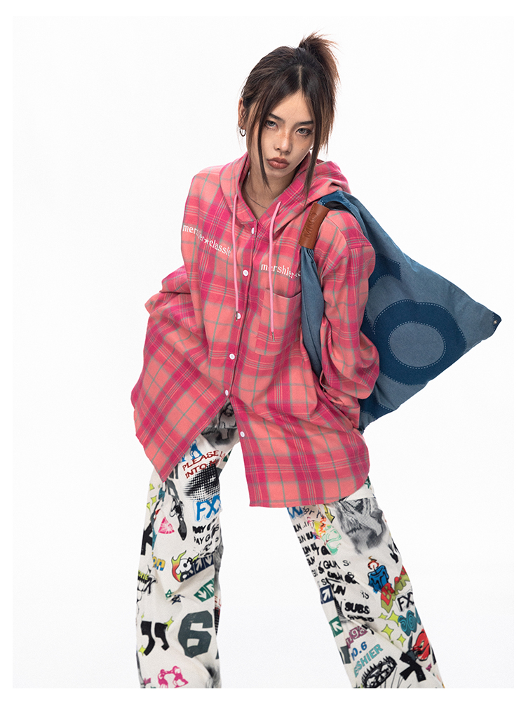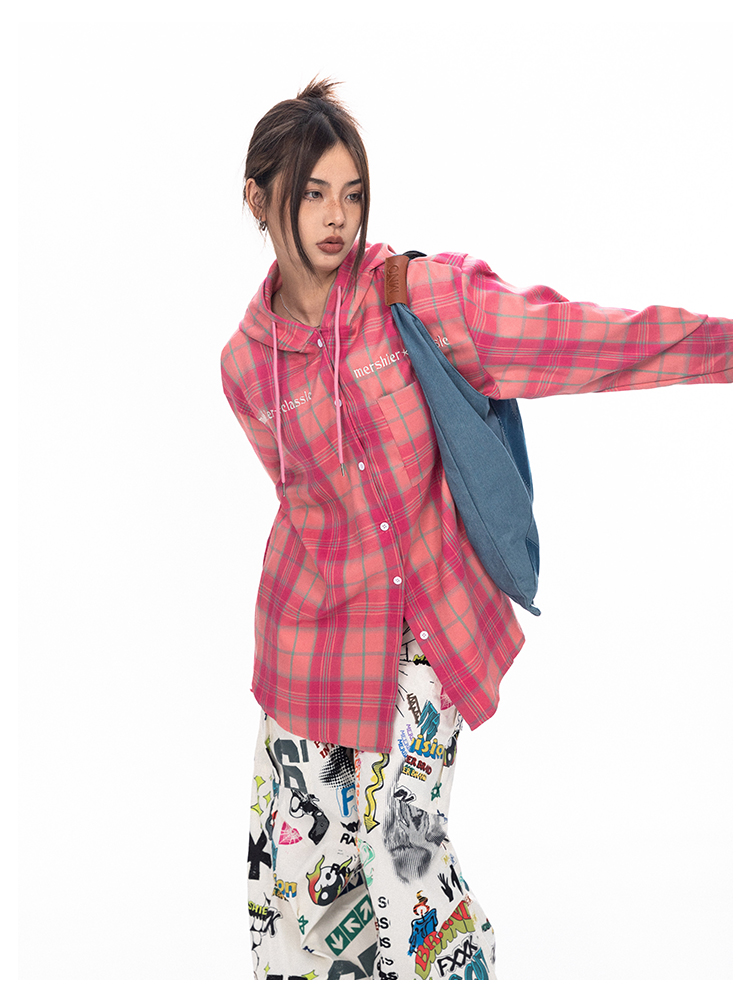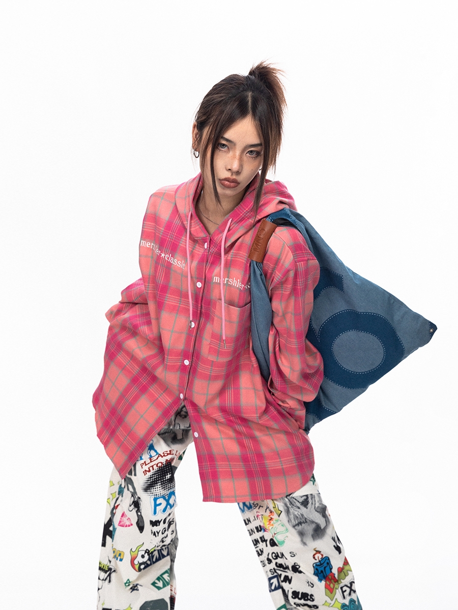 BLACKBB قميص زوجين فضفاضة مطرزة الوردي الصدر