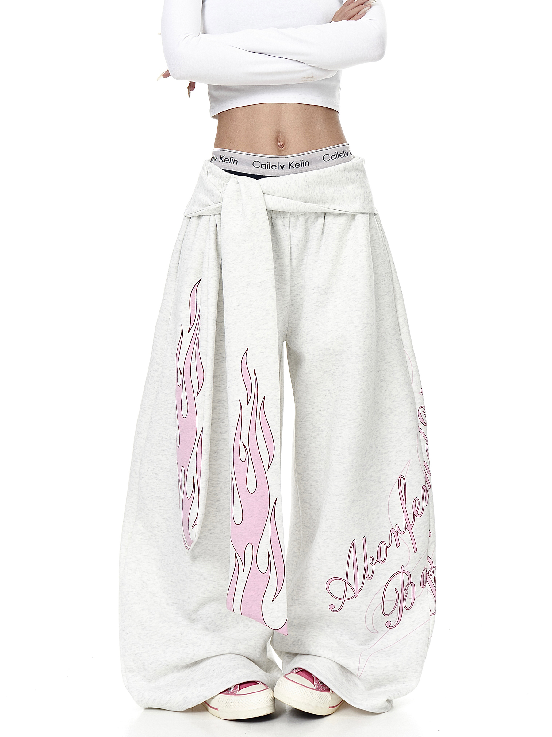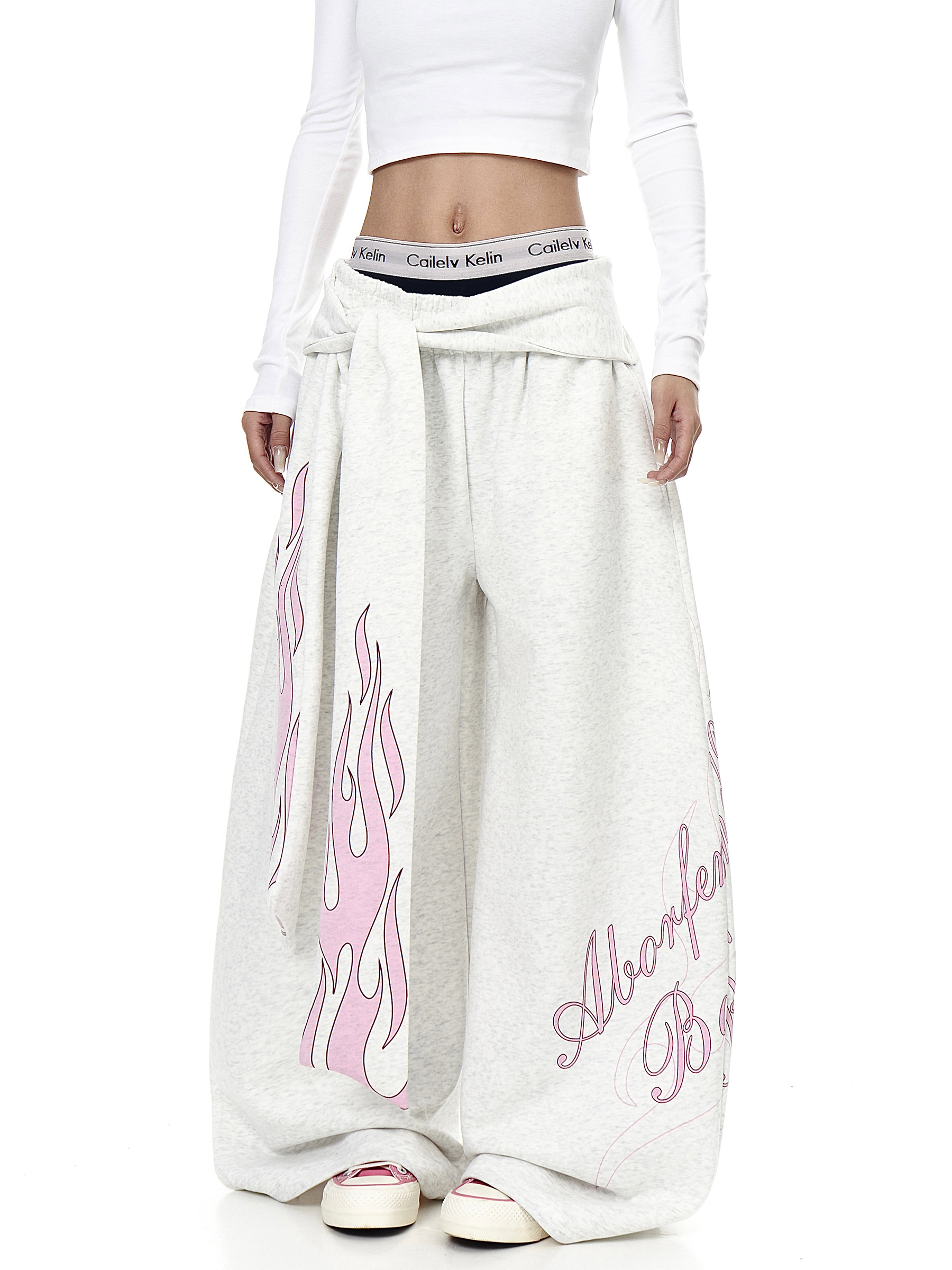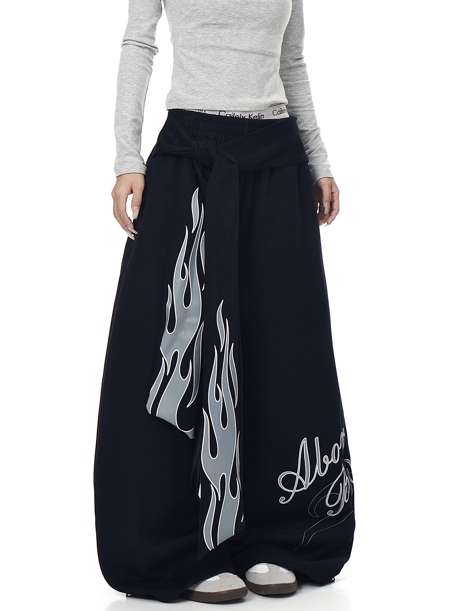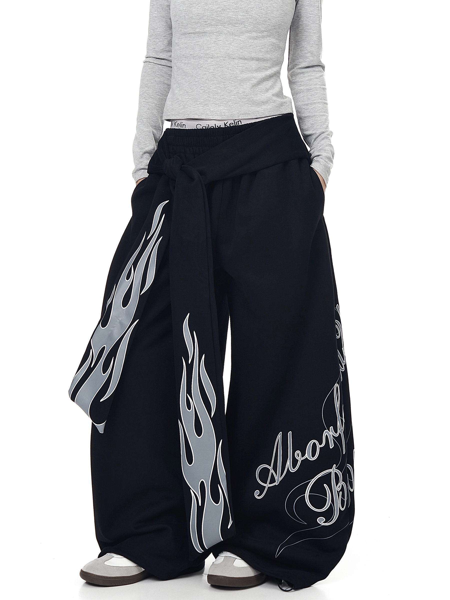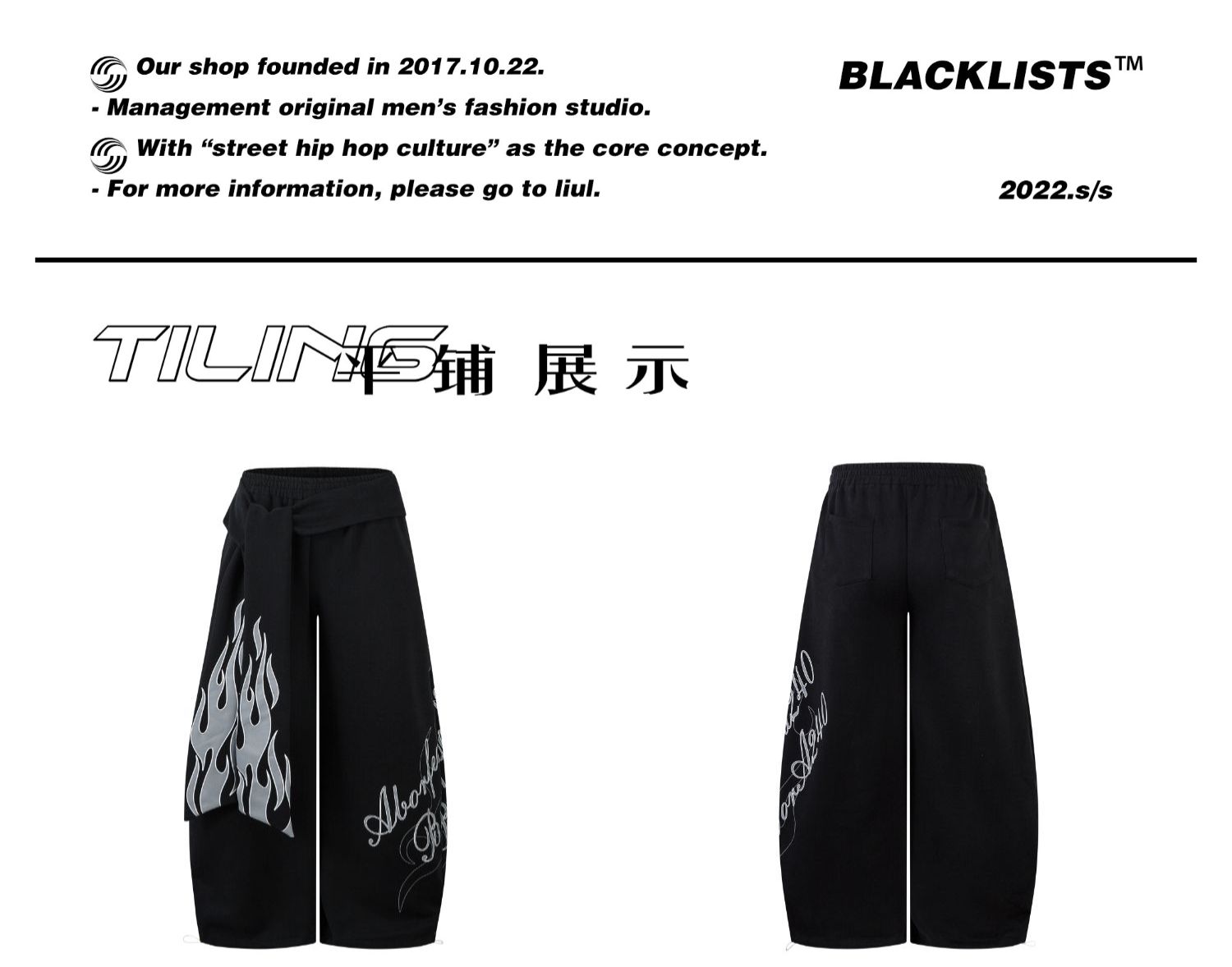BLACKLISTS Flame Letter Print Strap Scimitar Sweatpants