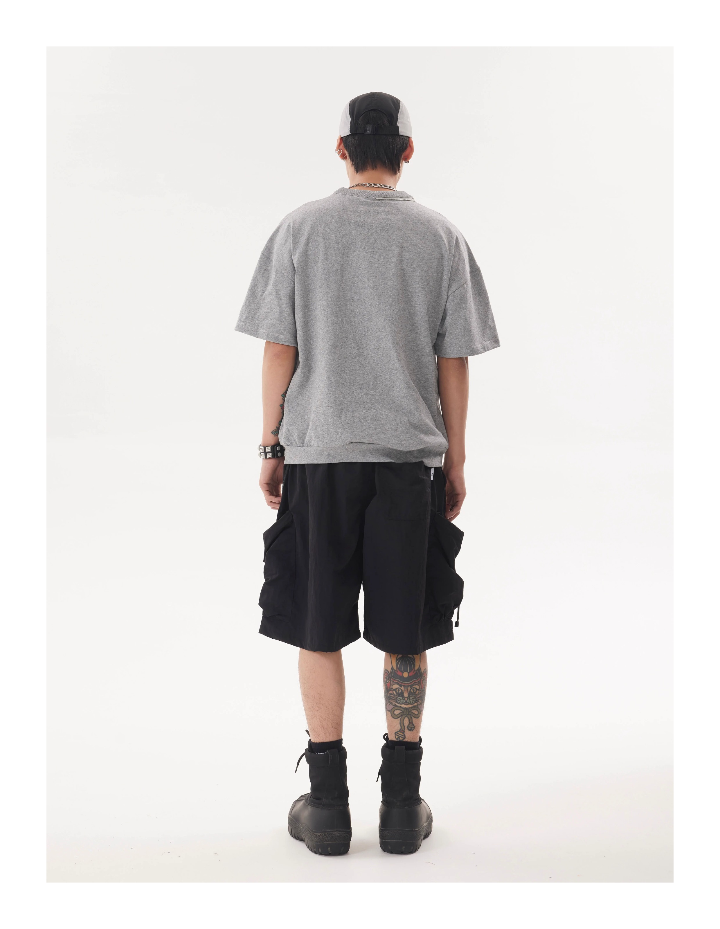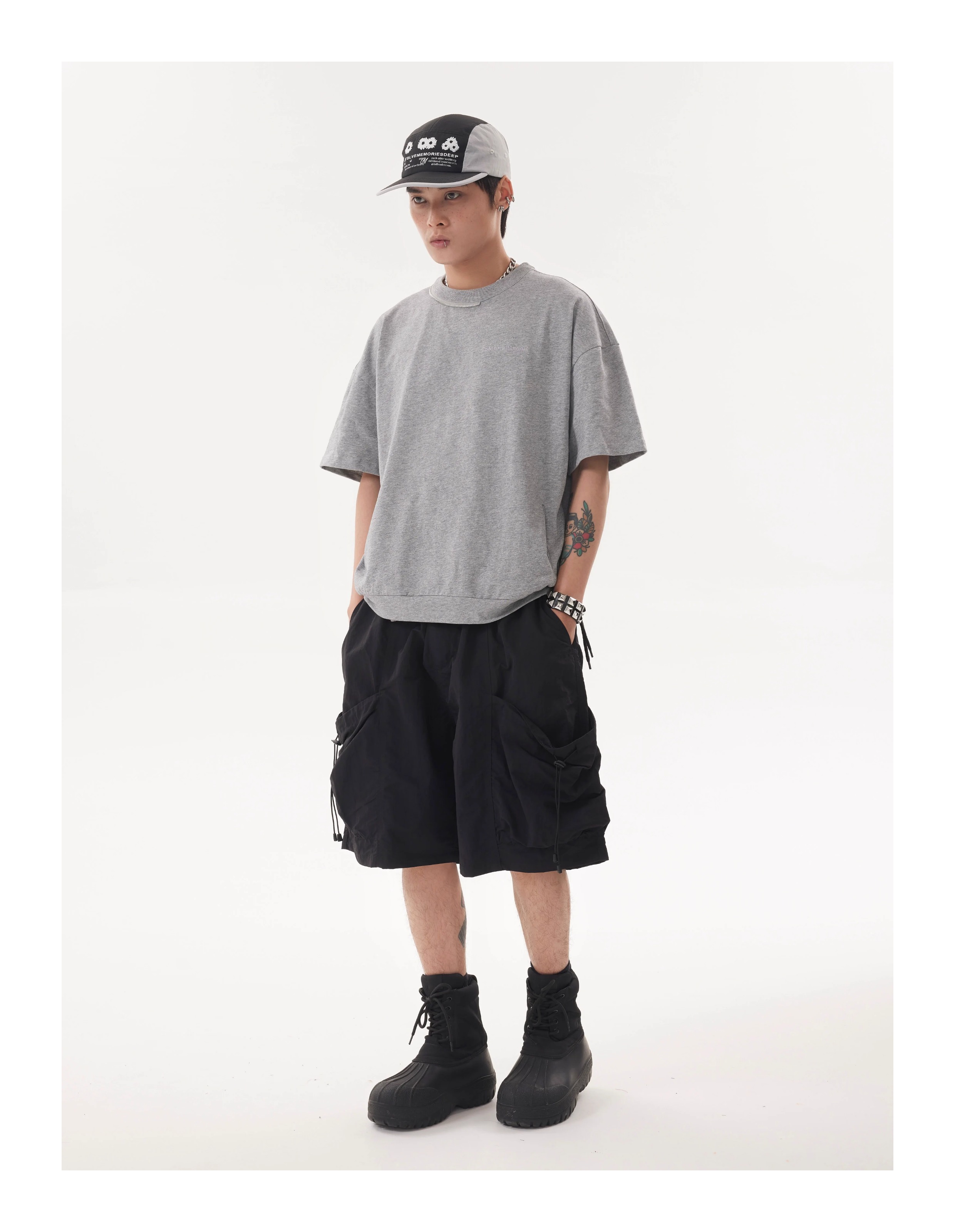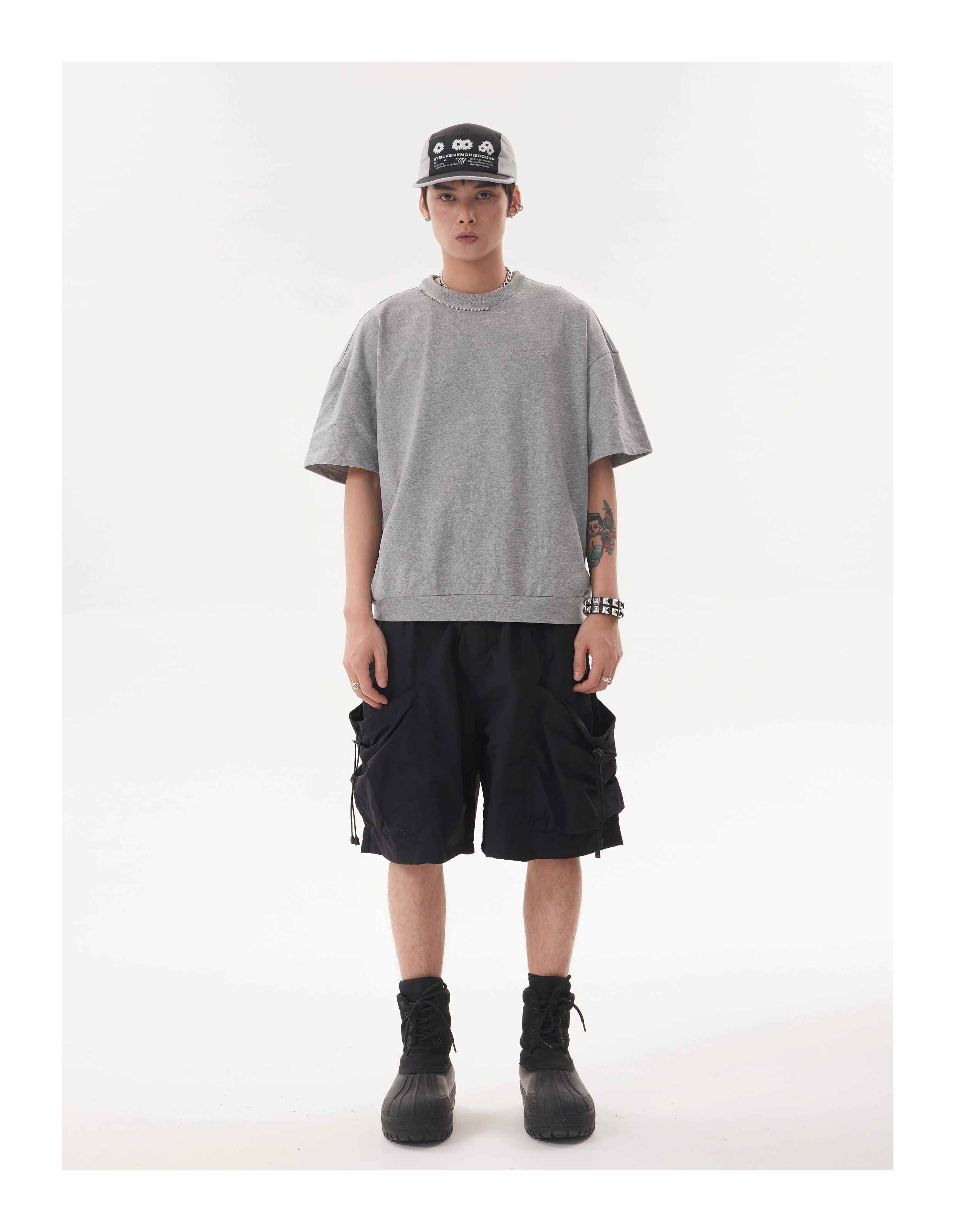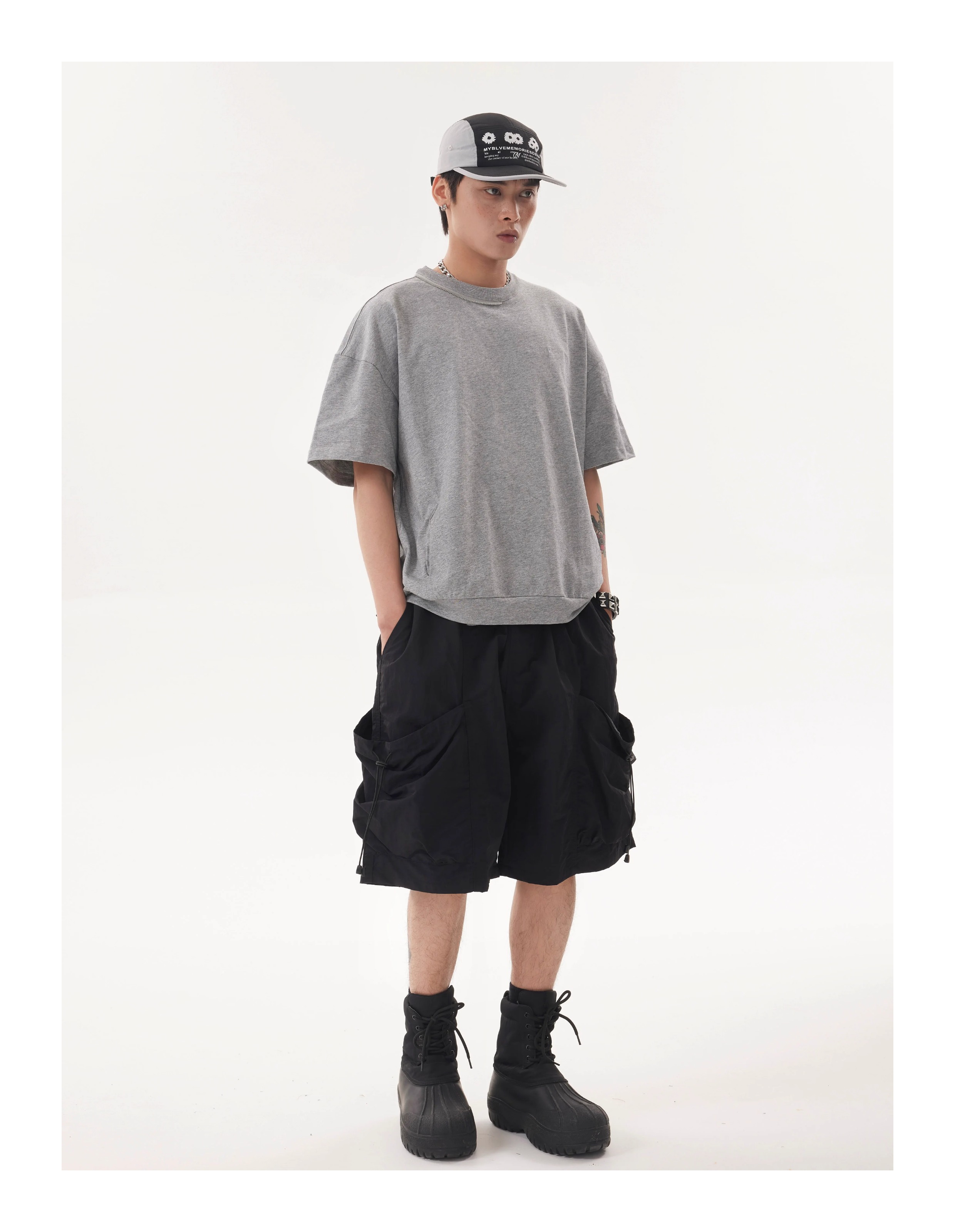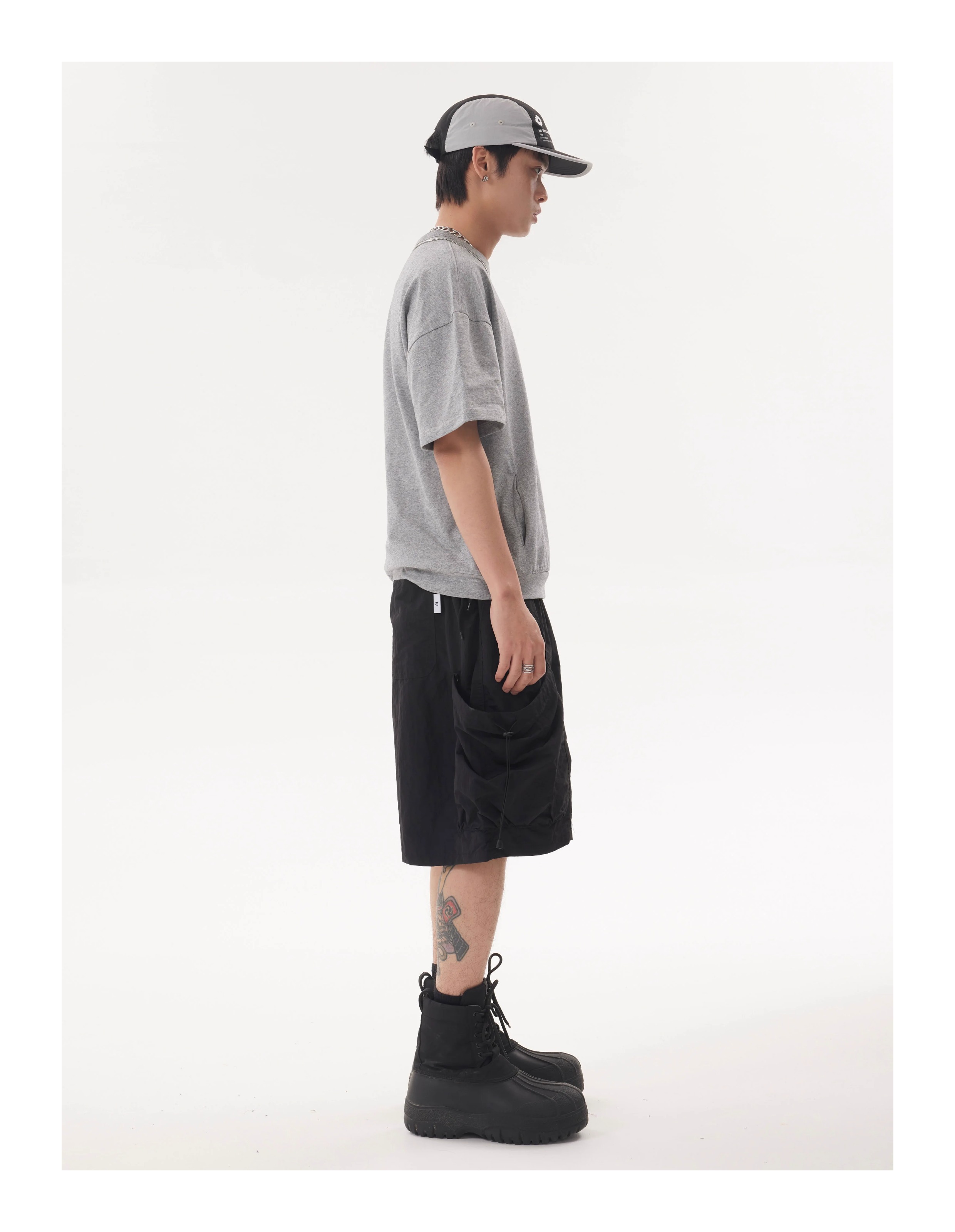 BTSG* شورت قصير مصنوع من نسيج مقاوم للماء ومتجعد
