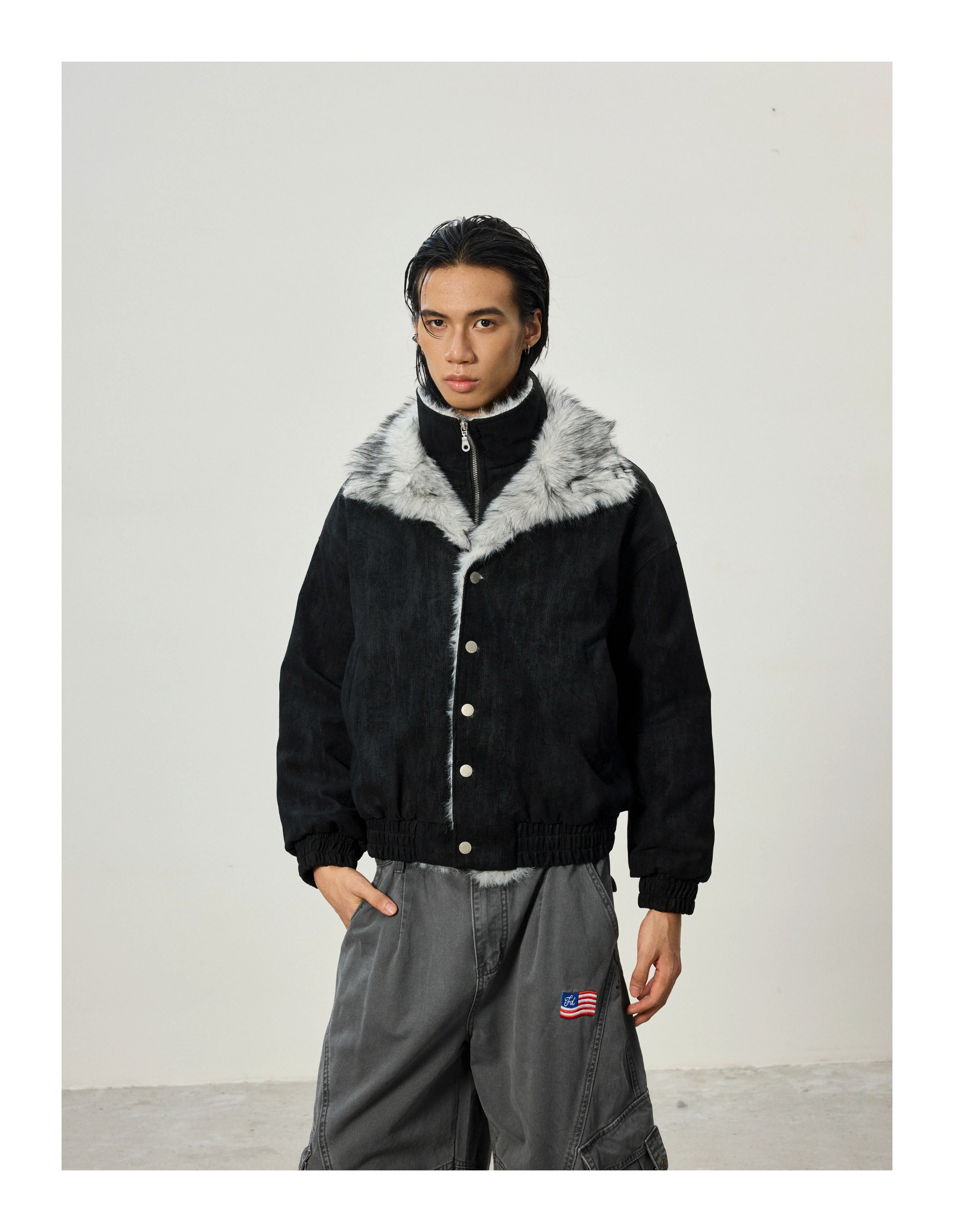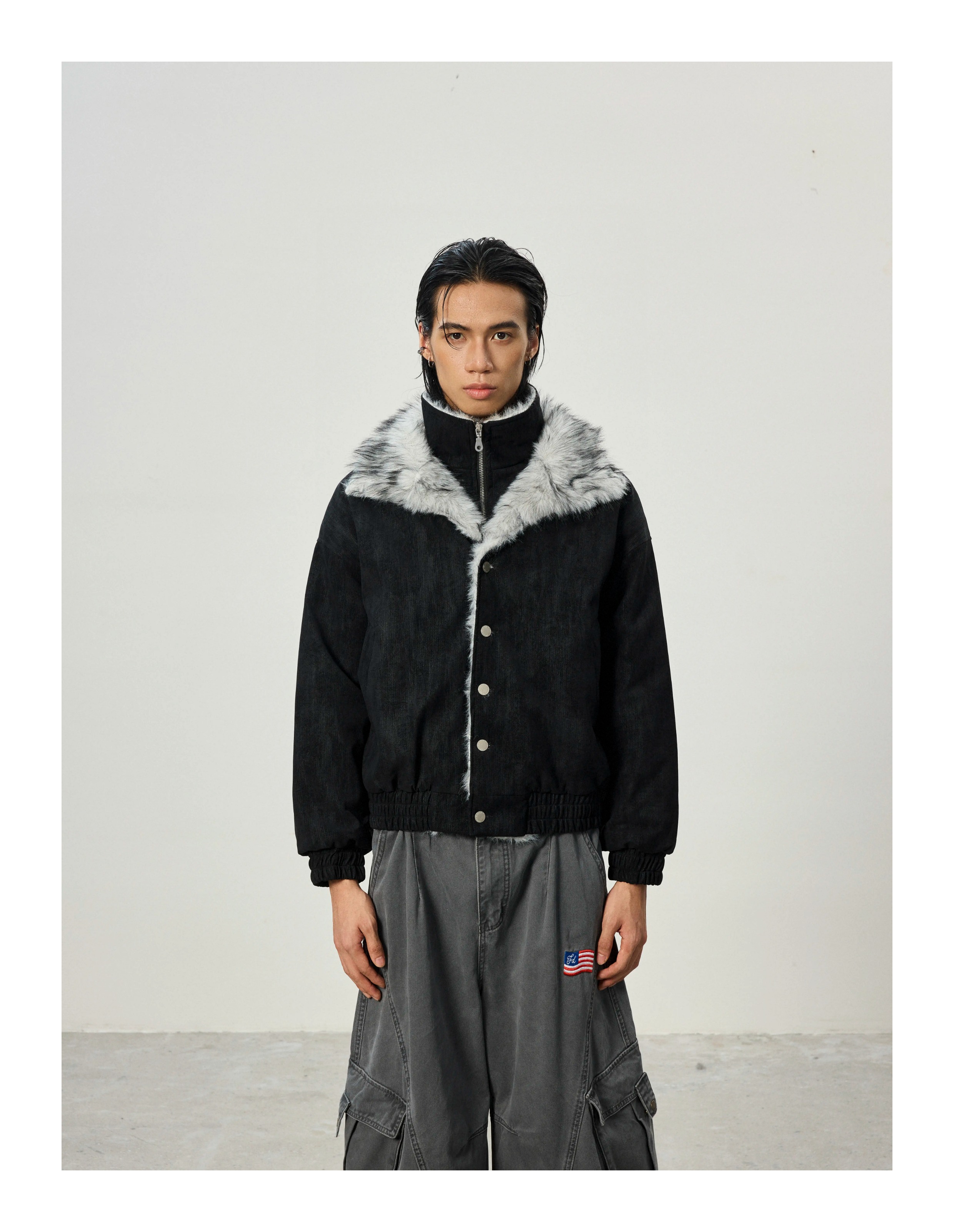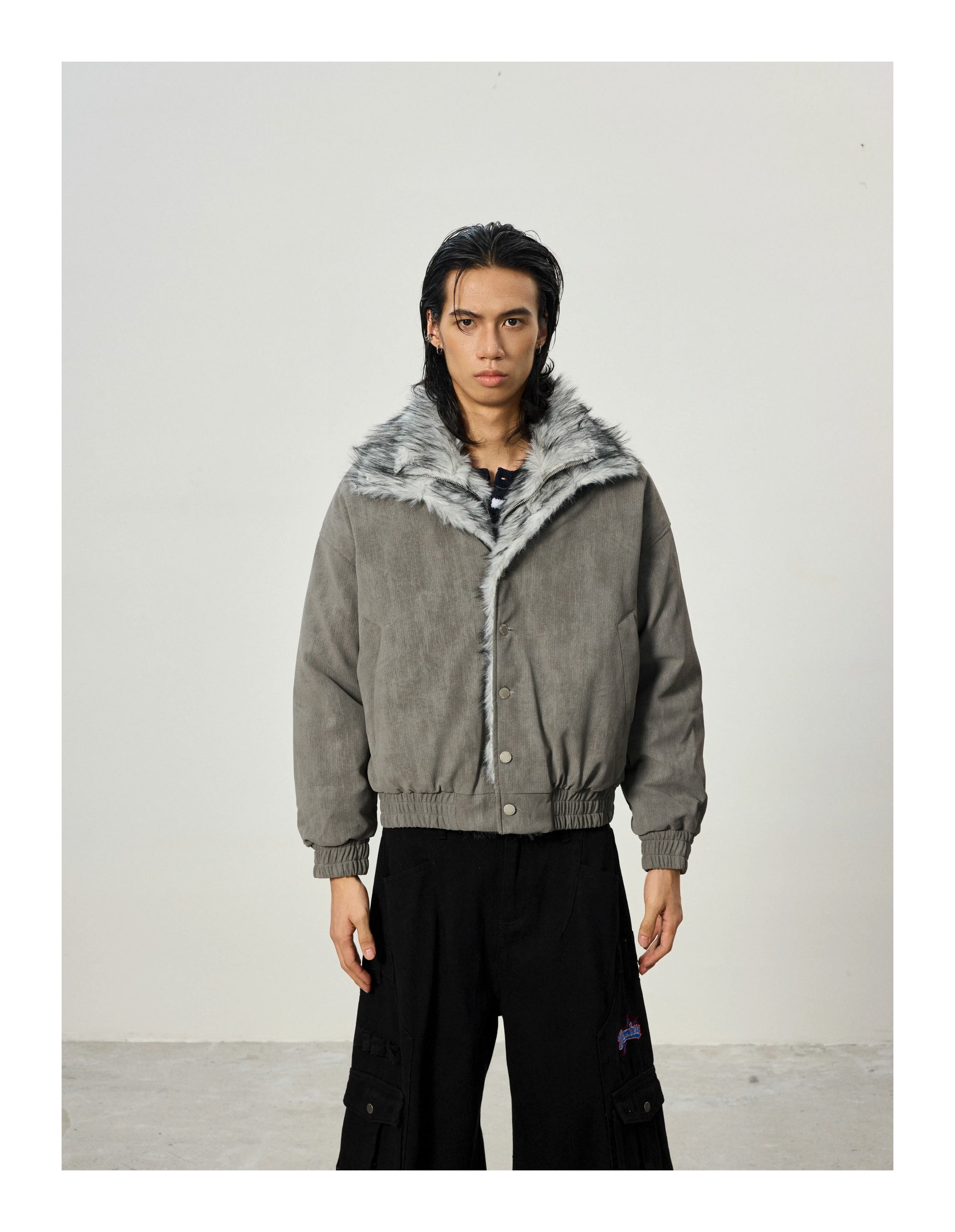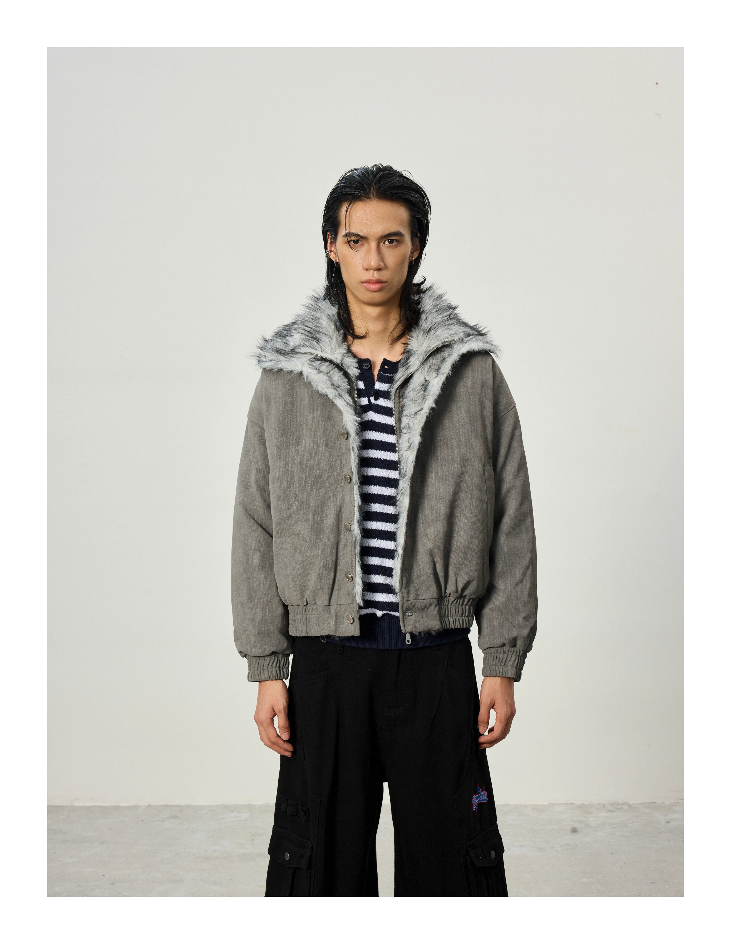 BTSG Short and Wide Double-layer Plush Stand-up Collar Pie Overcomes Cotton
