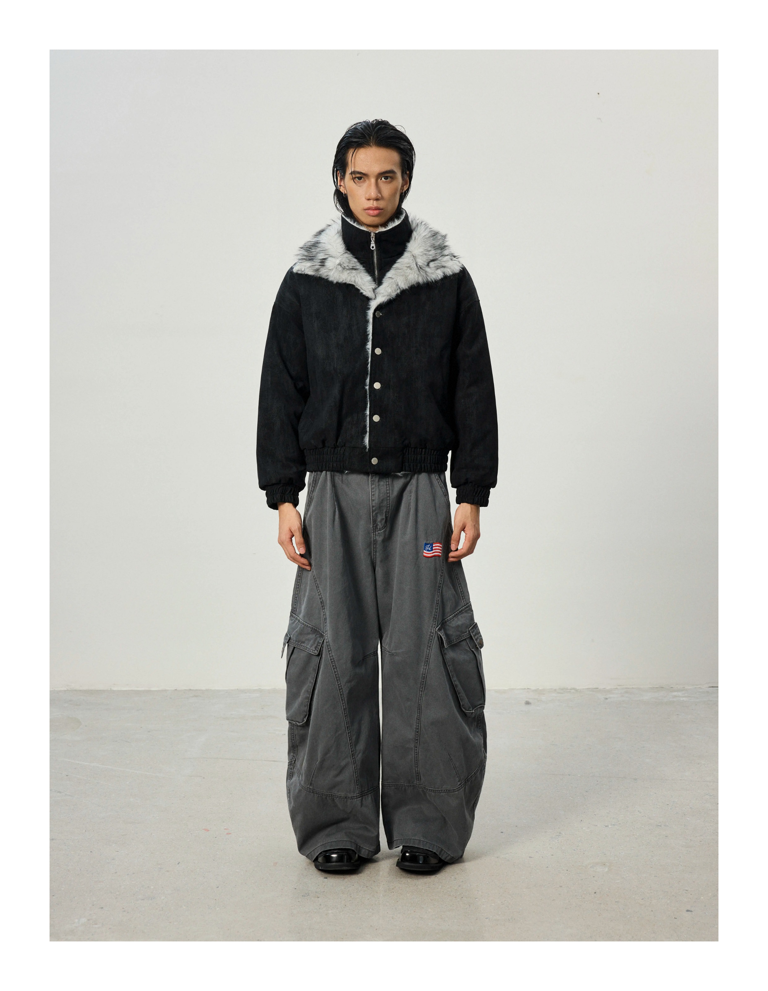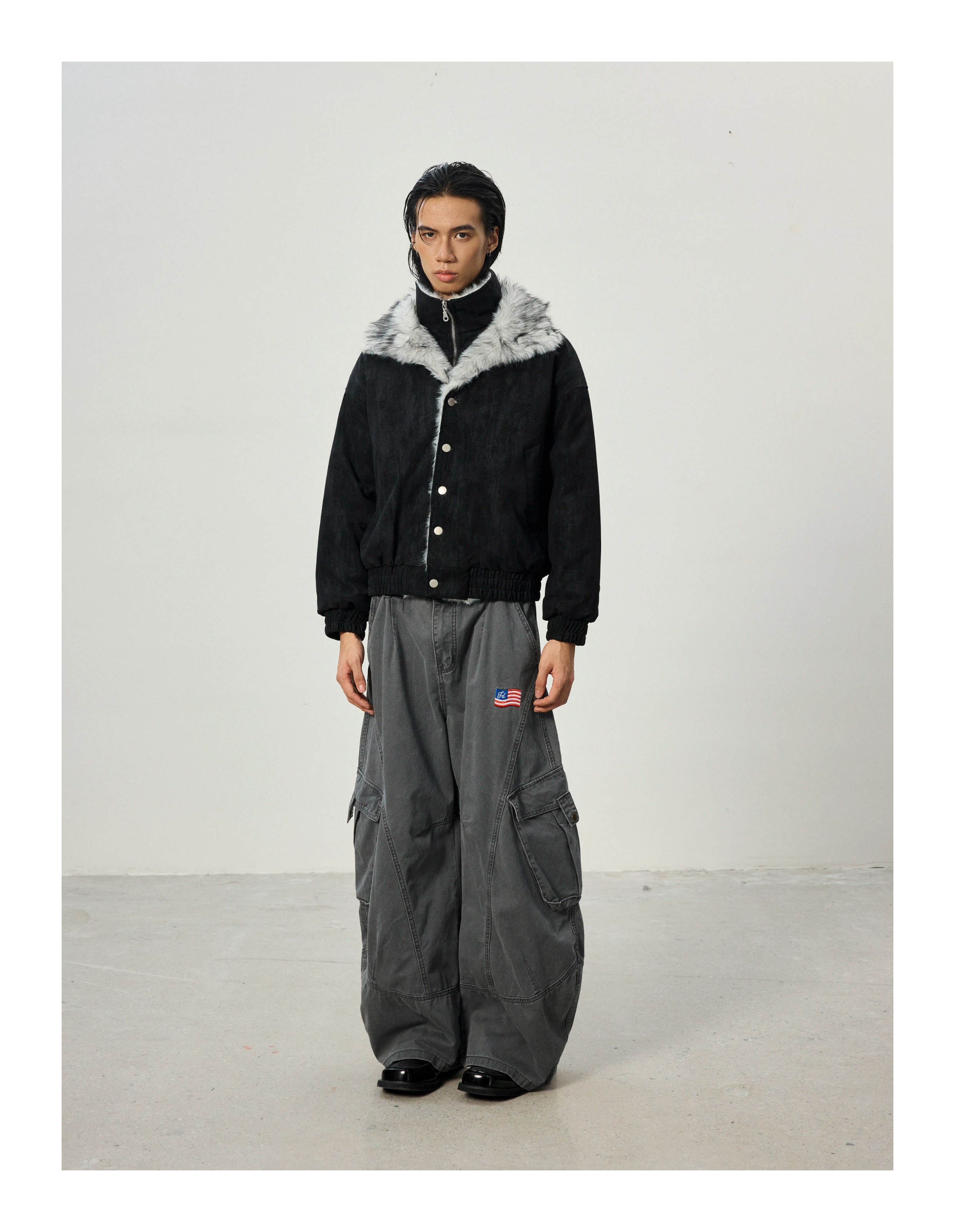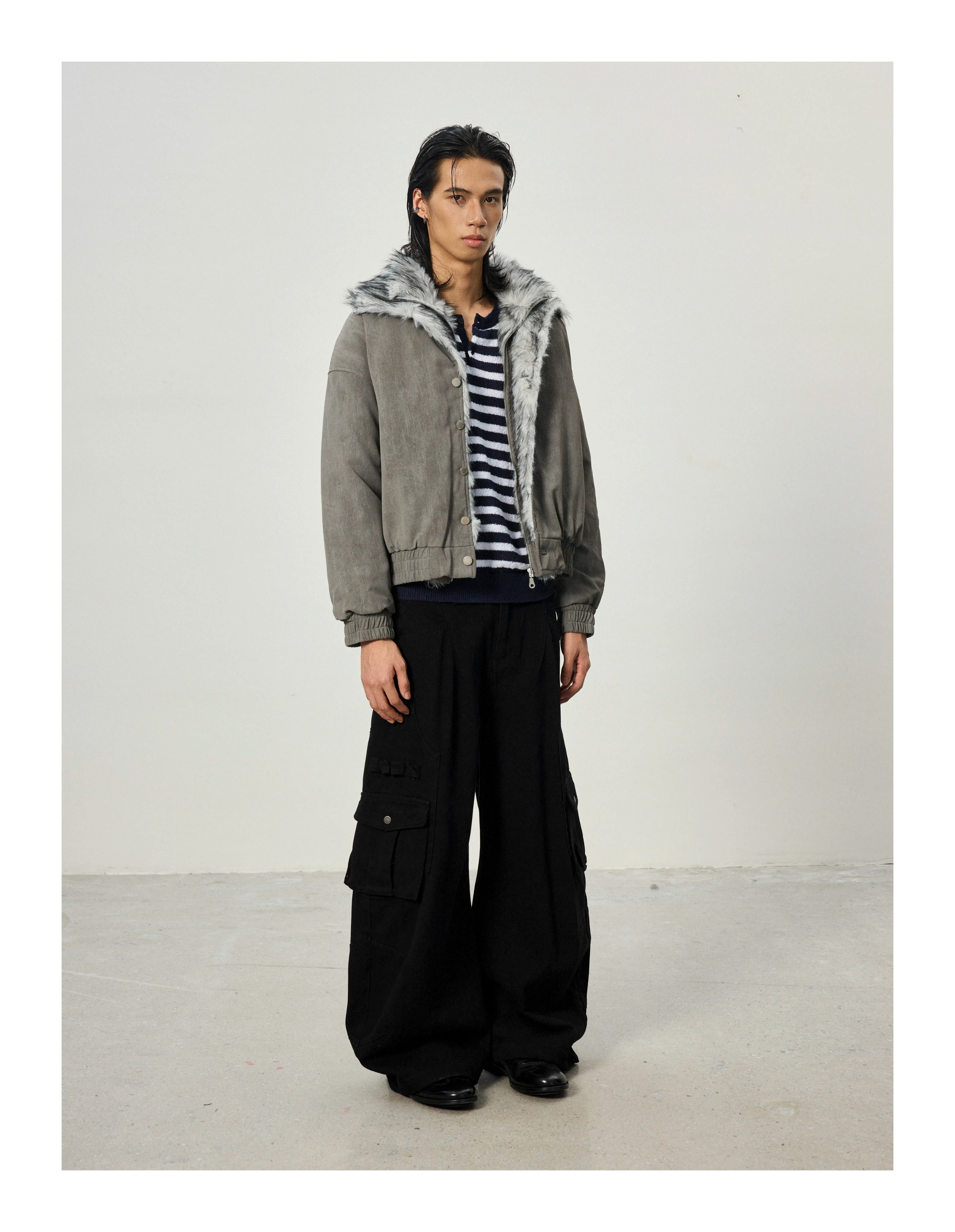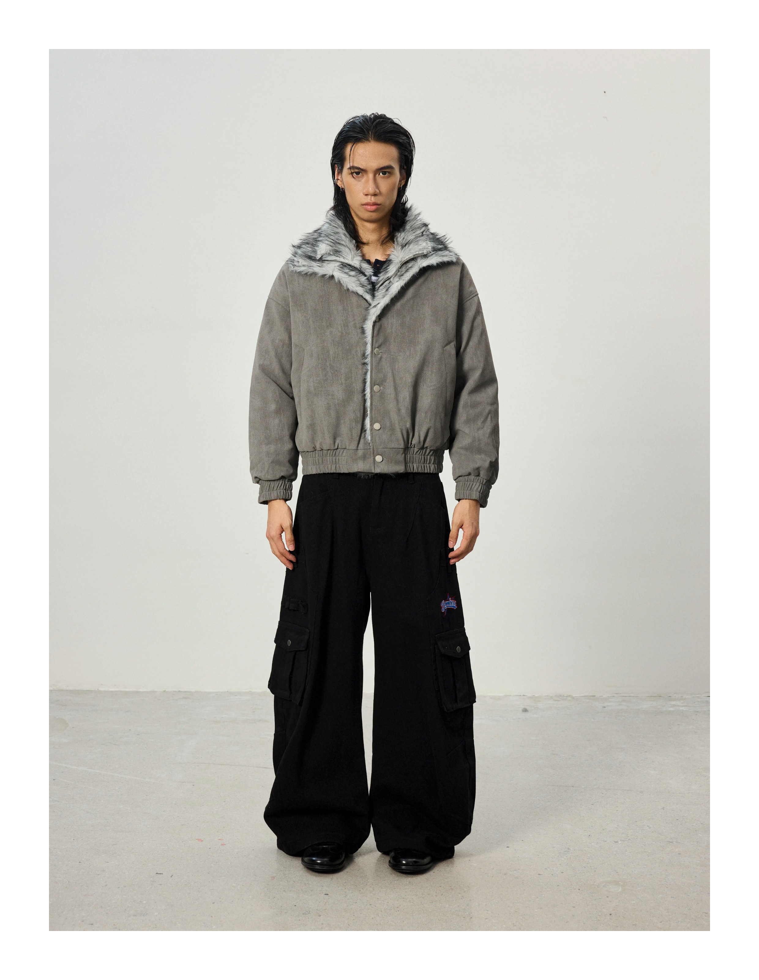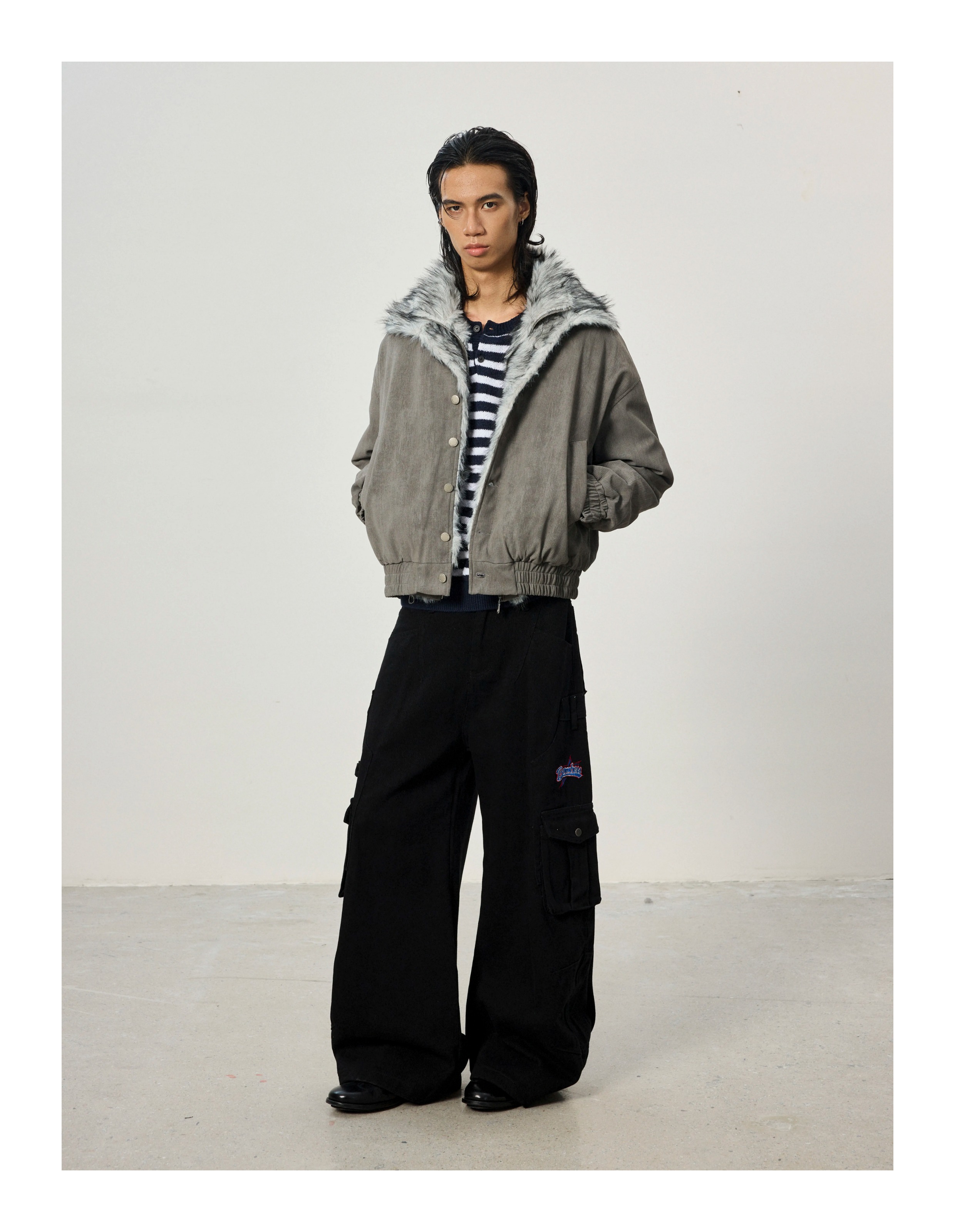 BTSG Short and Wide Double-layer Plush Stand-up Collar Pie Overcomes Cotton