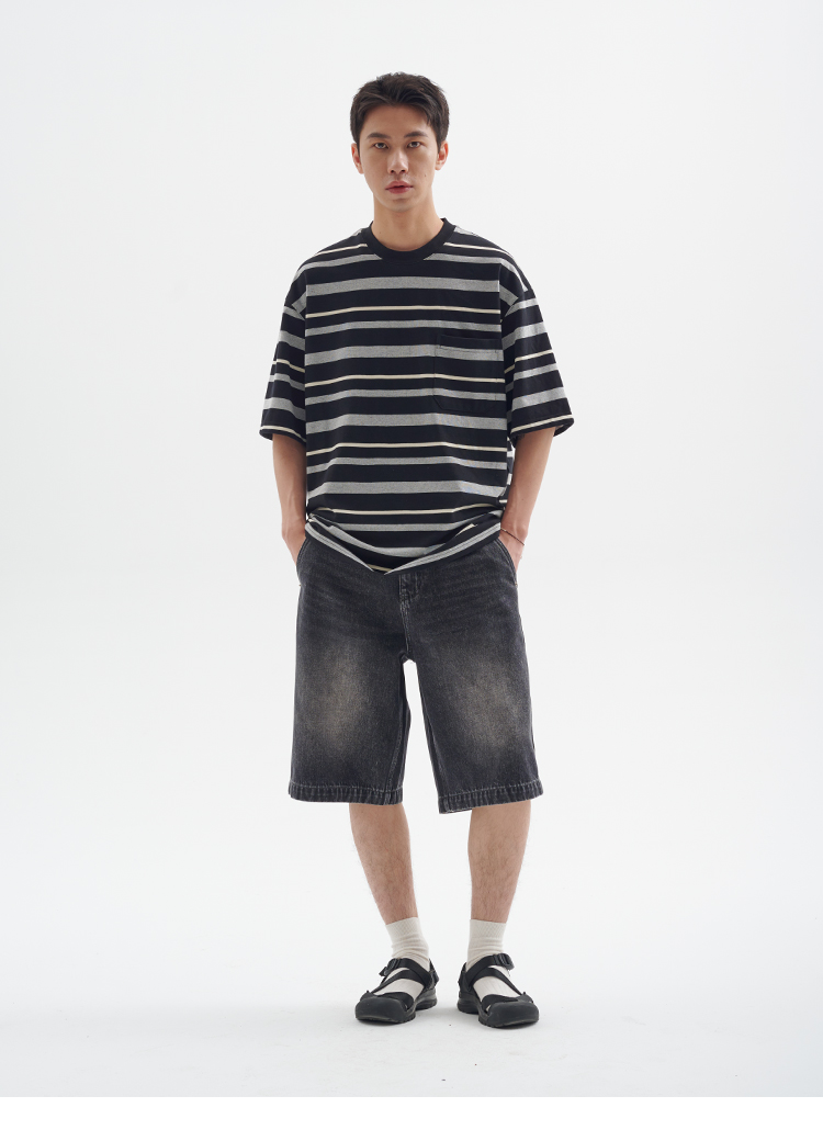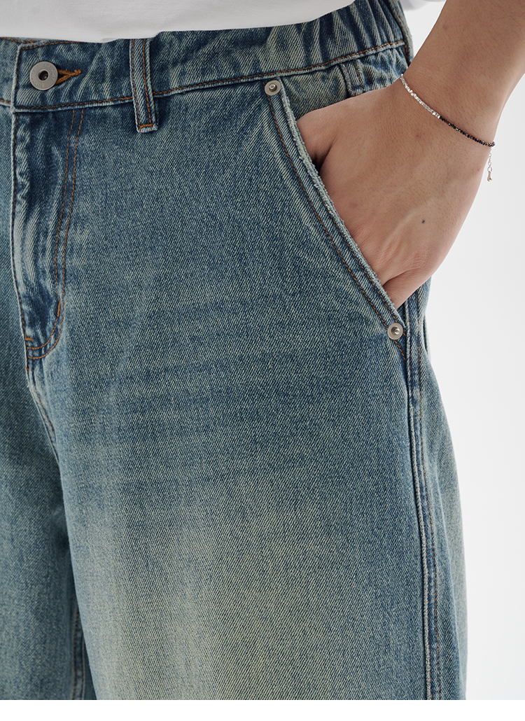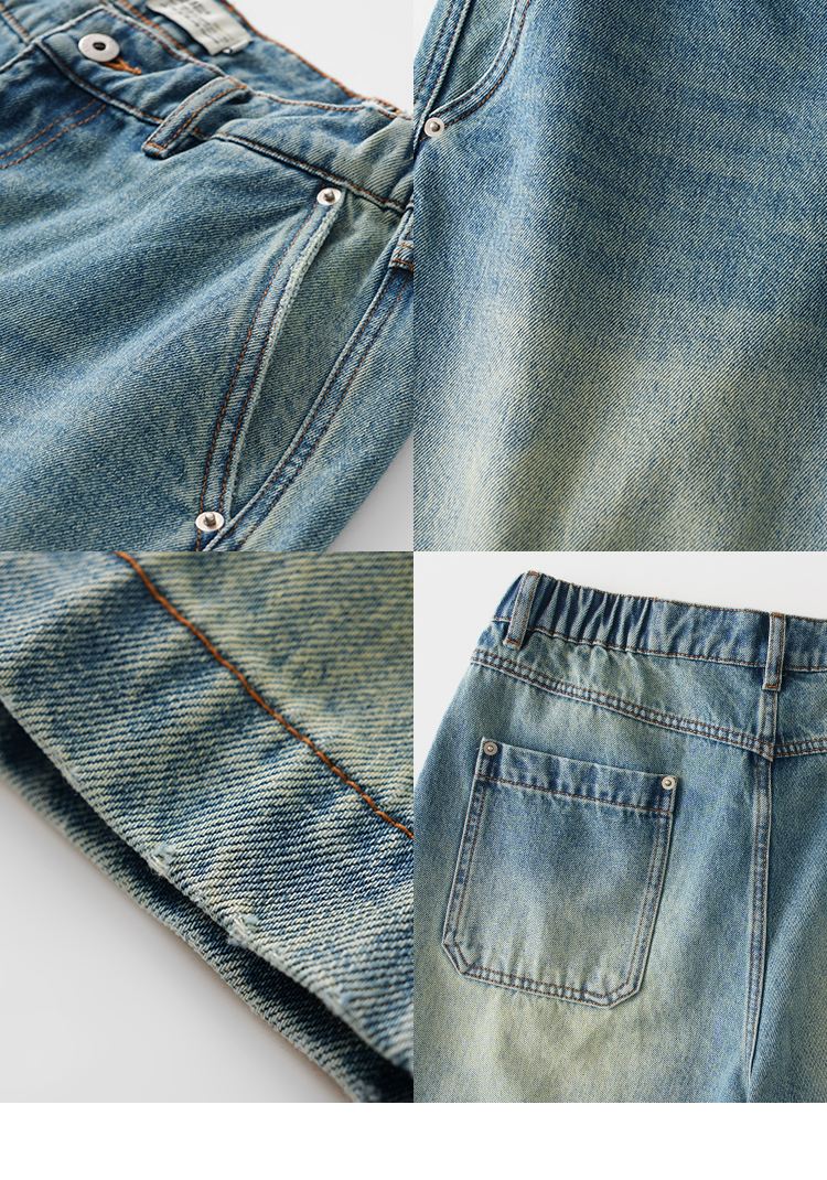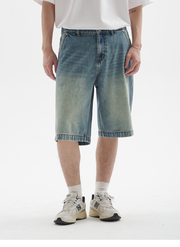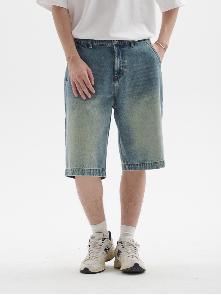 BUTTBILL Washed and Old Casual Commuter Denim Five-point Shorts