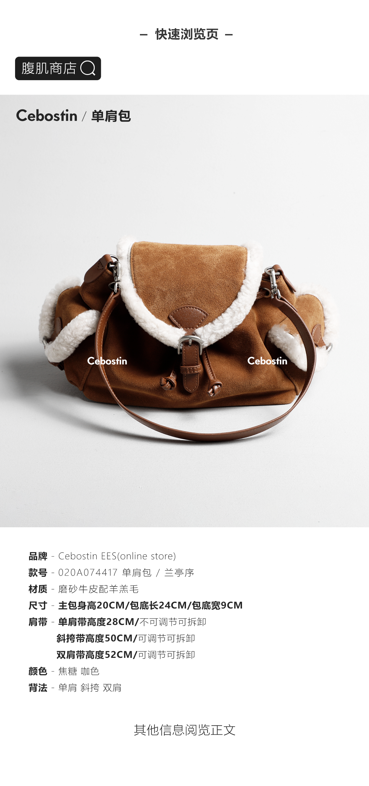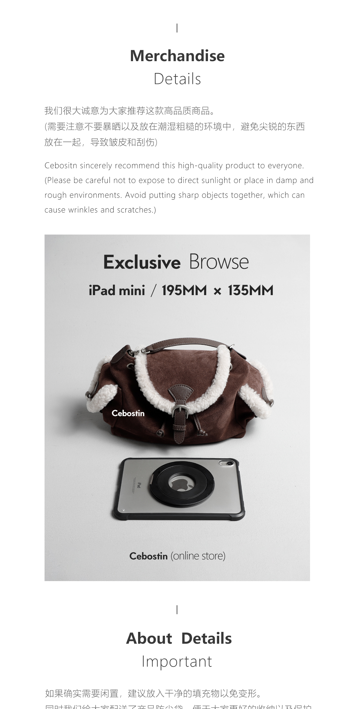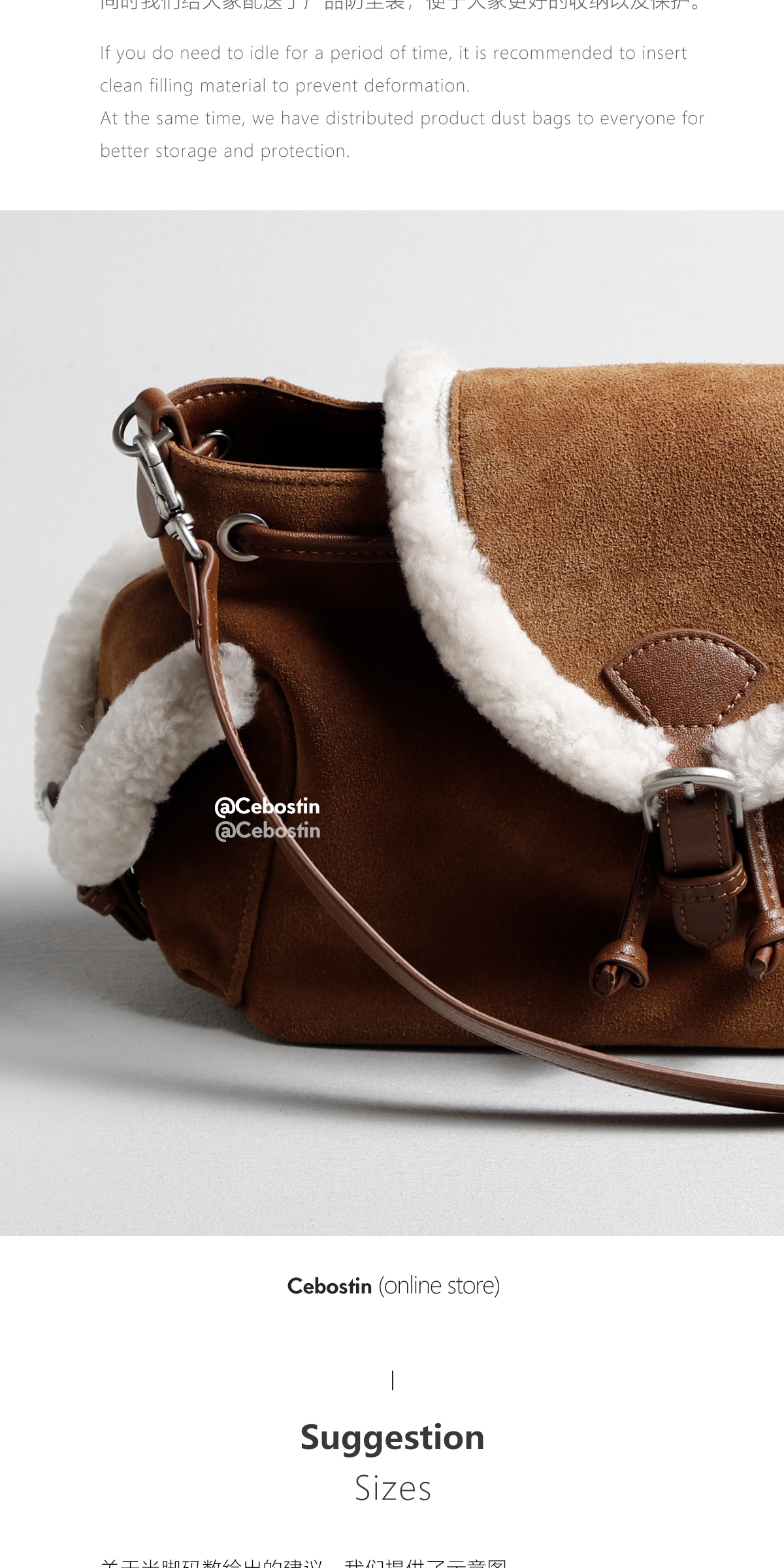Cebostin Premium Matte Cowhide Splicing Lamb Wool Messenger Bag