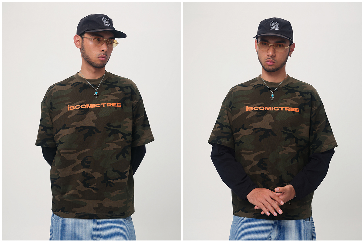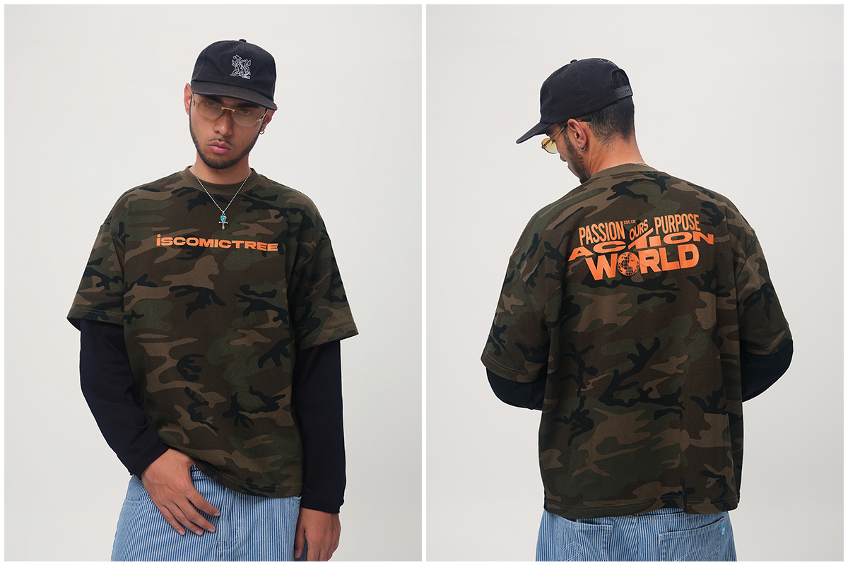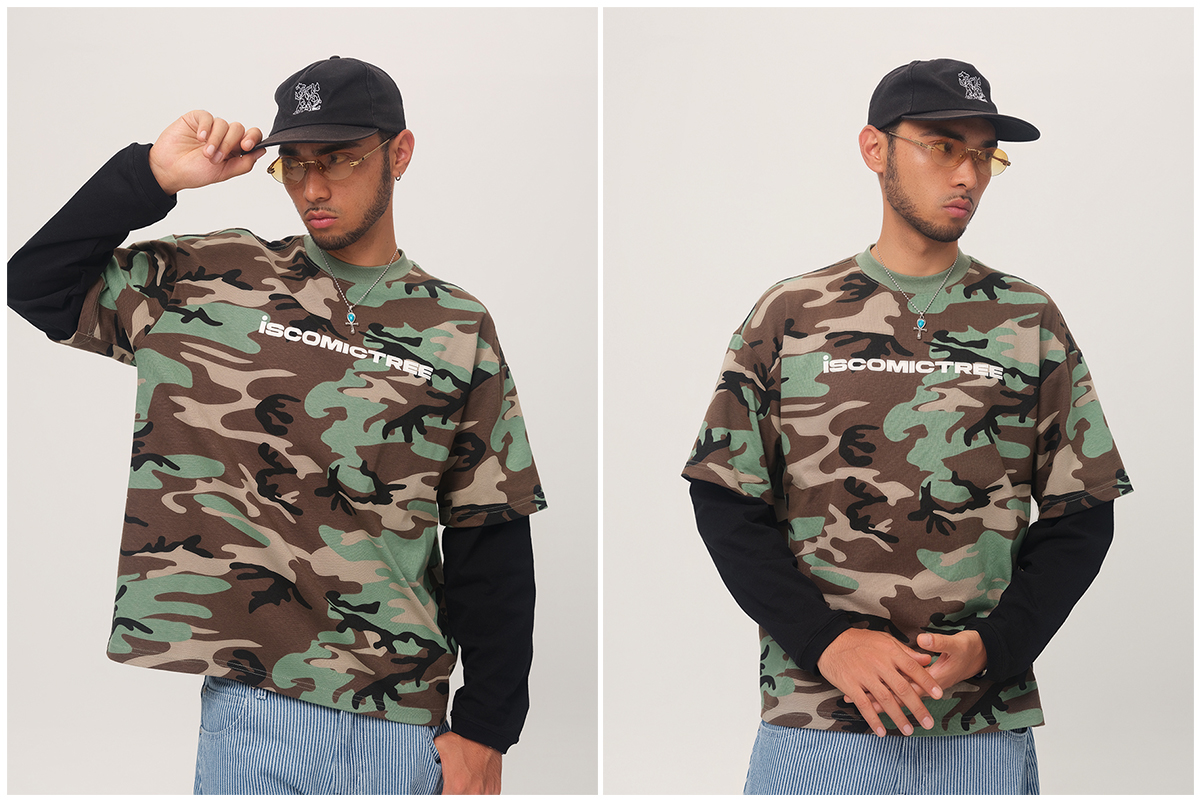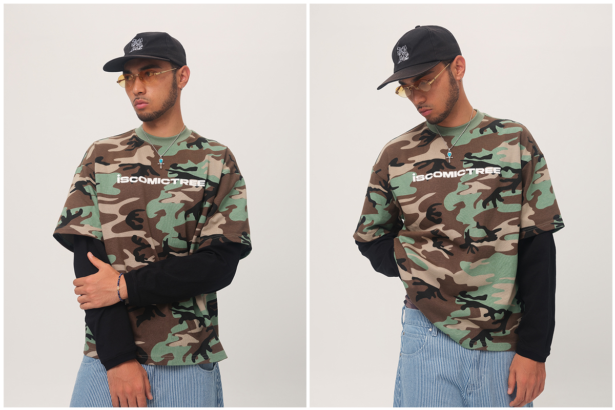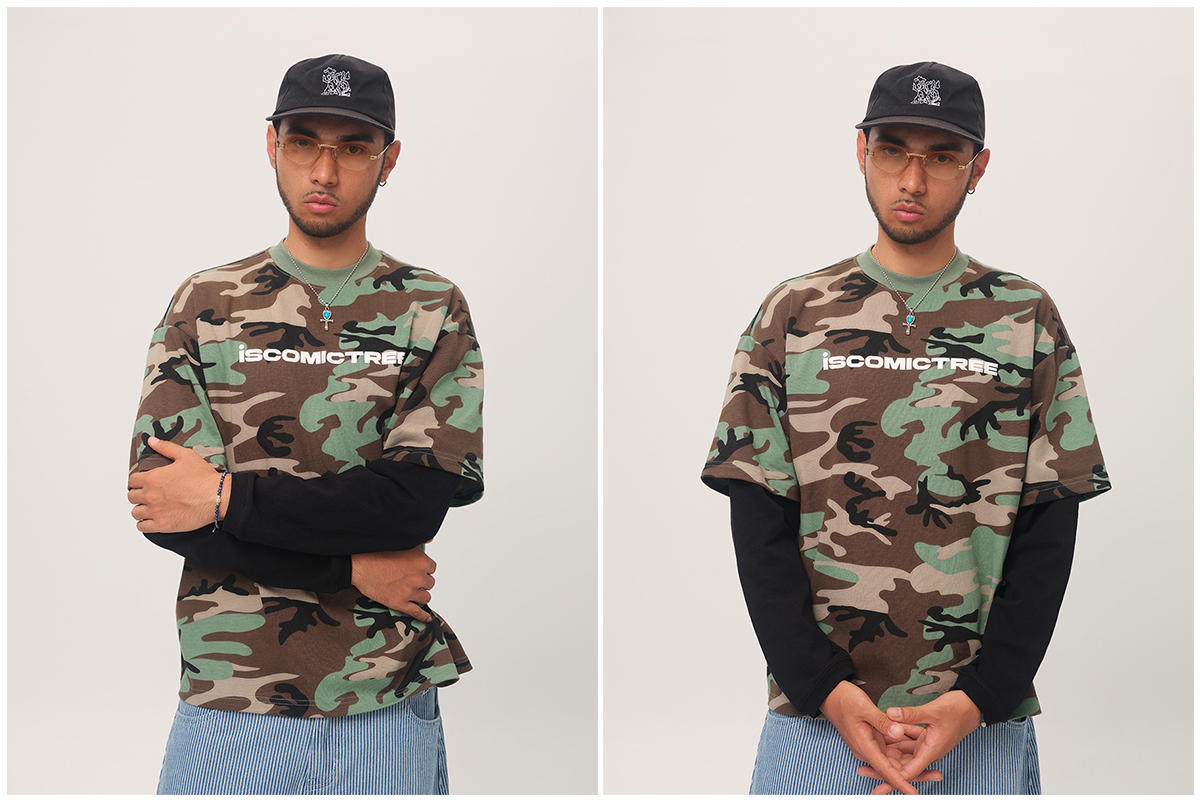 ComicTree Camouflage Stitching Fake Two-piece Letter Long Sleeve