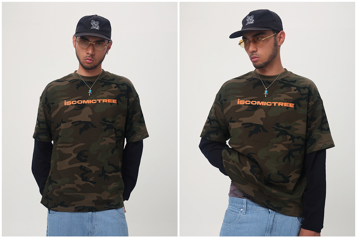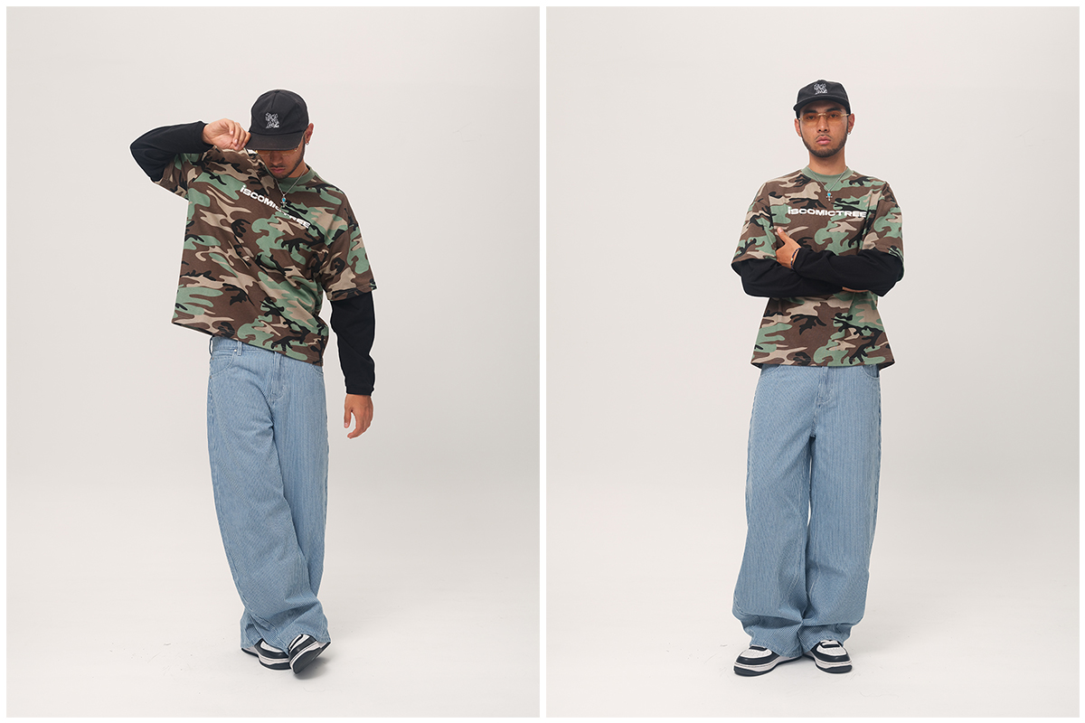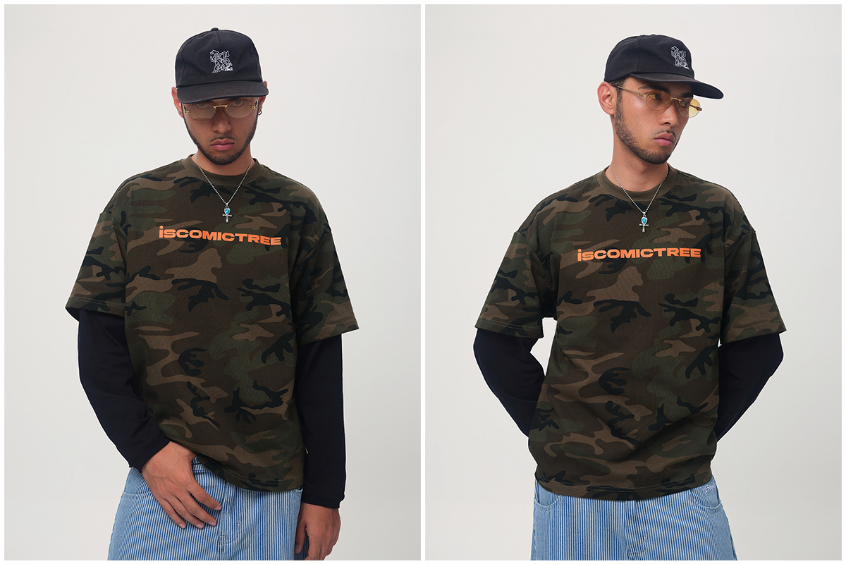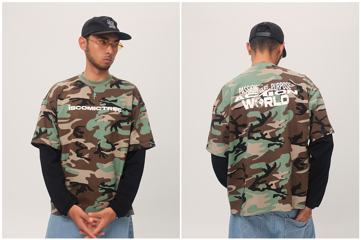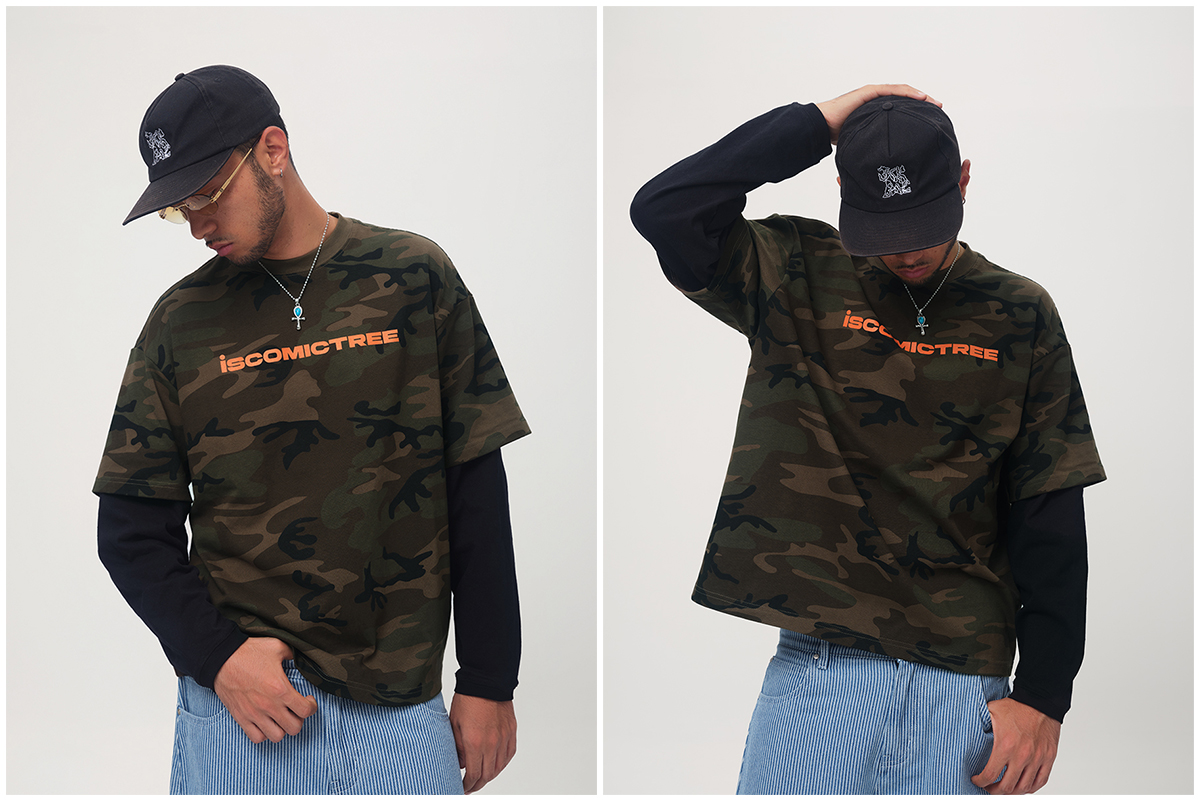 ComicTree Camouflage Stitching Fake Two-piece Letter Long Sleeve