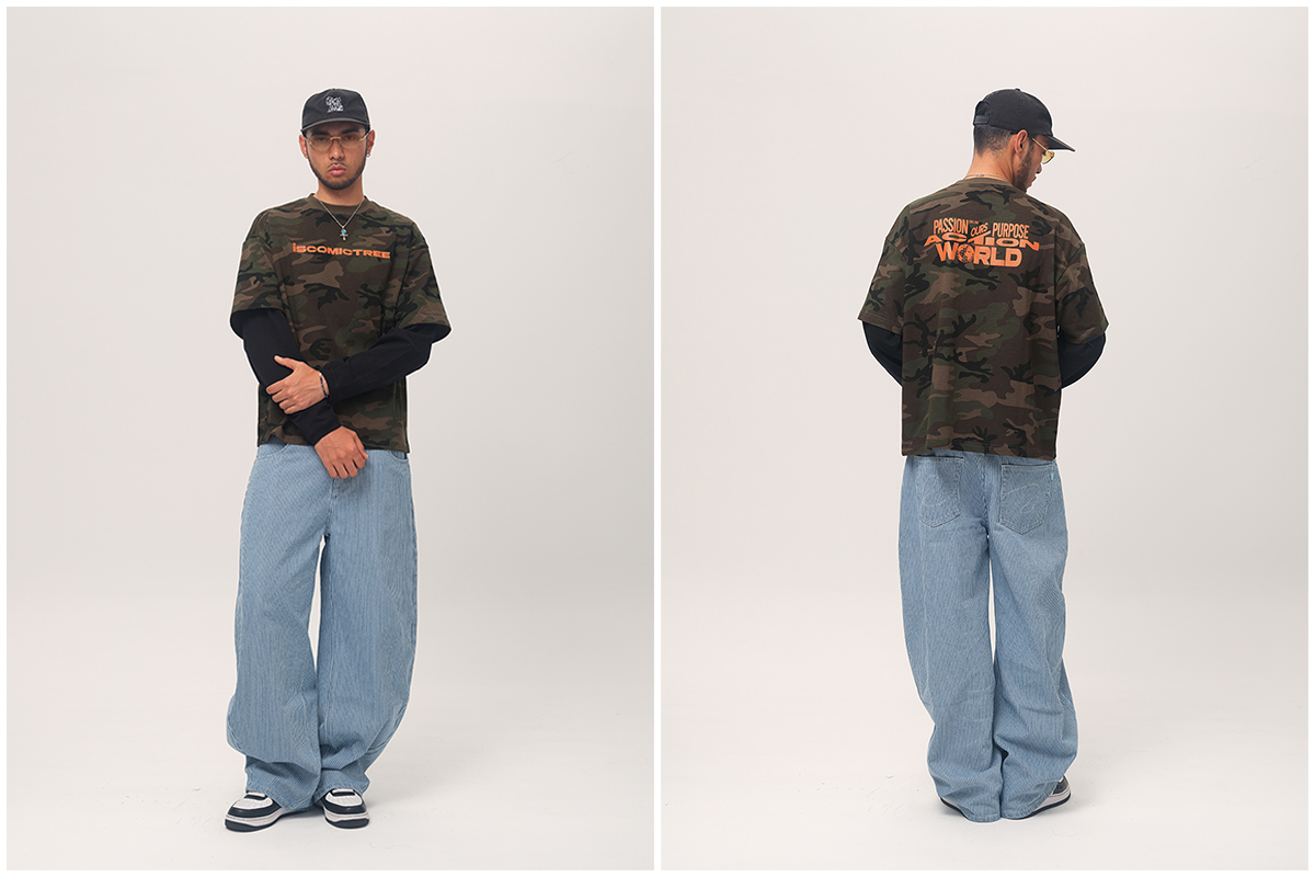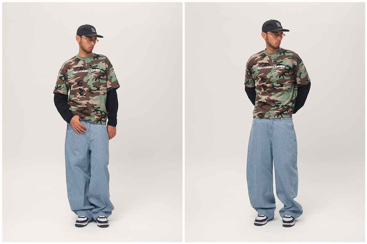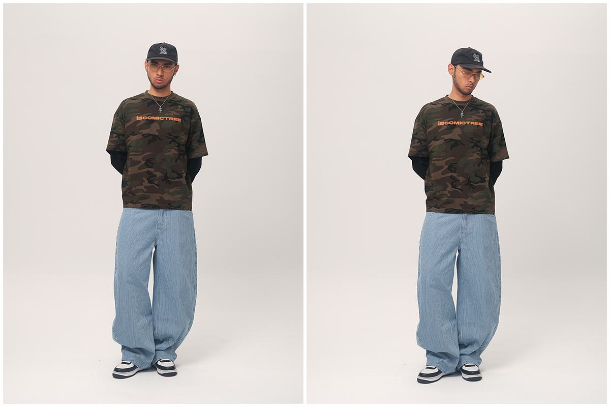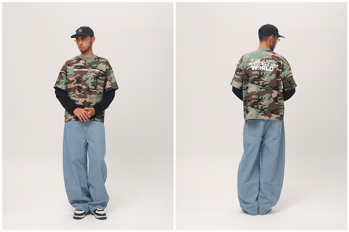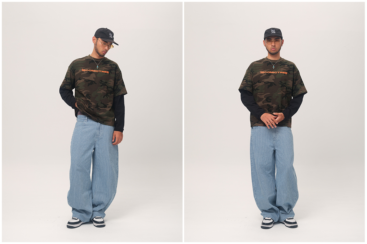 ComicTree Camouflage Stitching Fake Two-piece Letter Long Sleeve