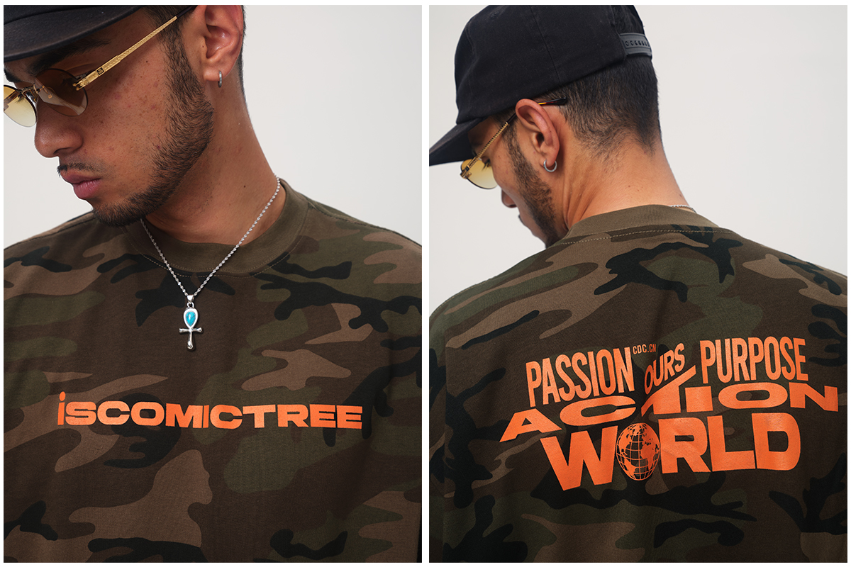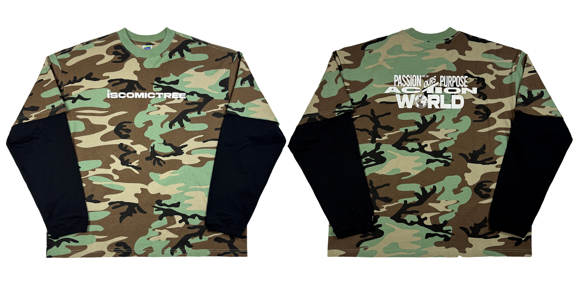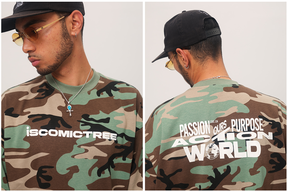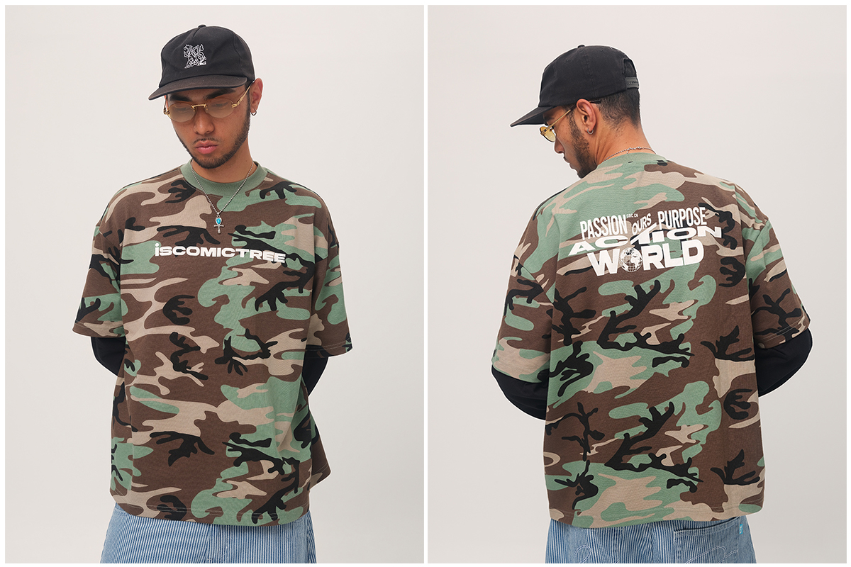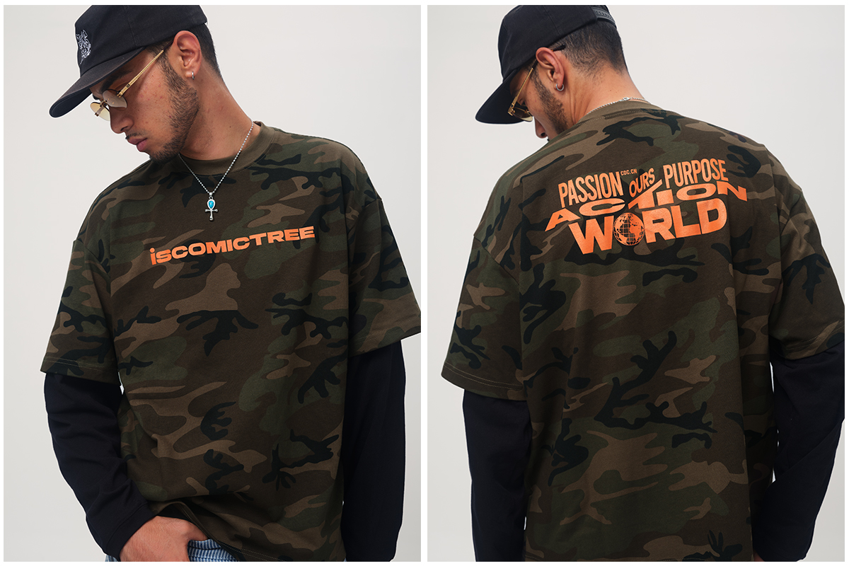 ComicTree Camouflage Stitching Fake Two-piece Letter Long Sleeve