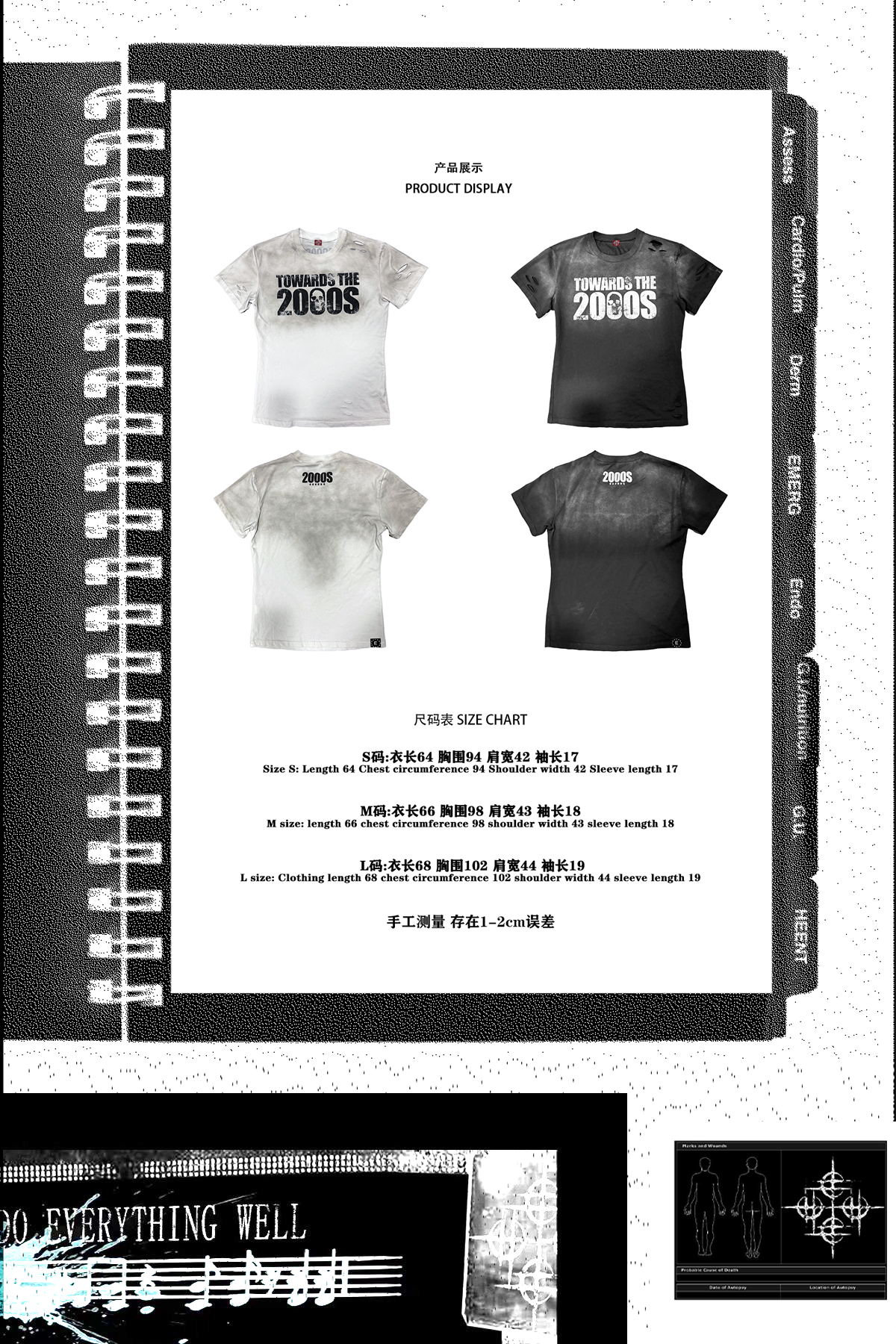 DETW 25ss * "2000S" washing destruction slogan front shoulder slim short sleeve Tee