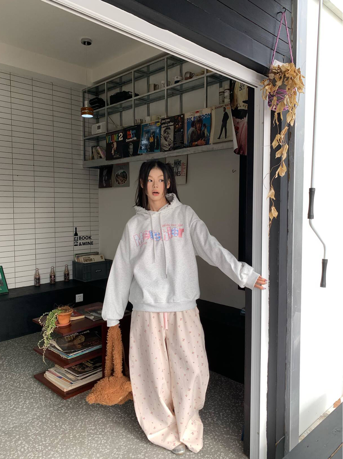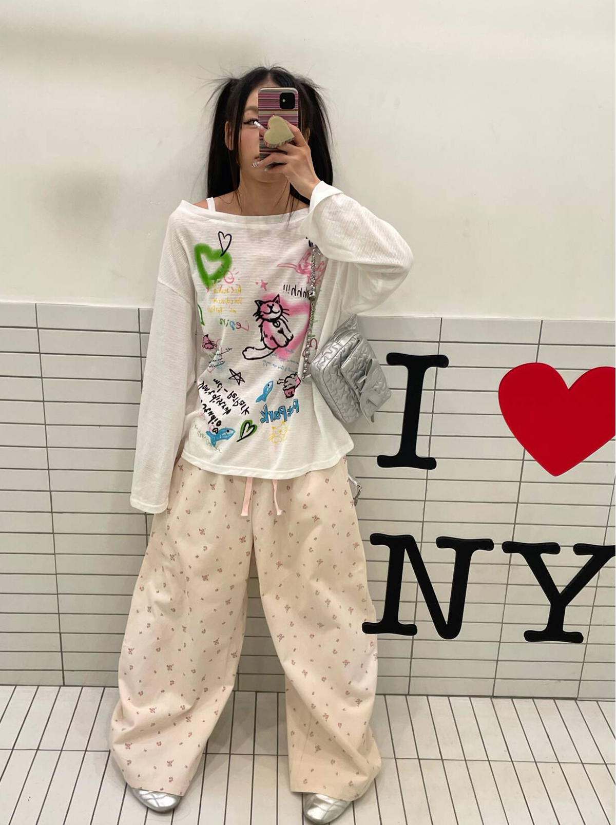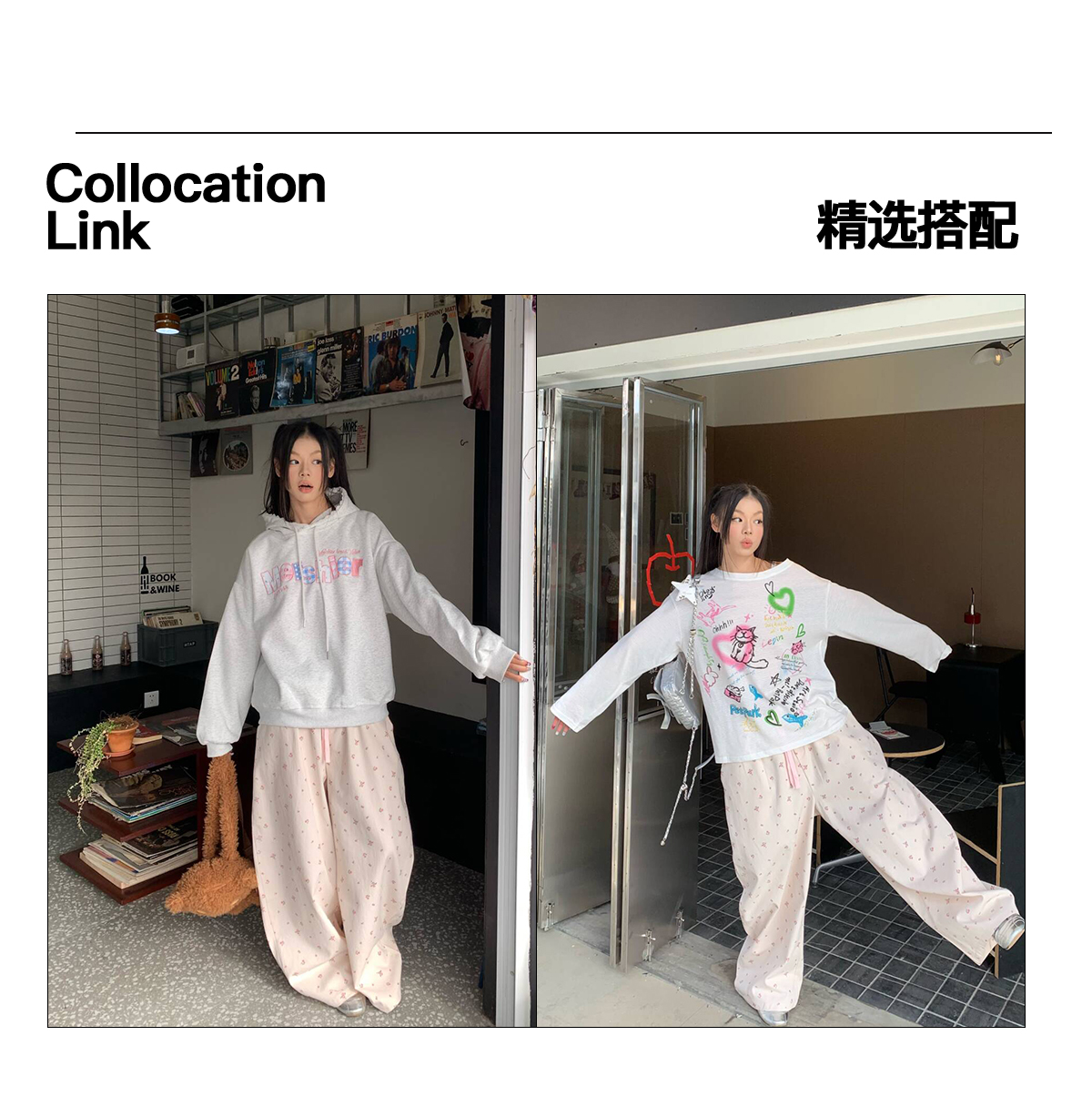 EAHO Lazy Style Floral Full Print Wide-leg Pants