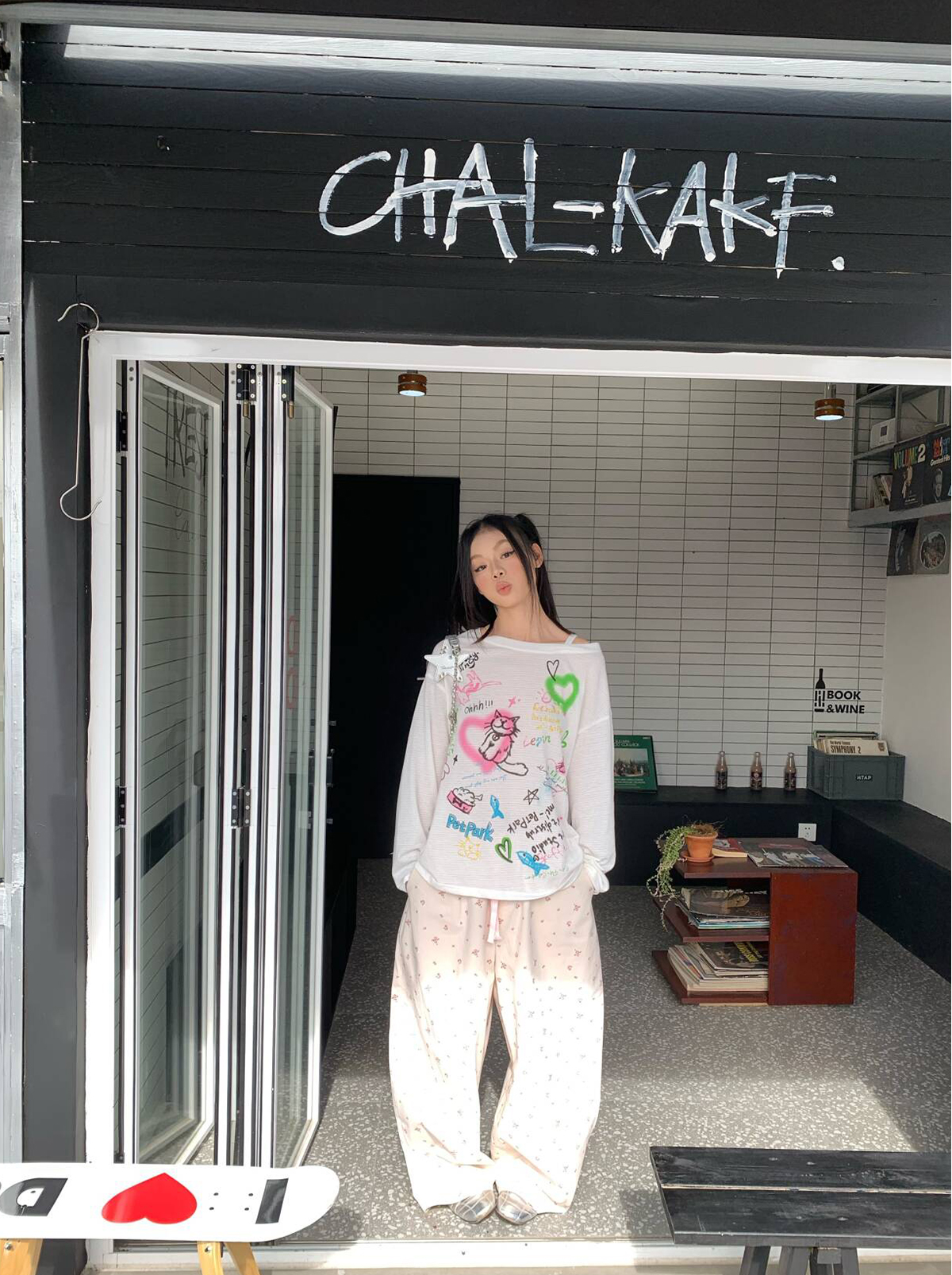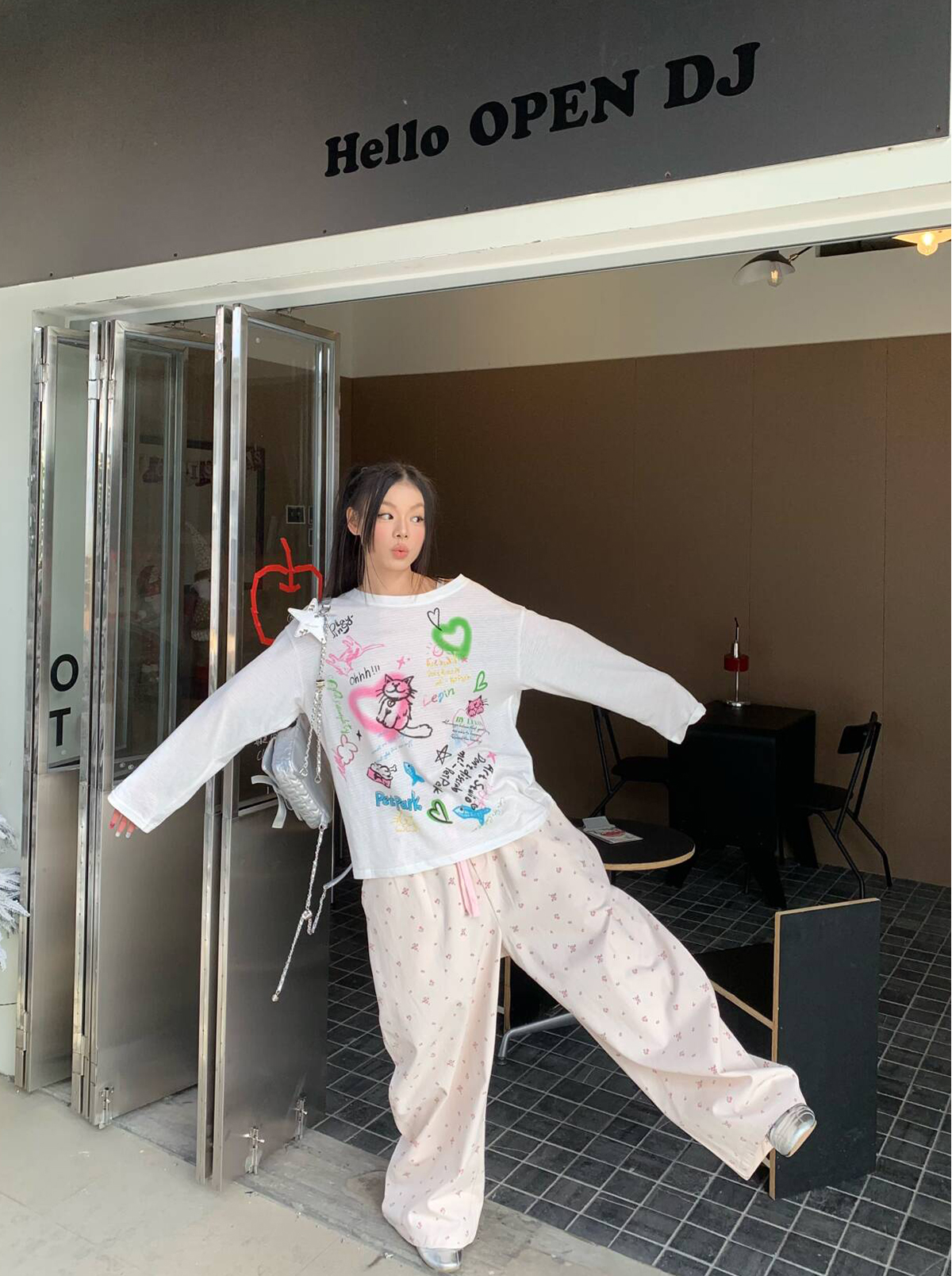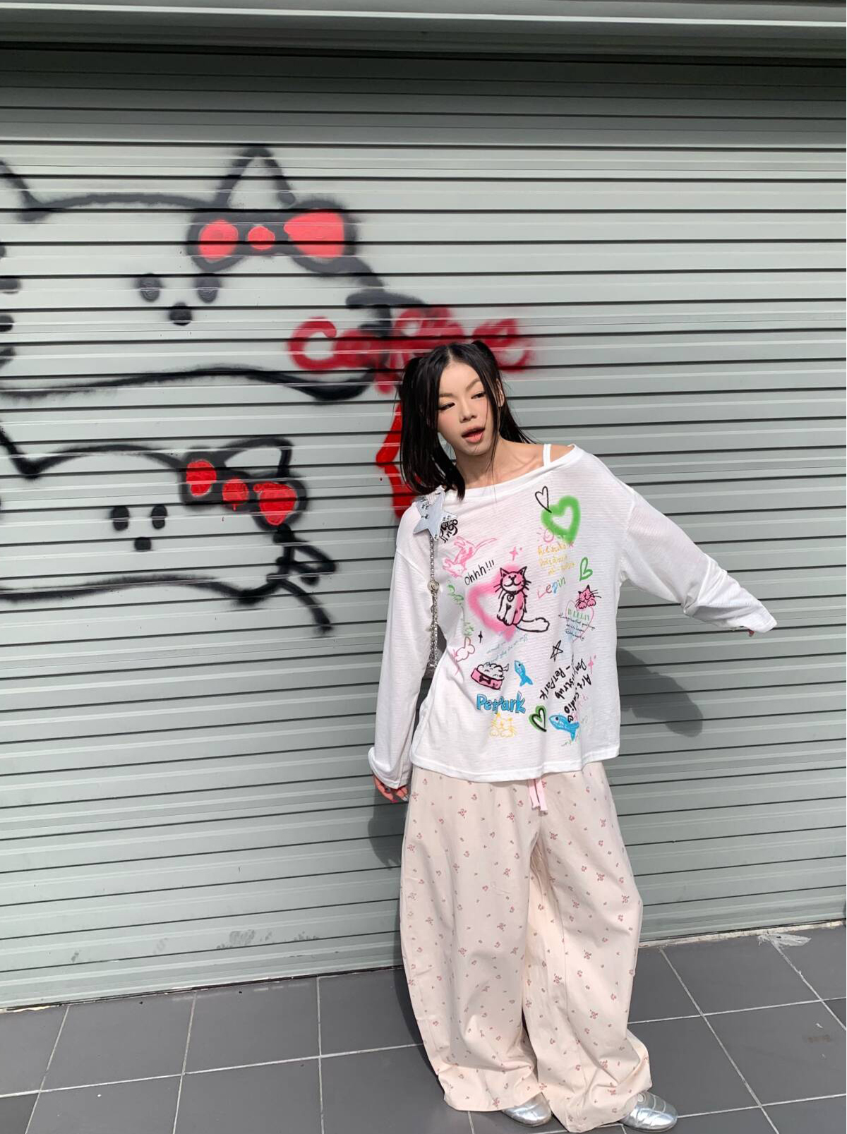 EAHO Lazy Style Floral Full Print Wide-leg Pants